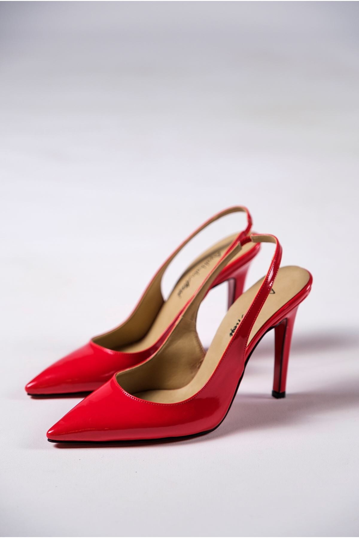 Kadın Arkası Açık Sivri Burun Topuklu Ayakkabı Madison Kırmızı Rugan