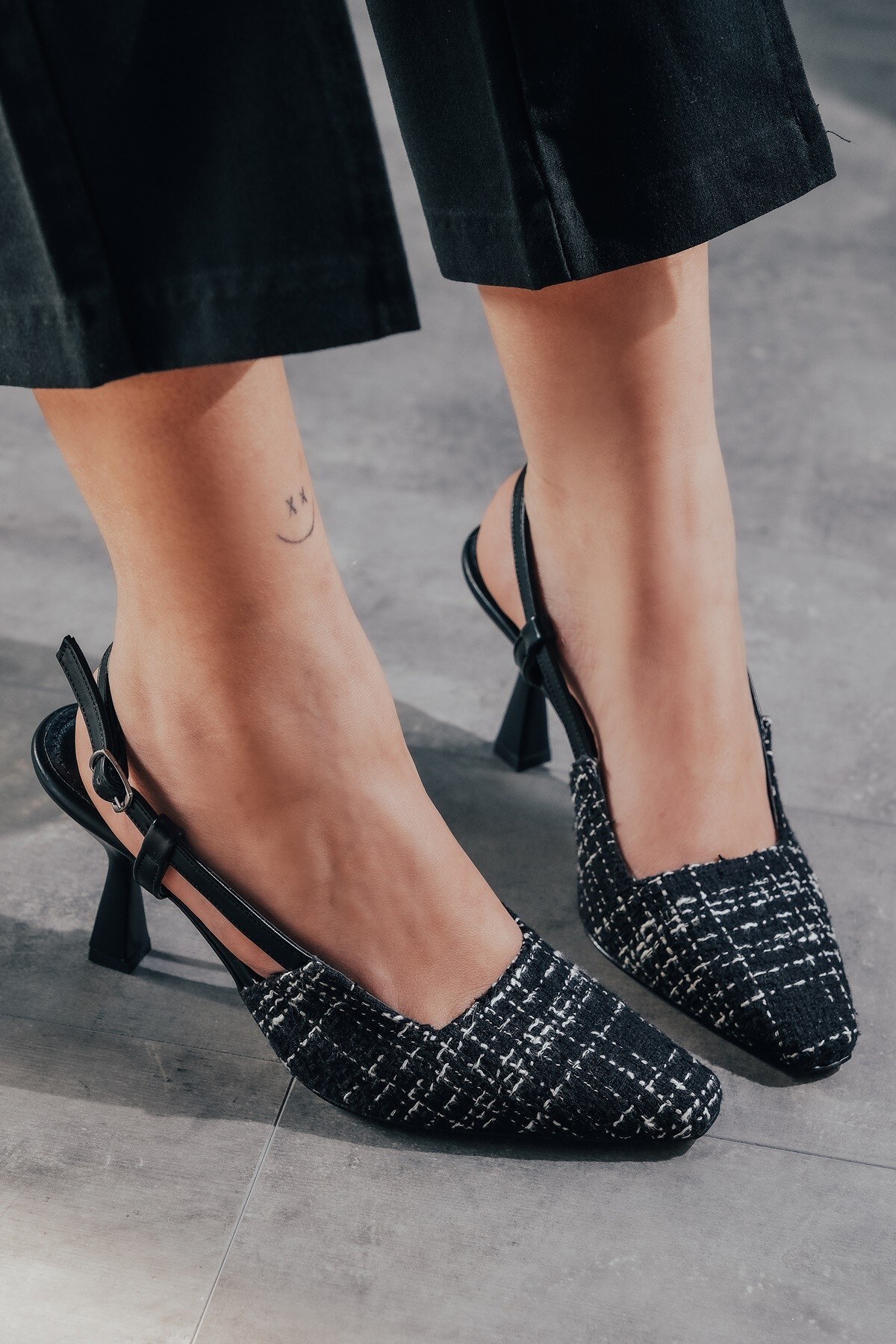 Kadın Tasarım Keten Topuklu Ayakkabı Hale Siyah