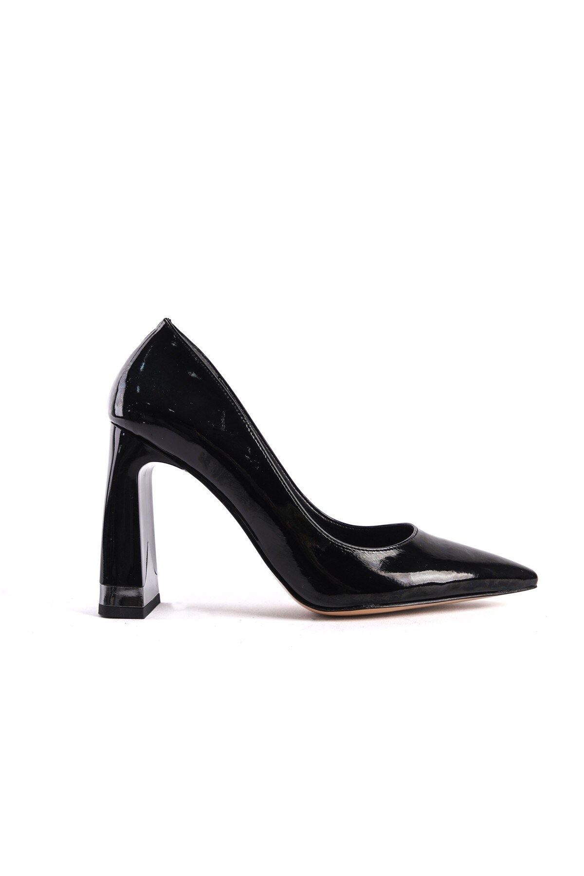 Siyah Rugan Tasarım Topuklu Kadın Stiletto Harly Siyah