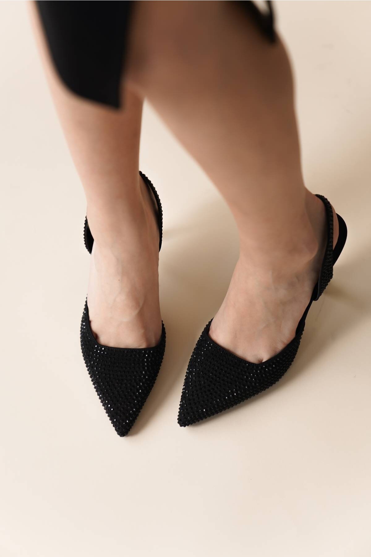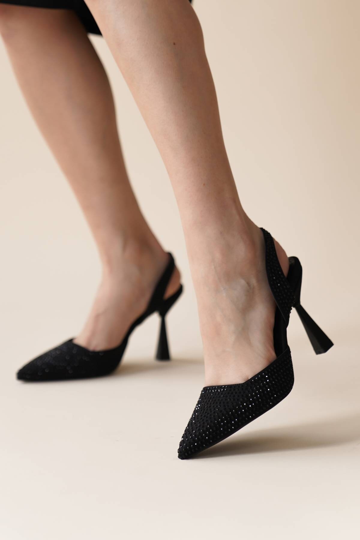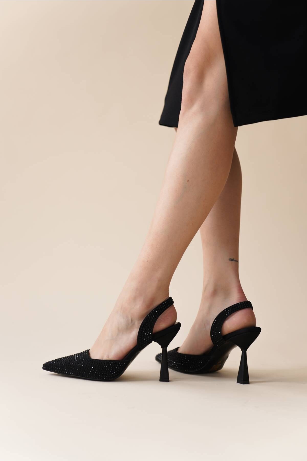 Siyah Taşlı Tasarım Topuklu Ayakkabı Riena