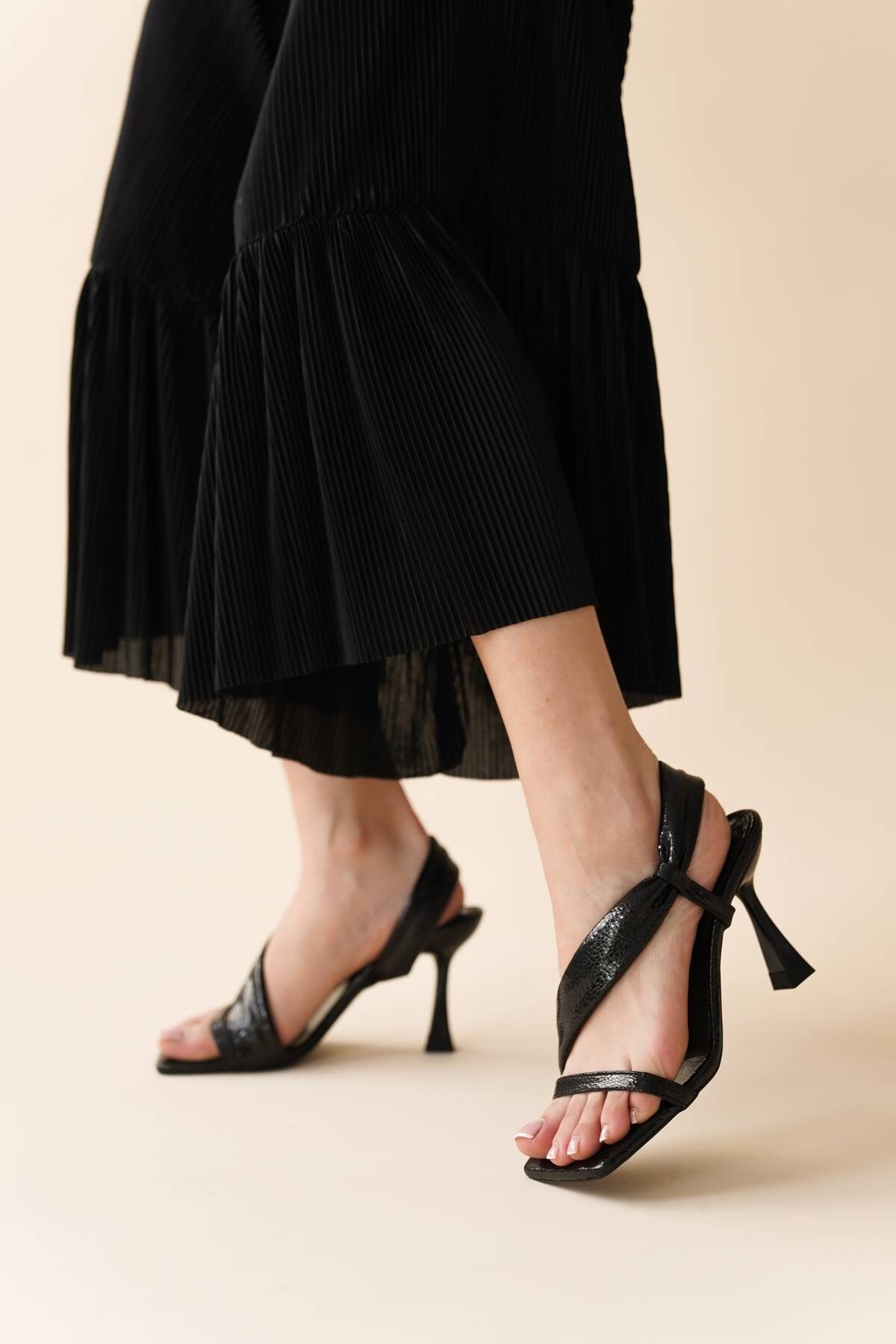 Siyah Rugan Kısa Kadın Topuklu Ayakkabı Priyas