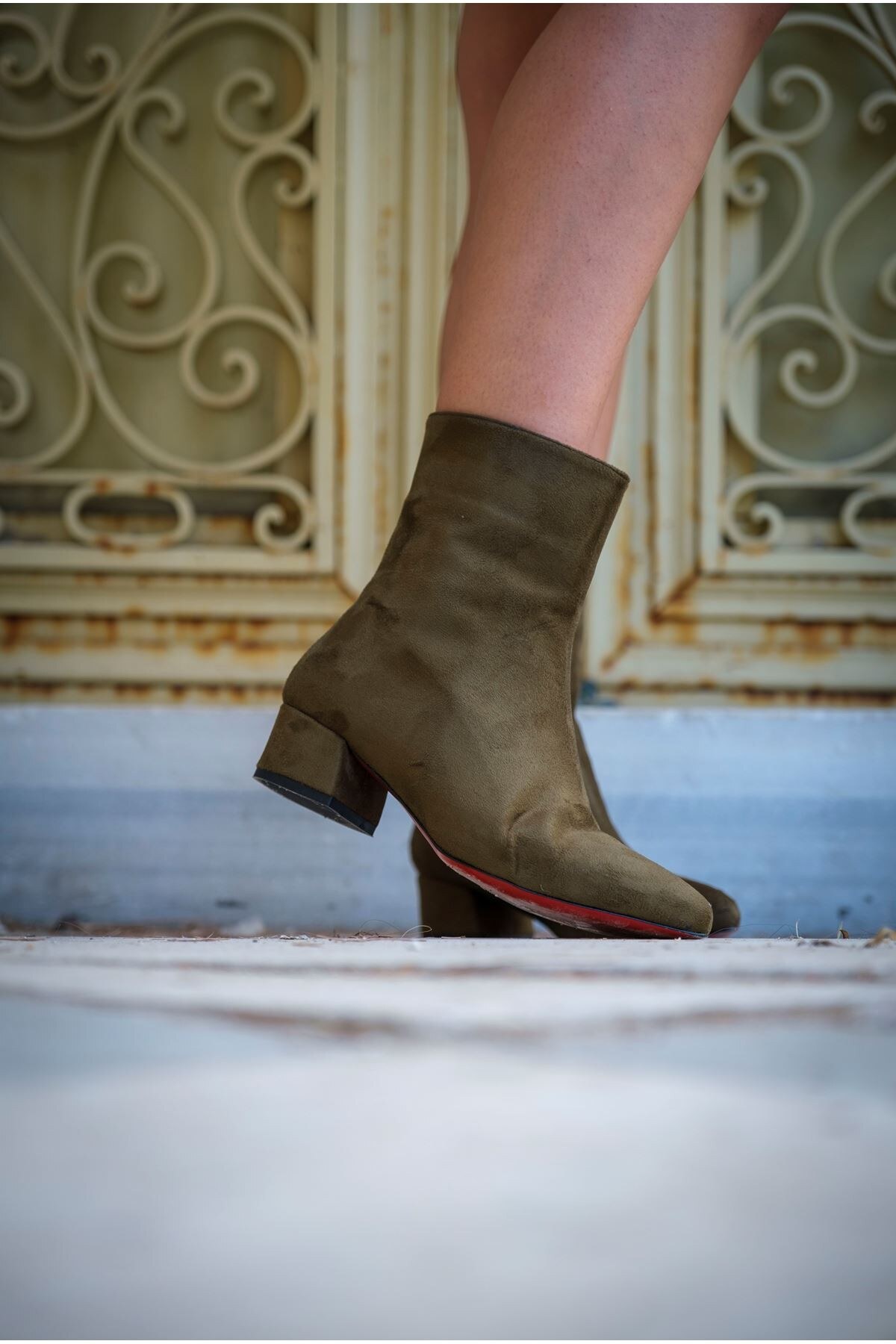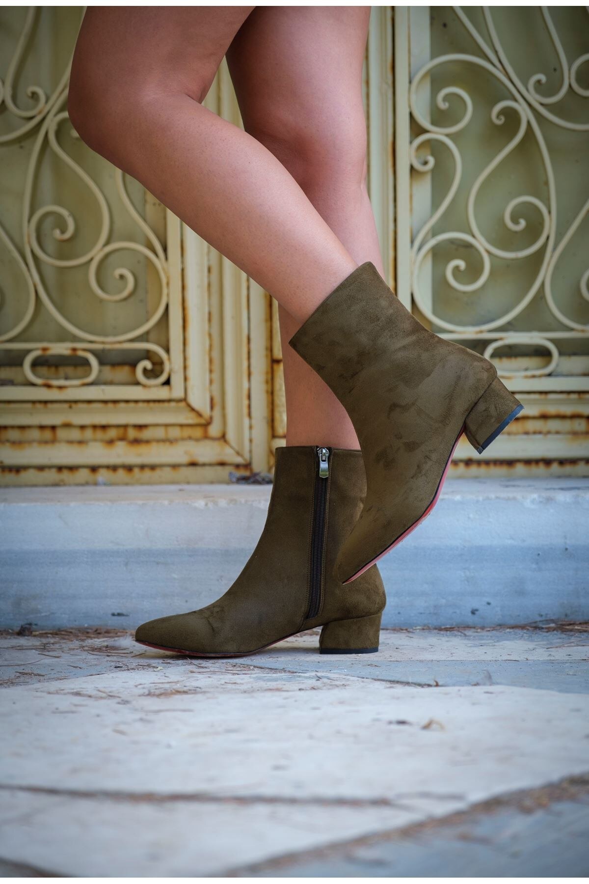 Kadın Kısa Topuk Fermuarlı Bot Scala Haki