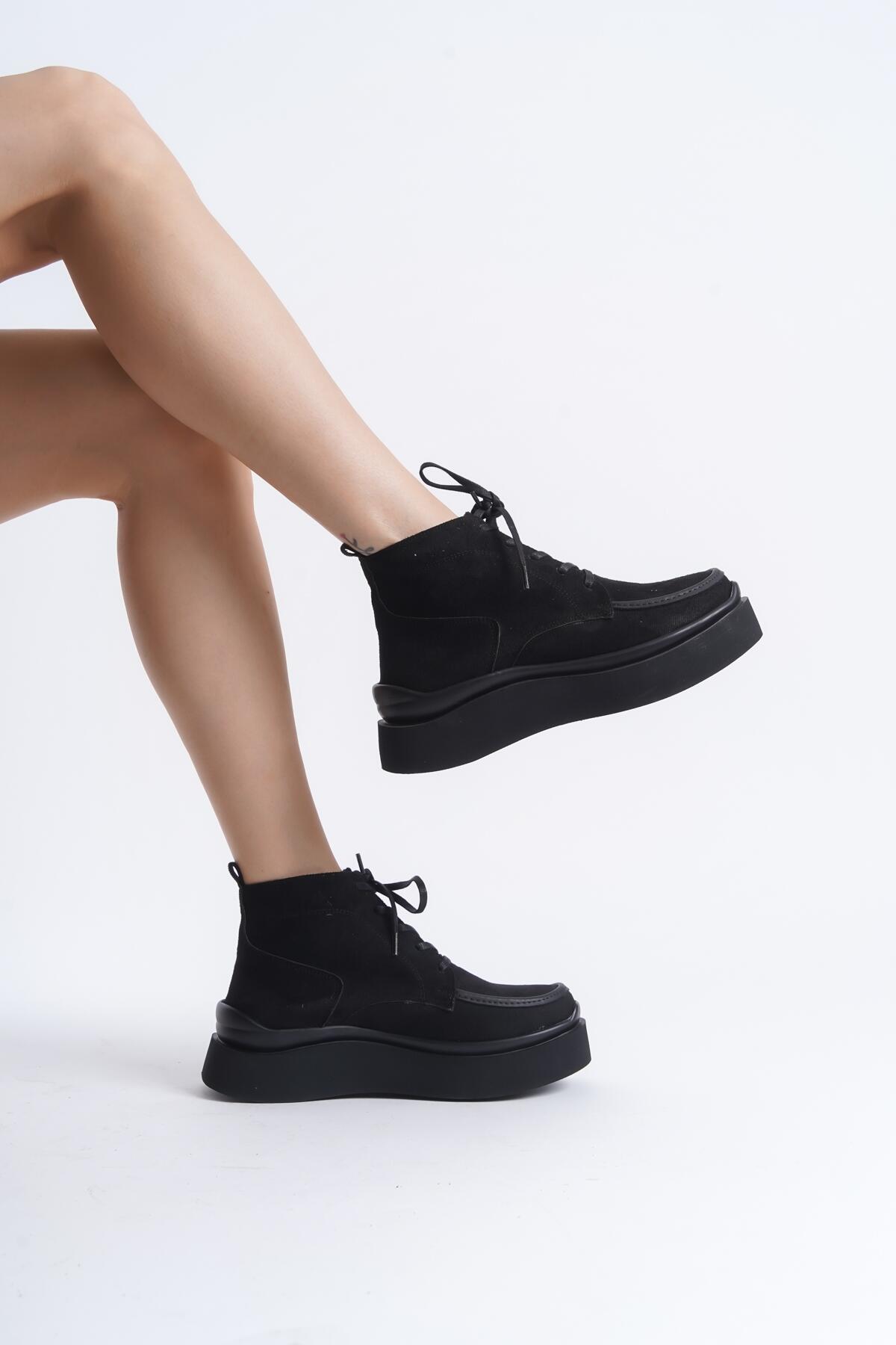 Kadın Bağcıklı Tasarım Kadın Düz Bot Bacika Siyah
