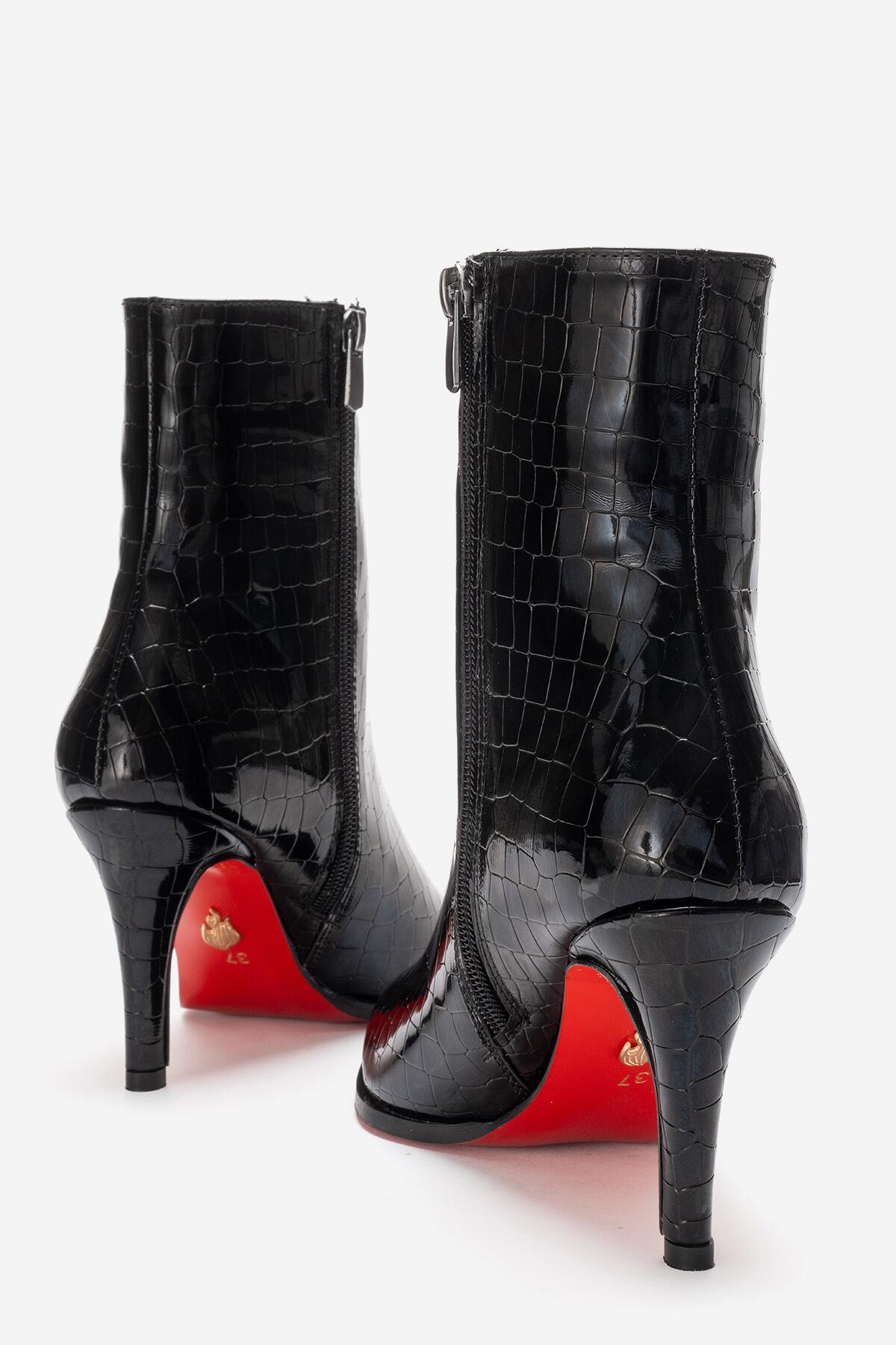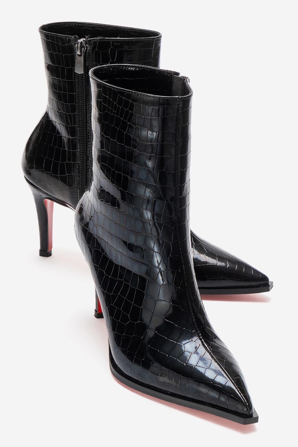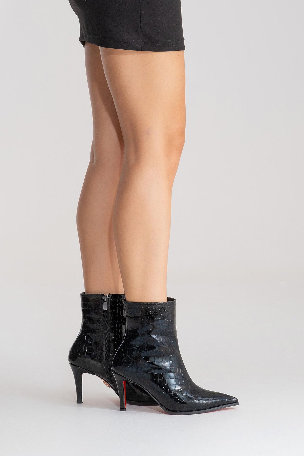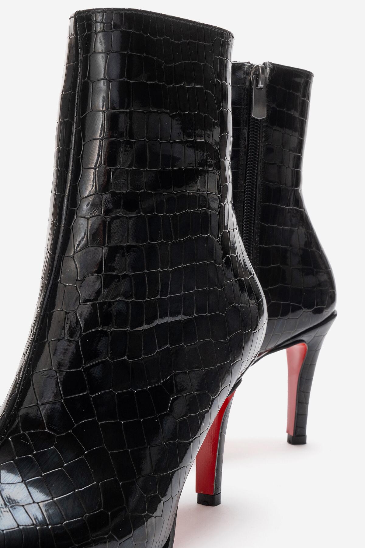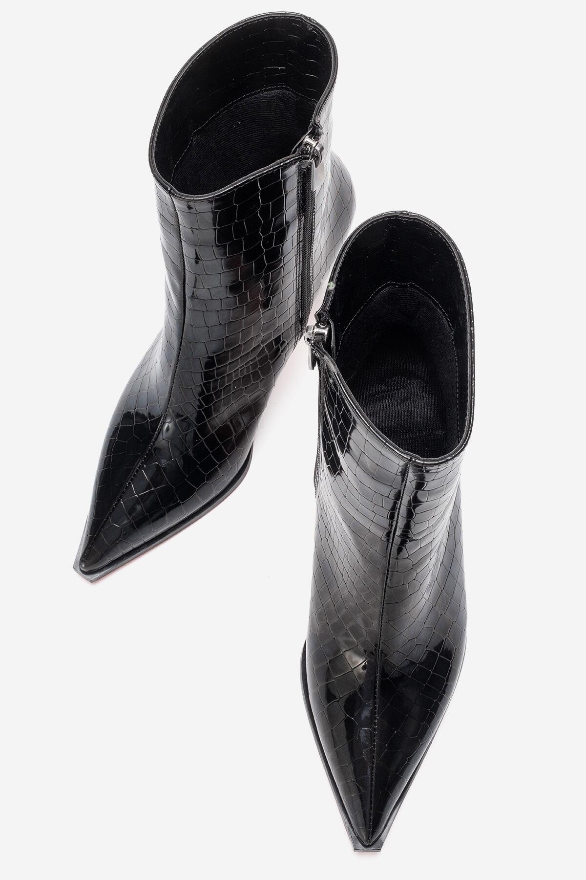 Kadın Bilek Boy Kısa İnce Topuklu Bot Torina Siyah Krokodil