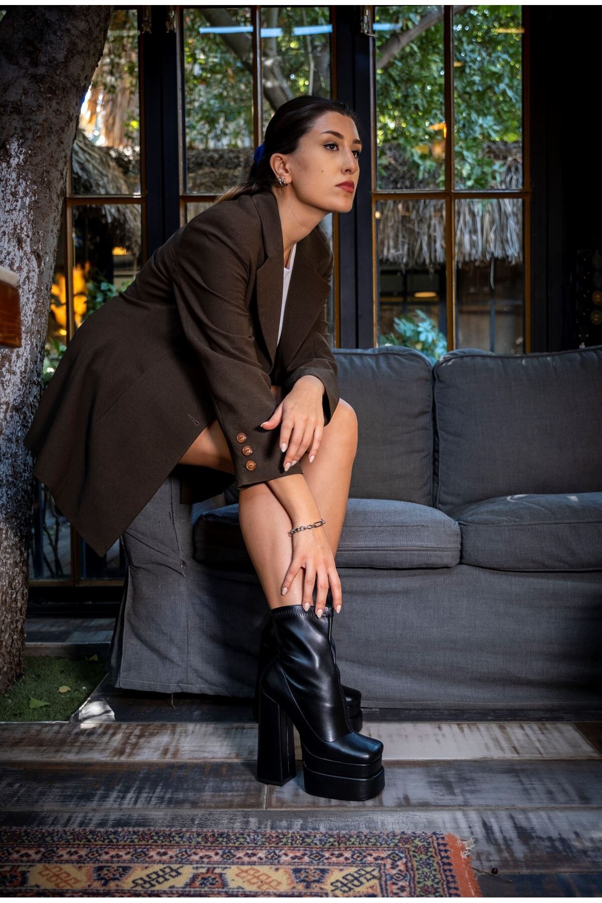 Kadın Çift Platform Kalın Topuk Bot Maverick Siyah Cilt