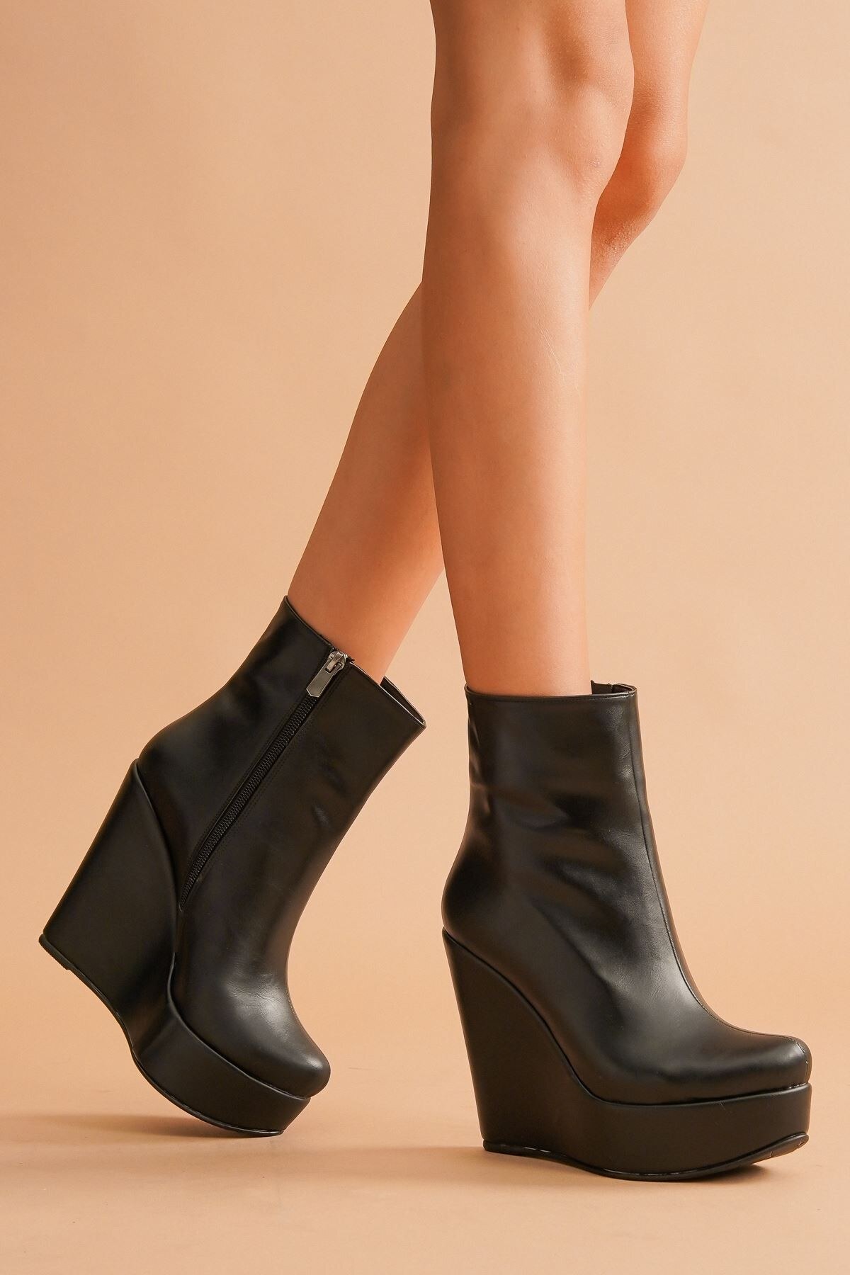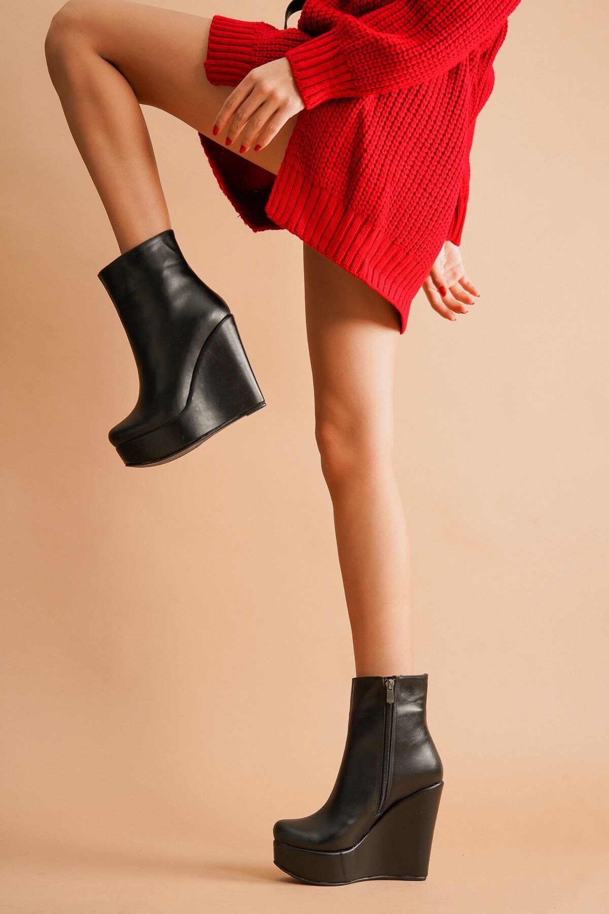 Kadın Dolgu Topuk Fermuarlı Bot Daina Siyah Cilt