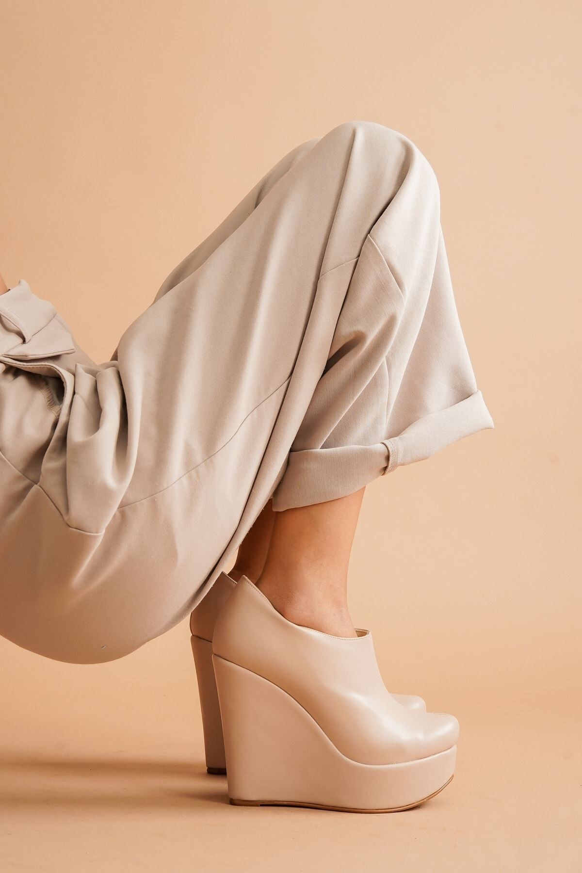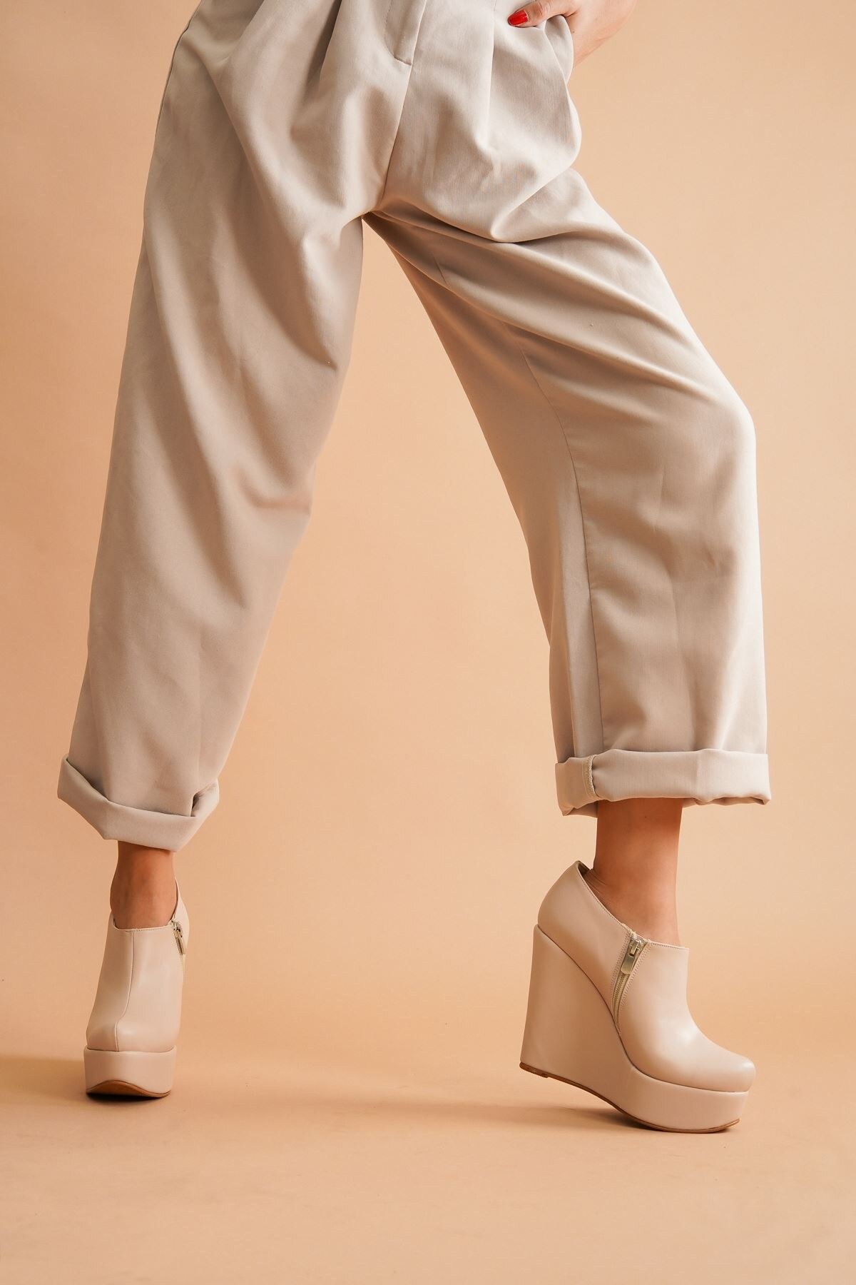 Kadın Dolgu Topuk Kısa Bot Abaco Nude Cilt