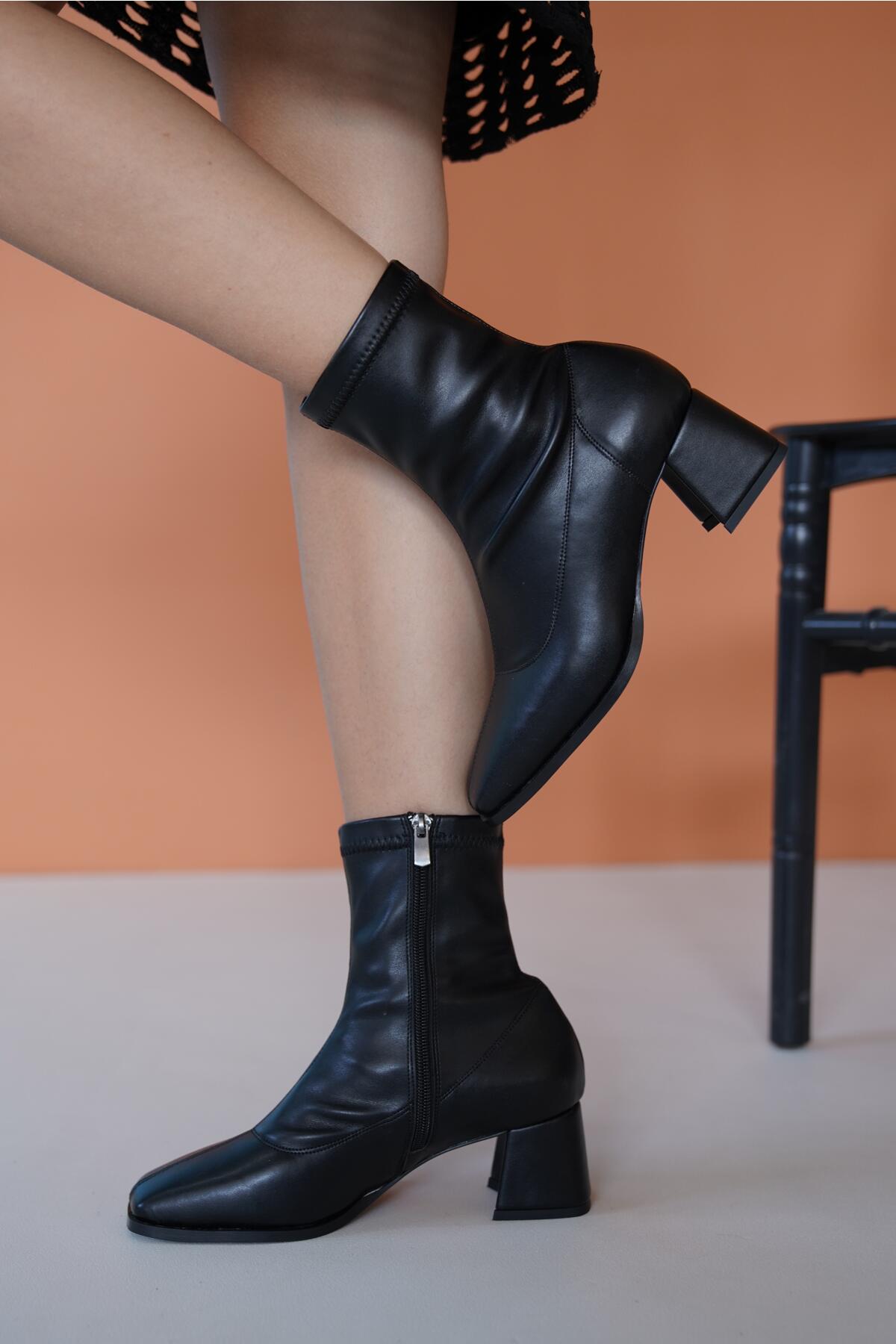 Kadın Fermuarlı Esnek Kısa Topuklu Bot Goya Siyah