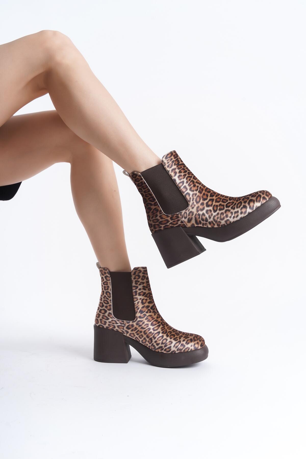 Kadın Lastikli Kalın Topuklu Bot Leorana Leopar