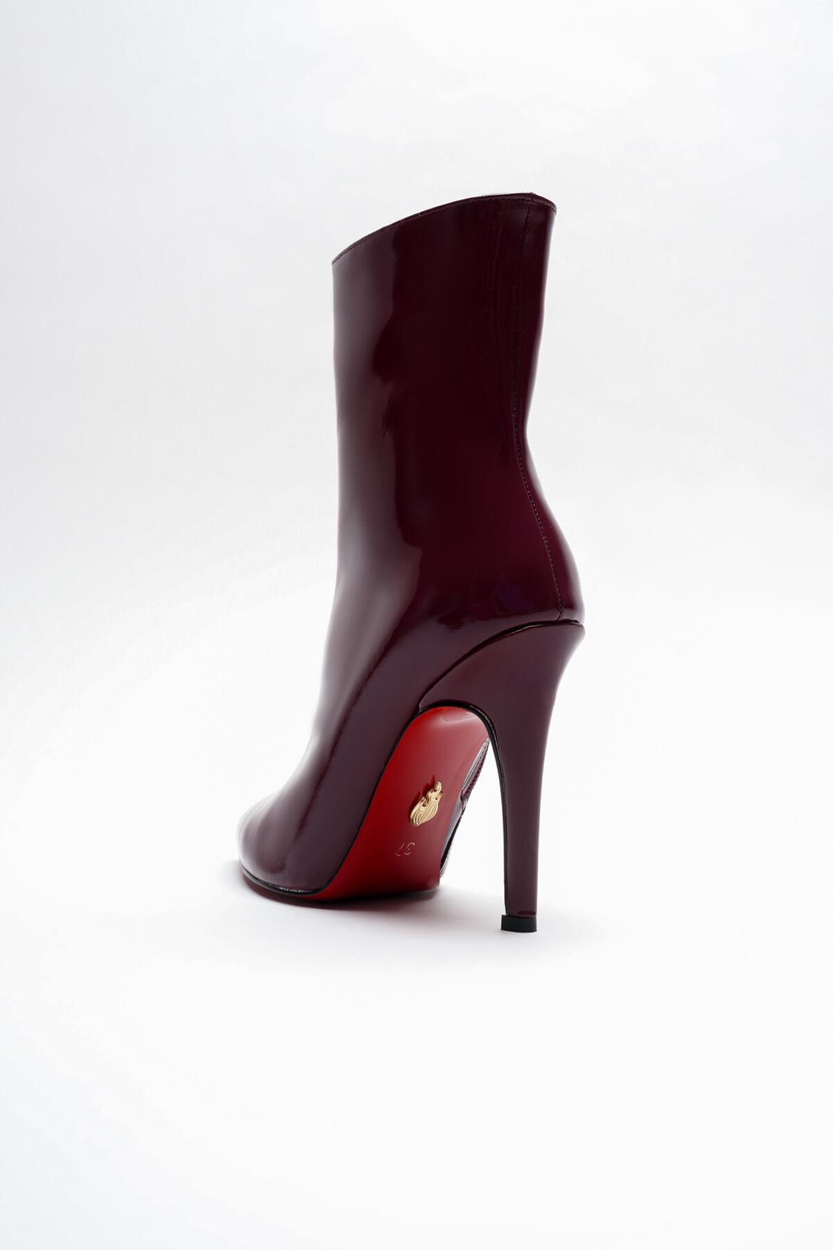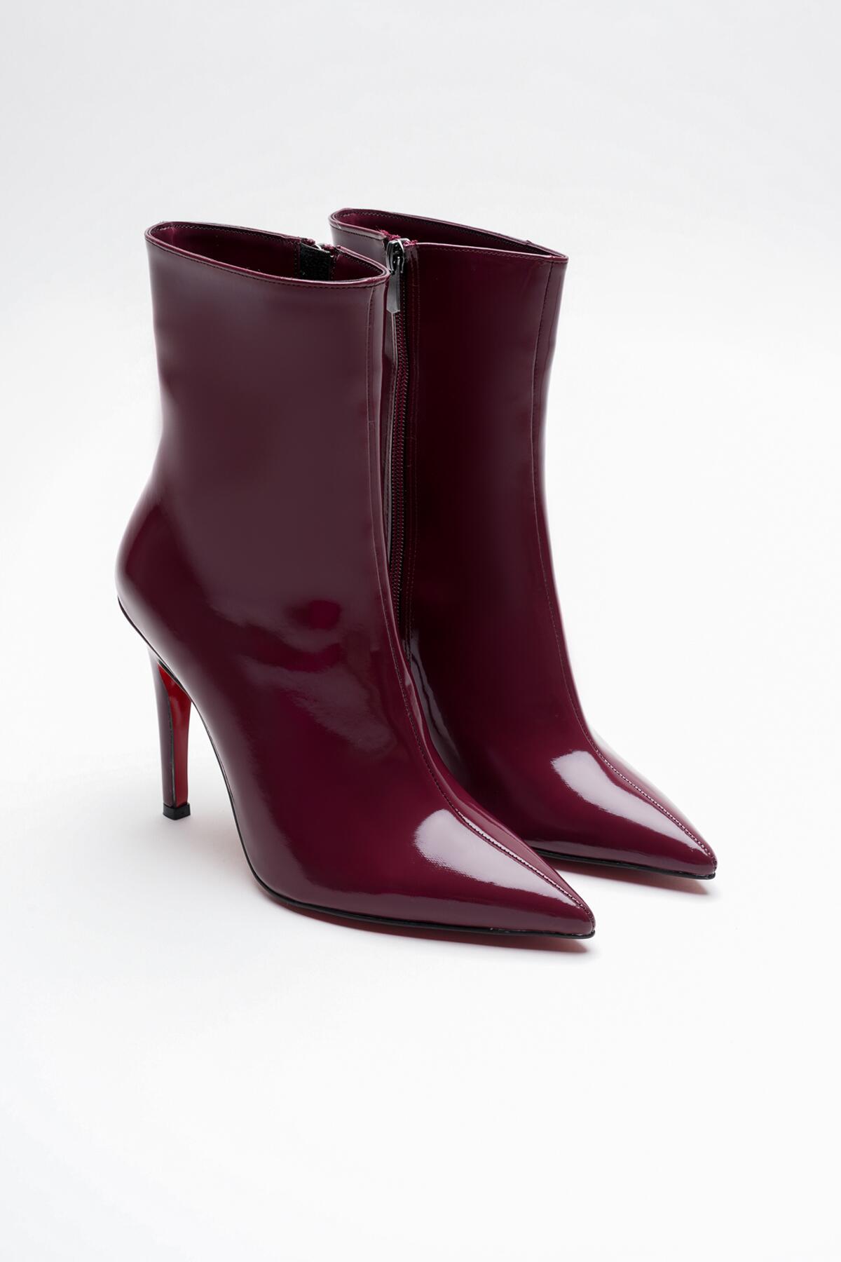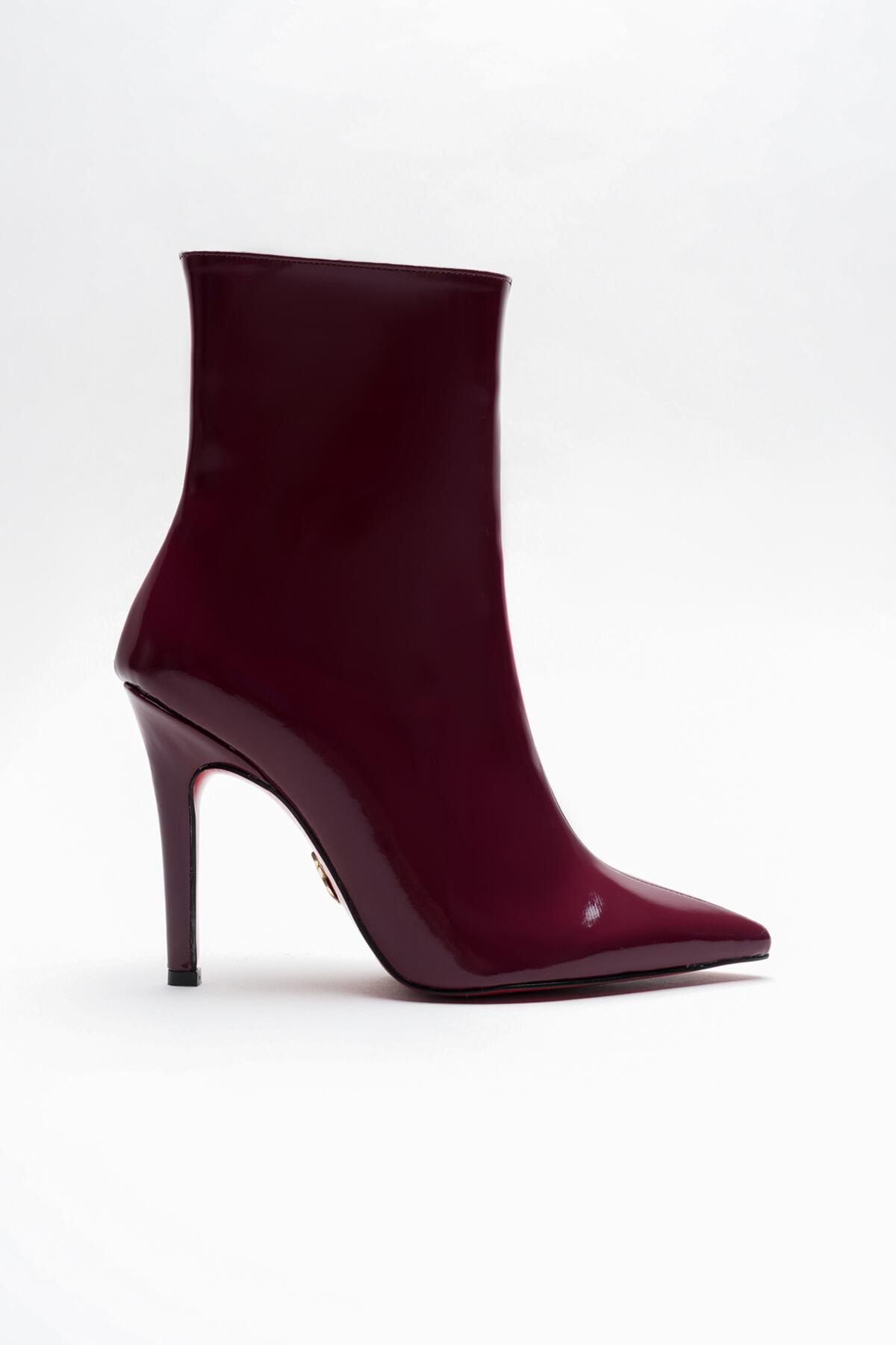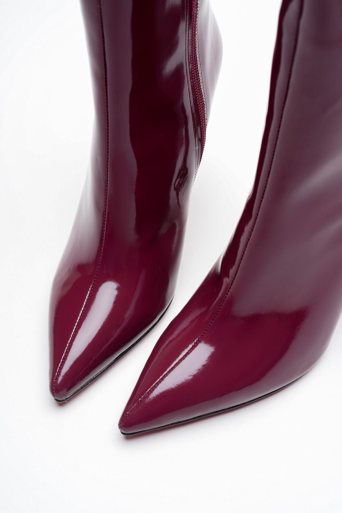 Kadın Sivri Burun Topuklu Bot Togi Bordo Rugan