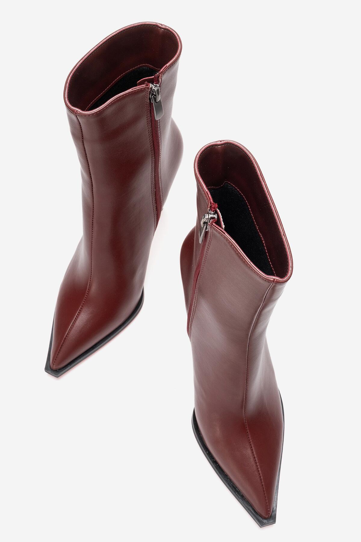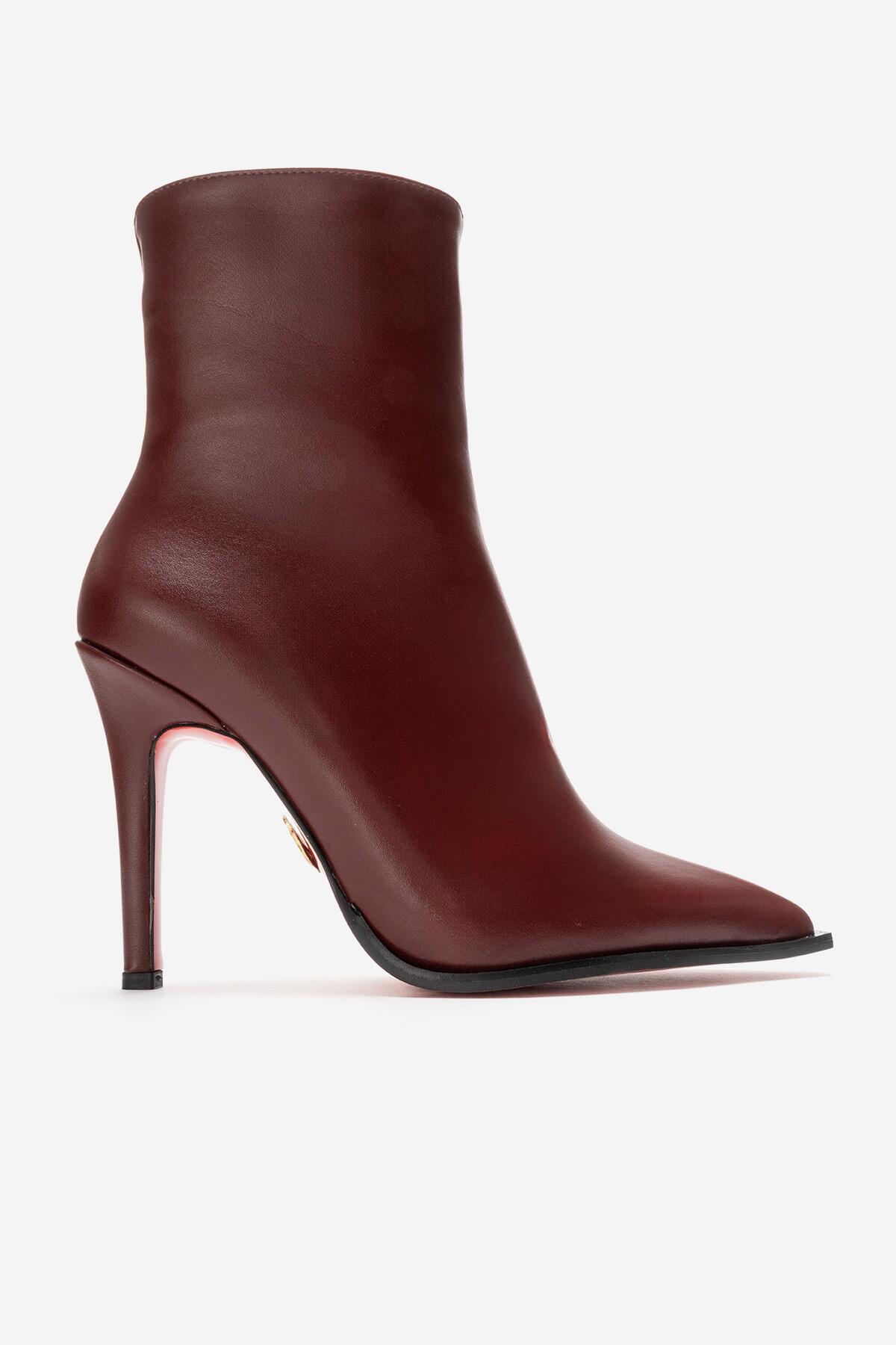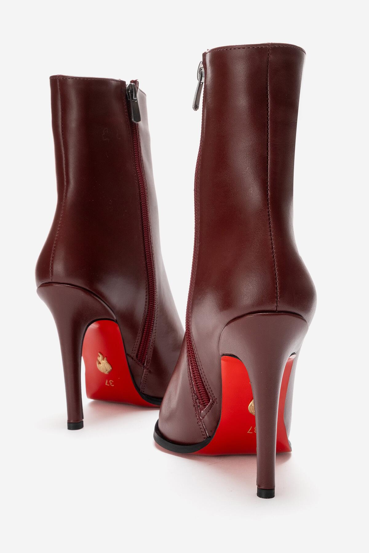 Kadın Tasarım Taban Bilek Boy İnce Topuklu Bot Yanni Bordo Cilt