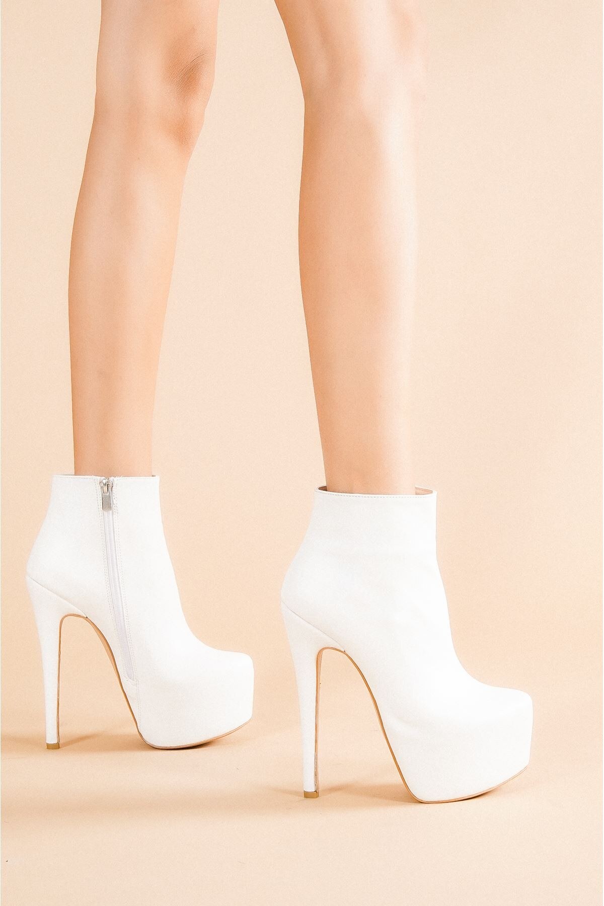 Kadın Yüksek İnce Topuk Platform Bot Punta Beyaz Cilt
