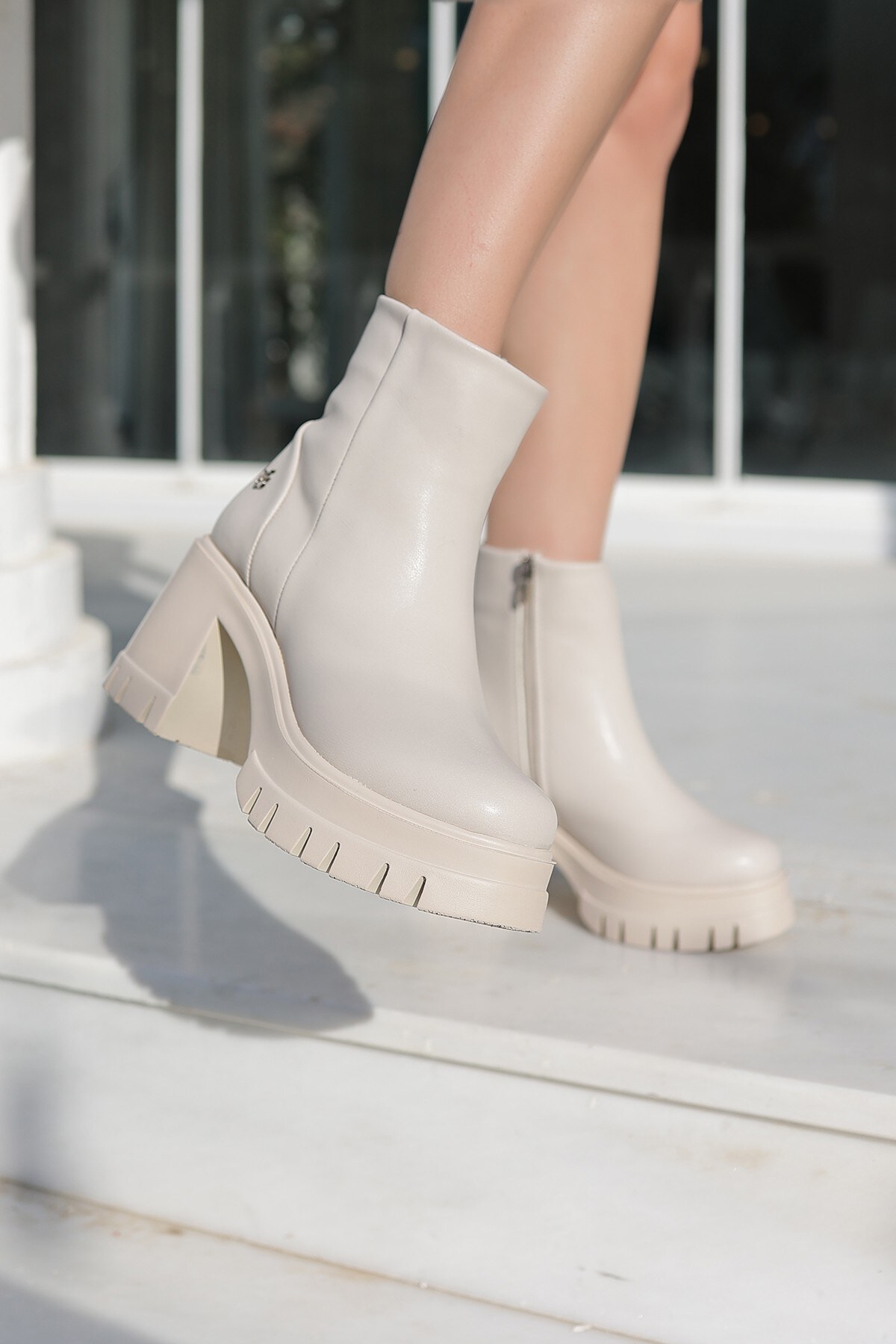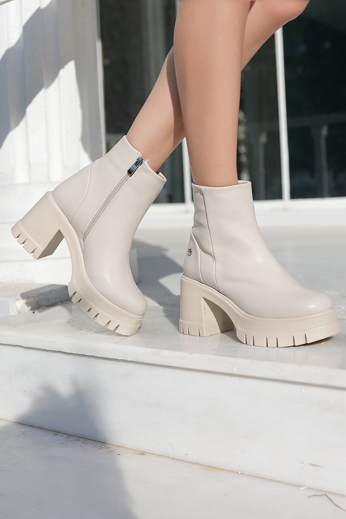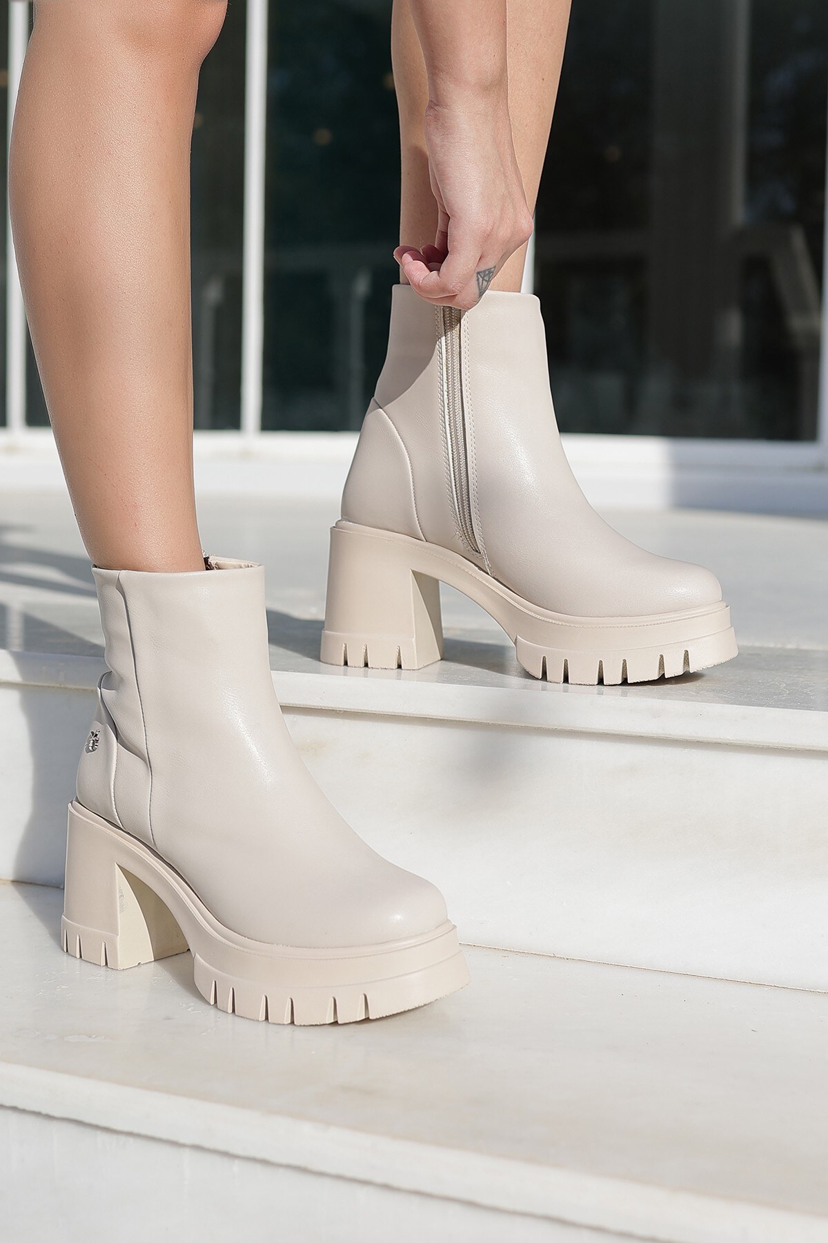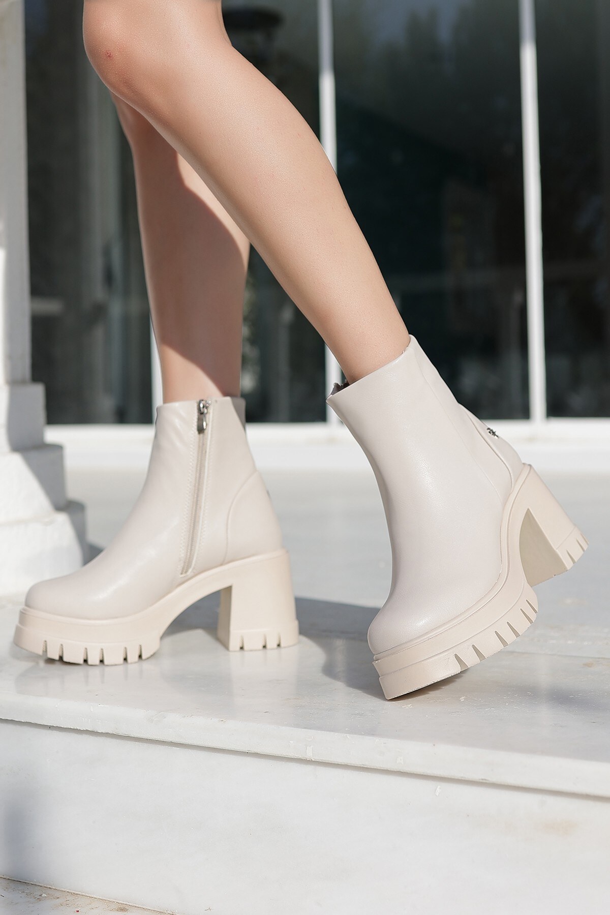 Kadın Yüksek Taban Fermuarlı Bot Klira Bej