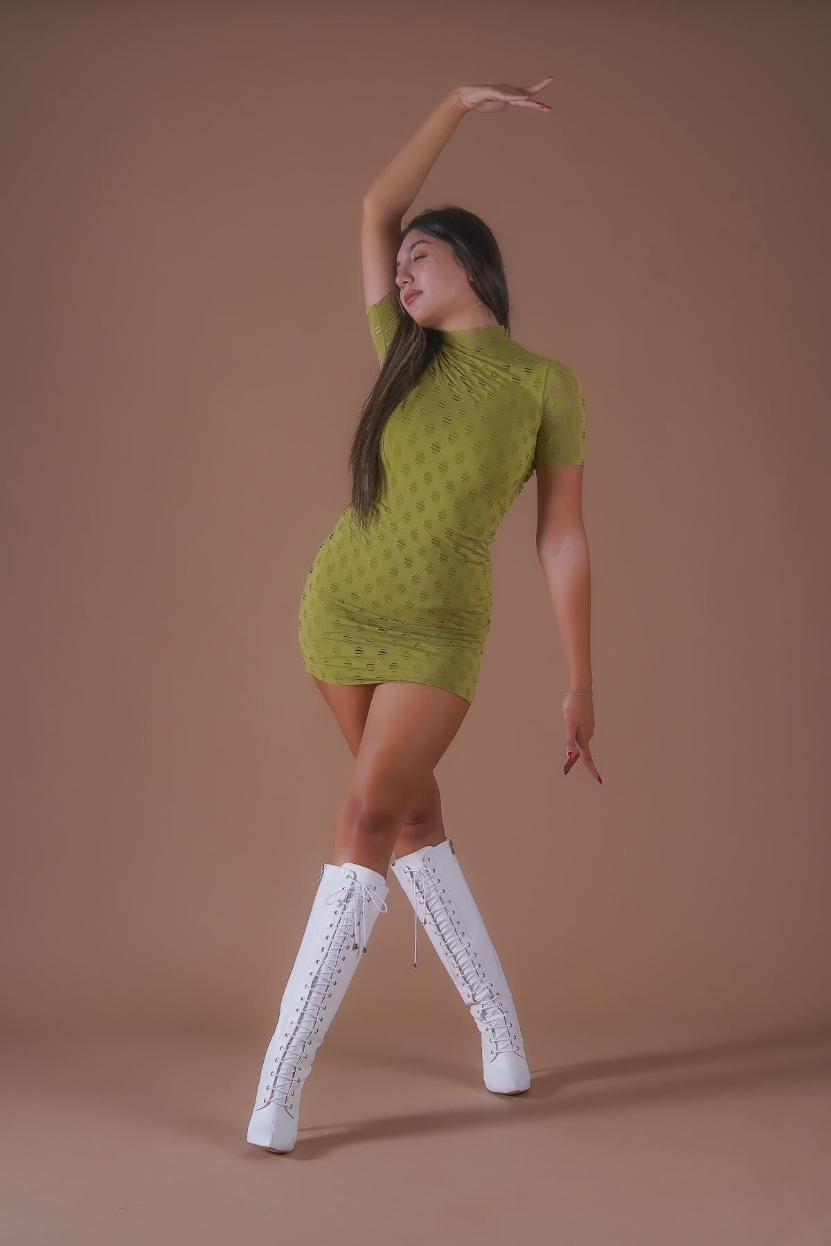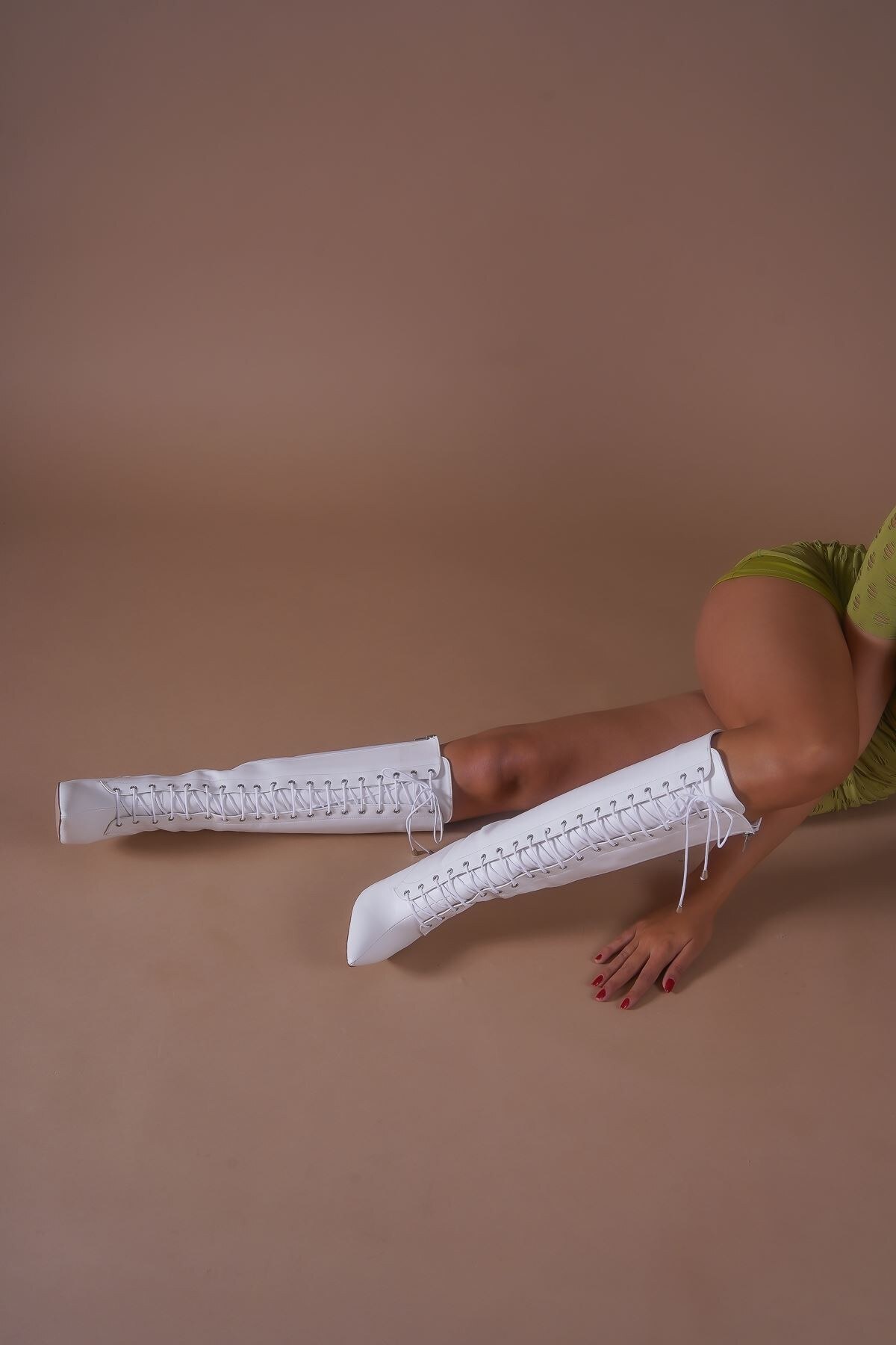 Kadın Bağcıklı Diz Altı Çizme Spike Beyaz Cilt