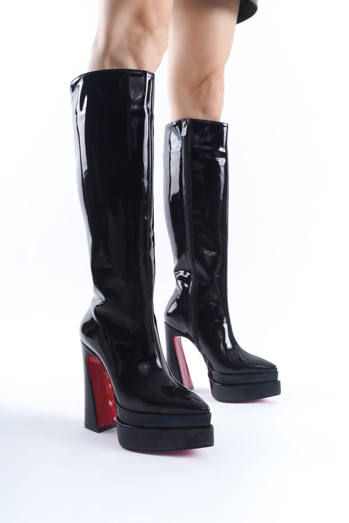 Kadın Çift Platform Yüksek Topuklu Çizme Jolly Siyah Rugan