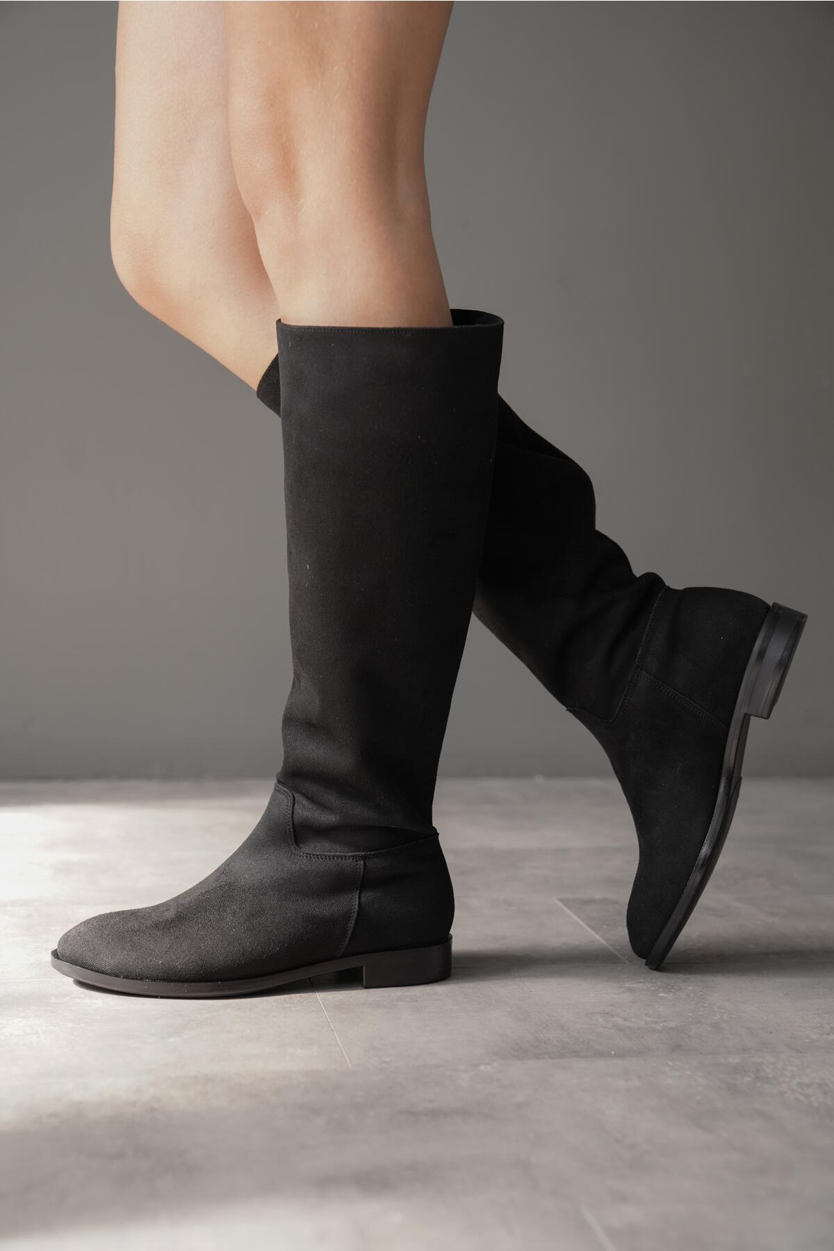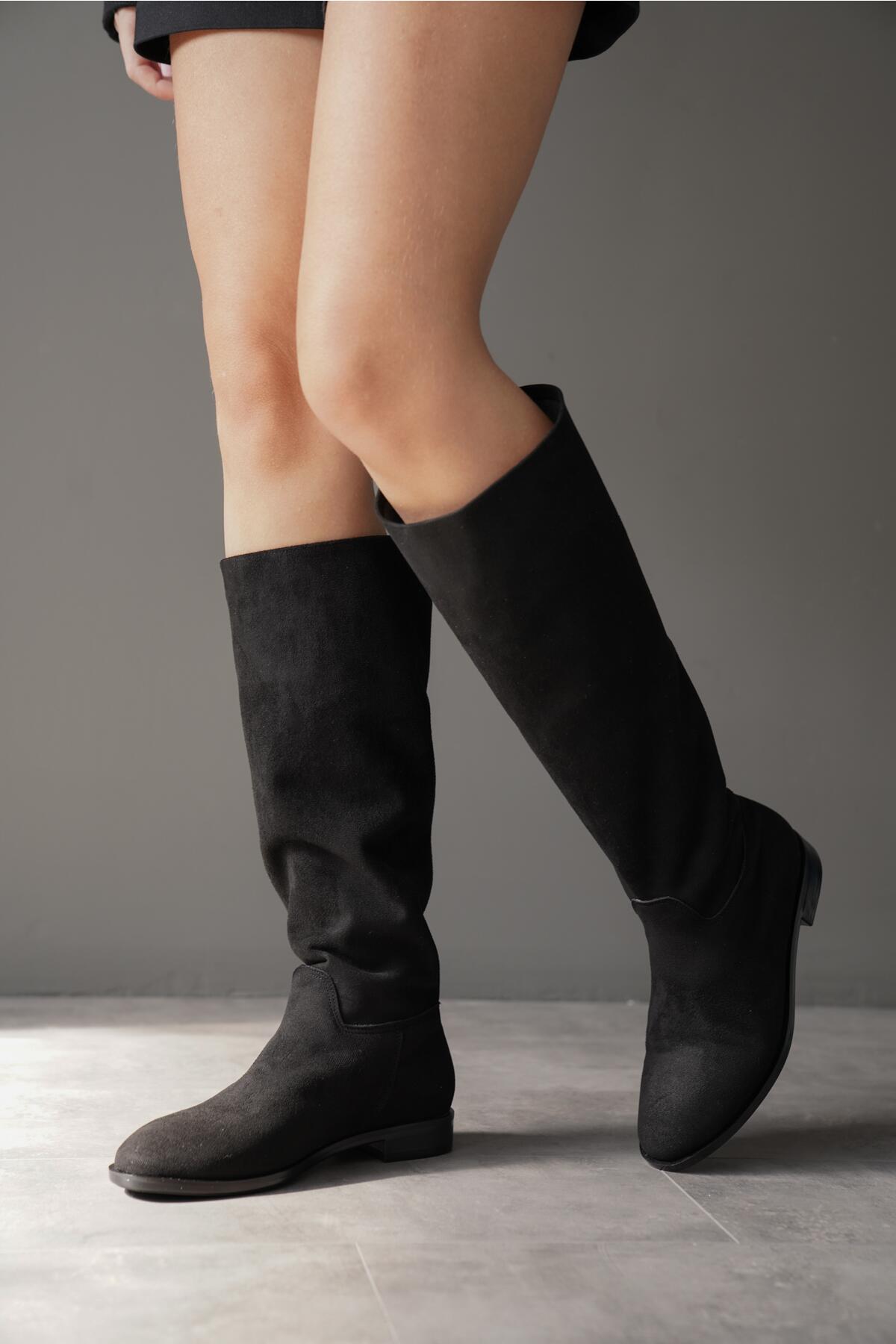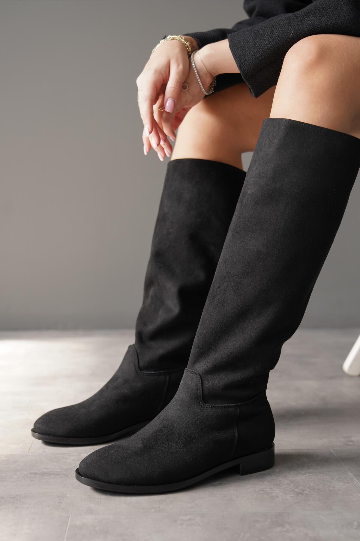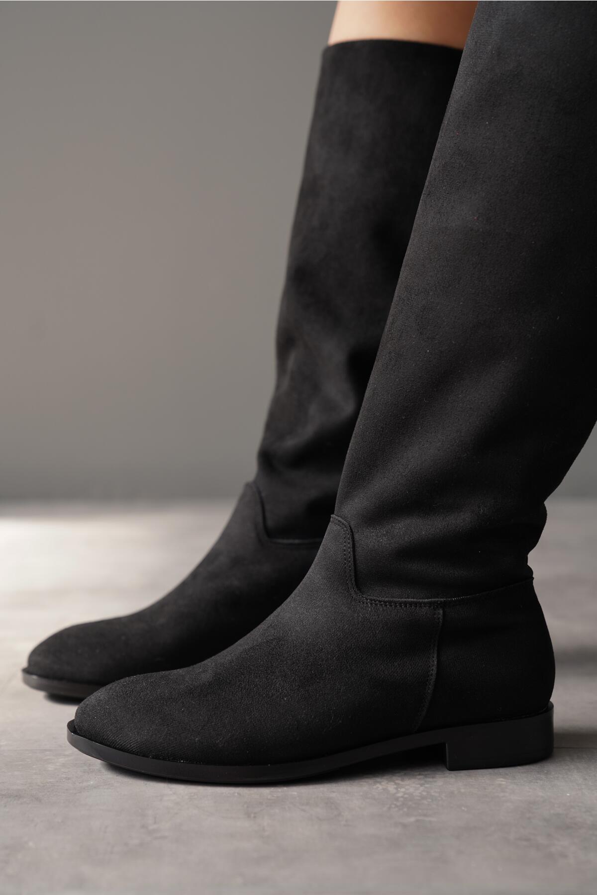 Kadın Fermuarsız Diz Altı Düz Çizme Roaley Siyah