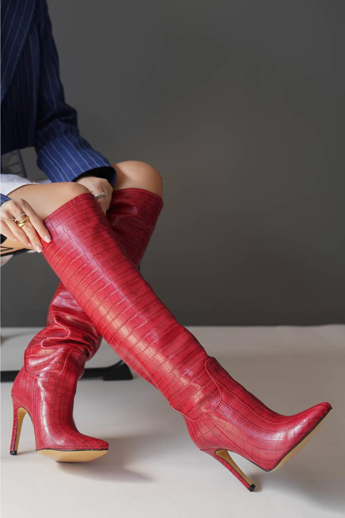 Kadın Sivri Burun Fermuarsız Çizme Balian Kırmızı