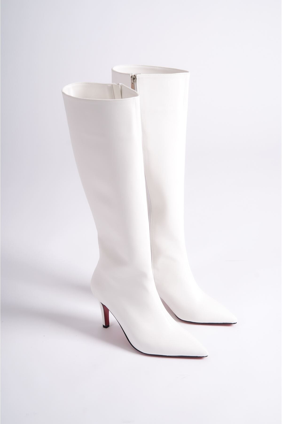 Kadın Sivri Burun Kısa Topuklu Çizme Zelda Beyaz Cilt