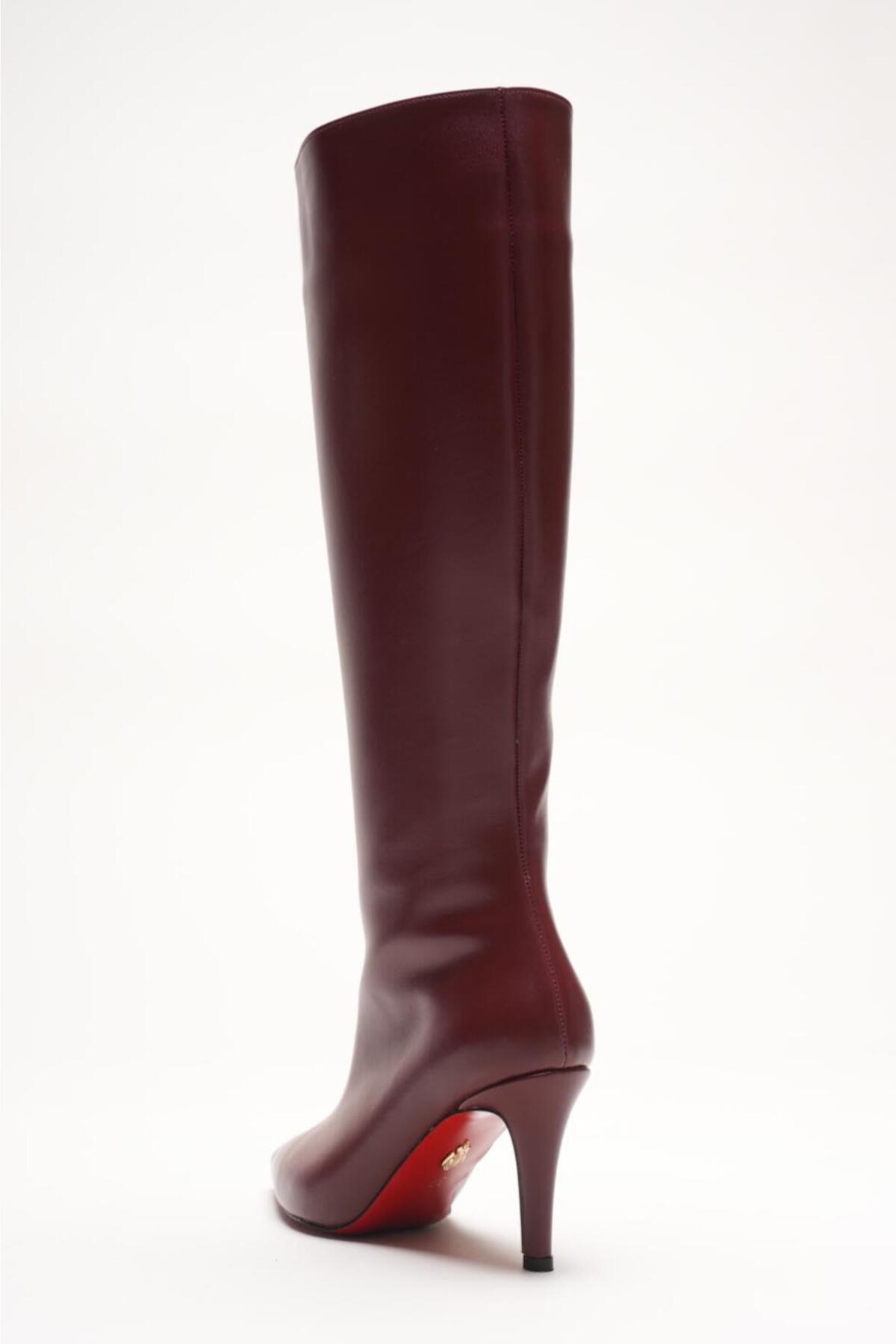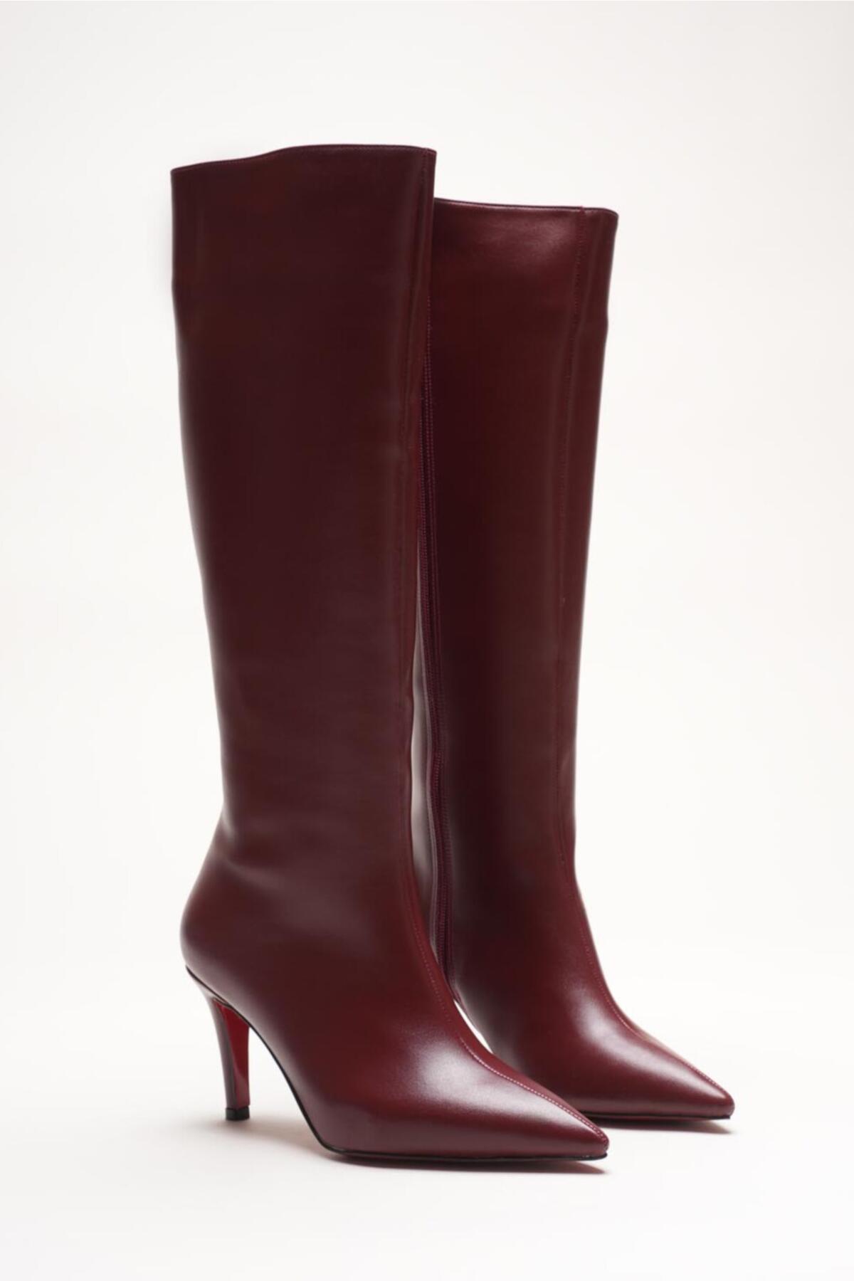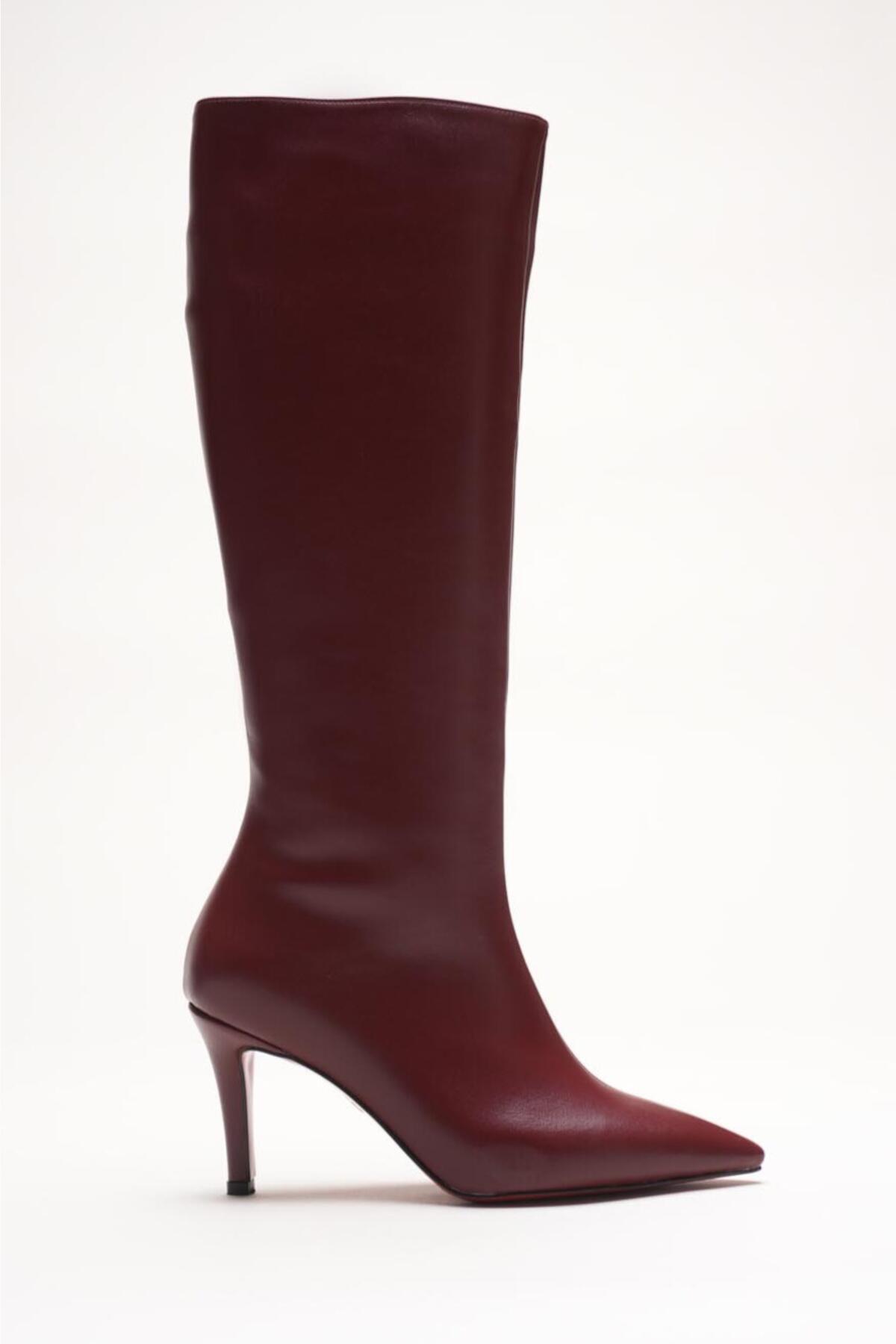 Kadın Sivri Burun Kısa Topuklu Çizme Zelda Bordo Cilt