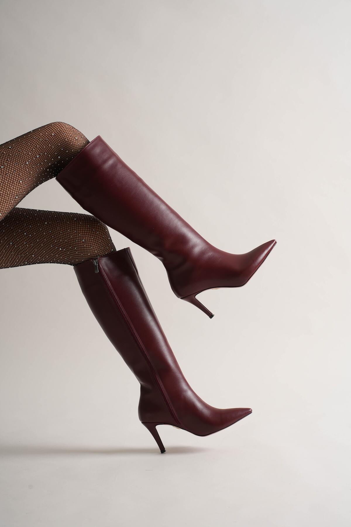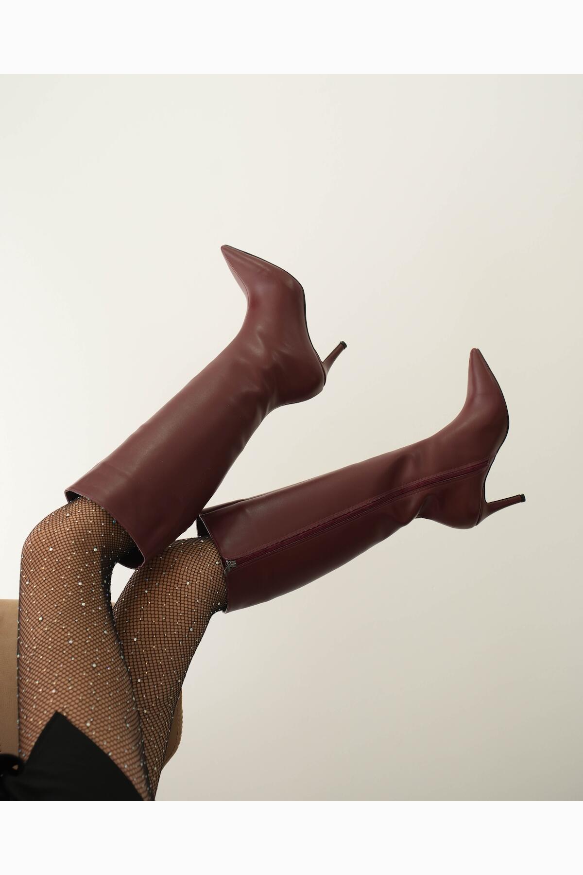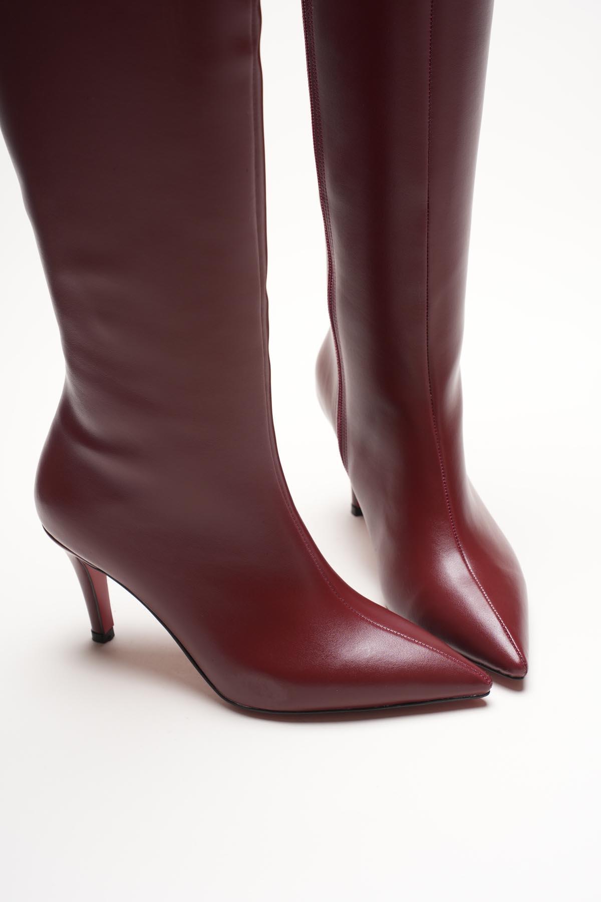 Kadın Sivri Burun Kısa Topuklu Çizme Zelda Bordo Cilt