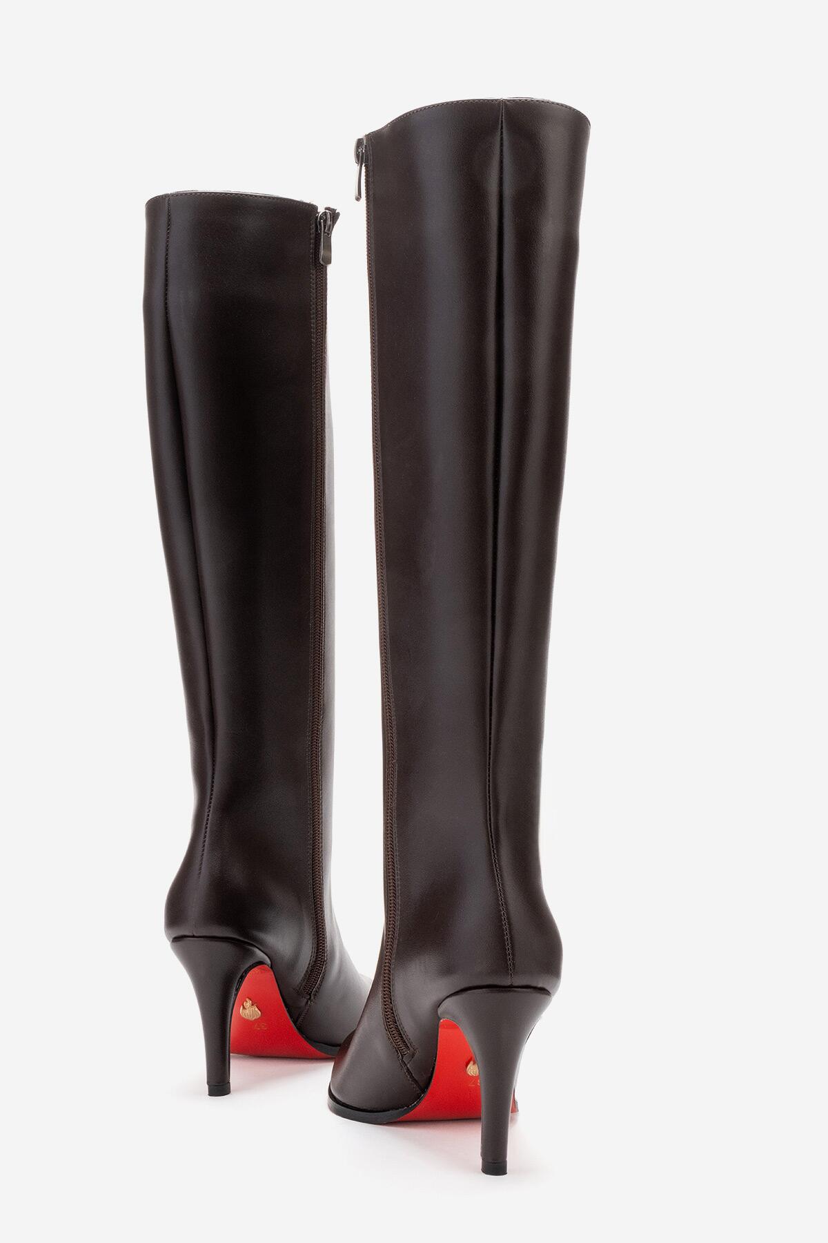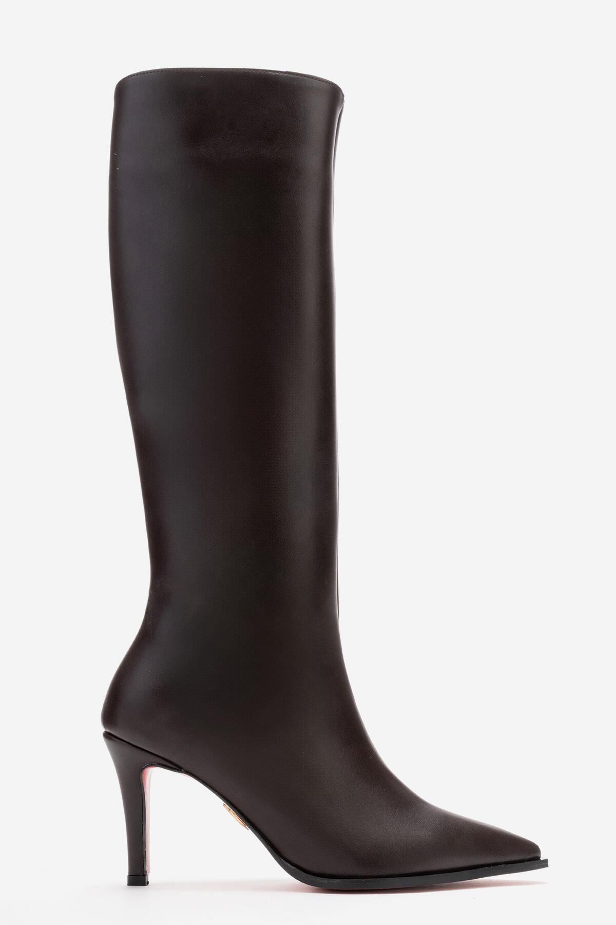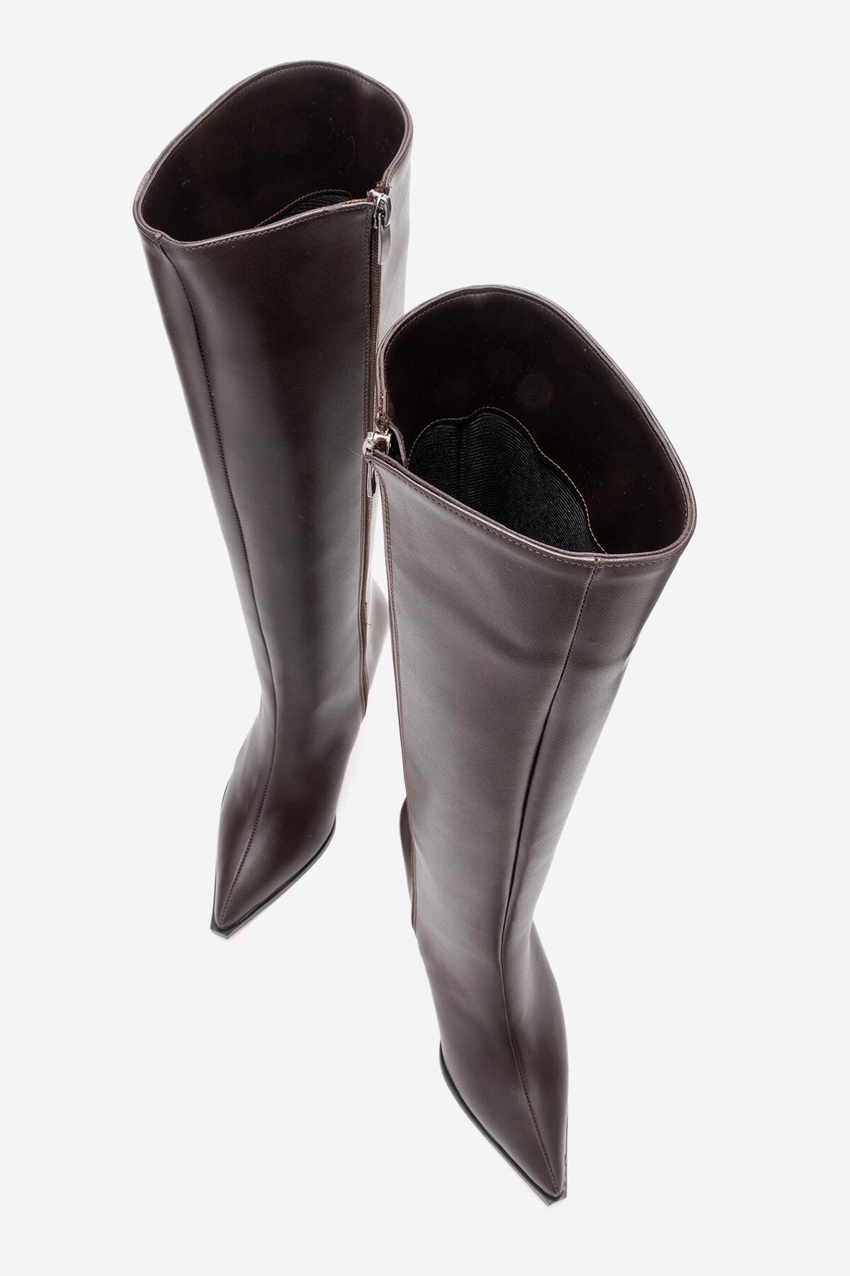Kadın Sivri Burun Kısa Topuklu Diz Altı Çizme Togie Kahverengi Cilt