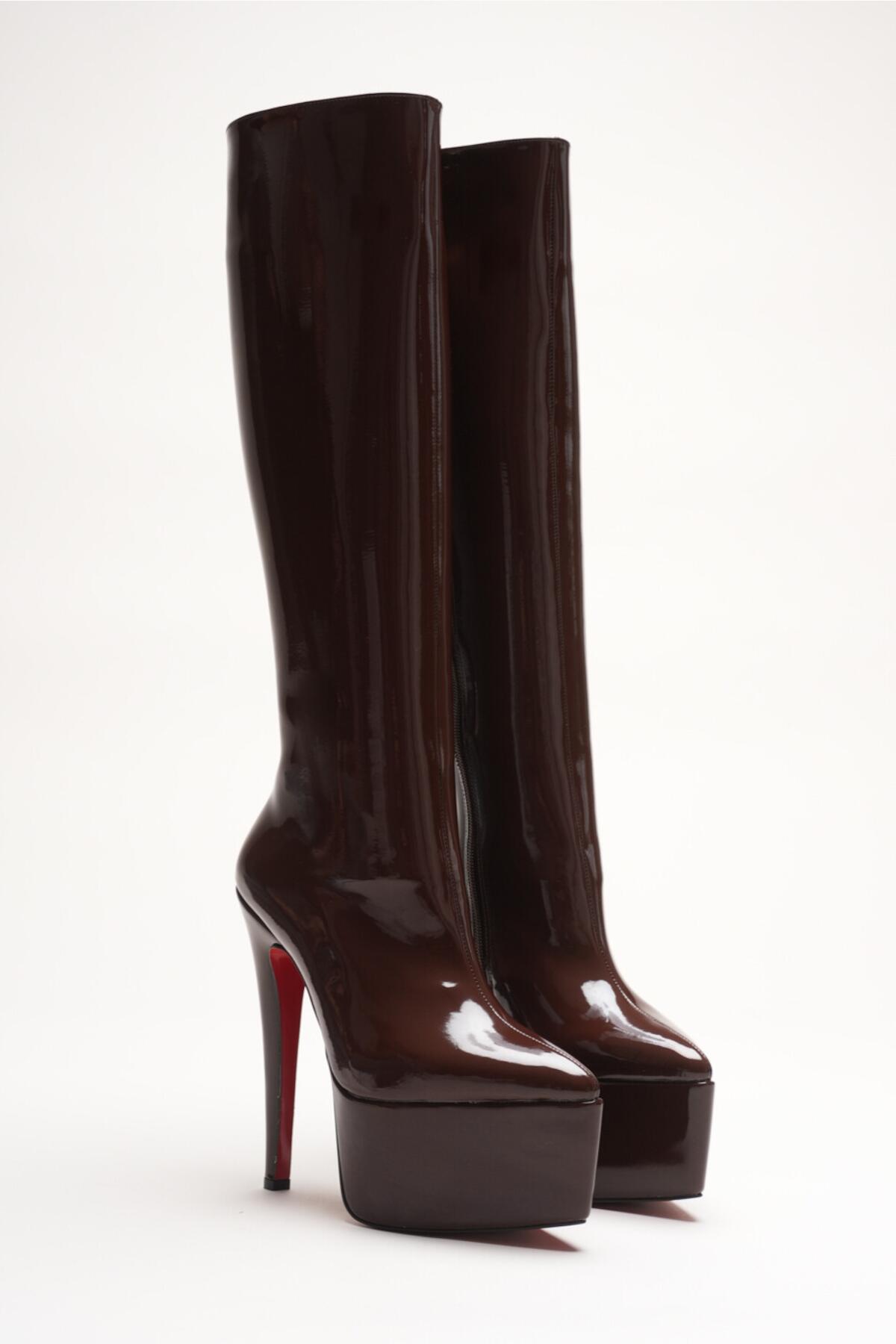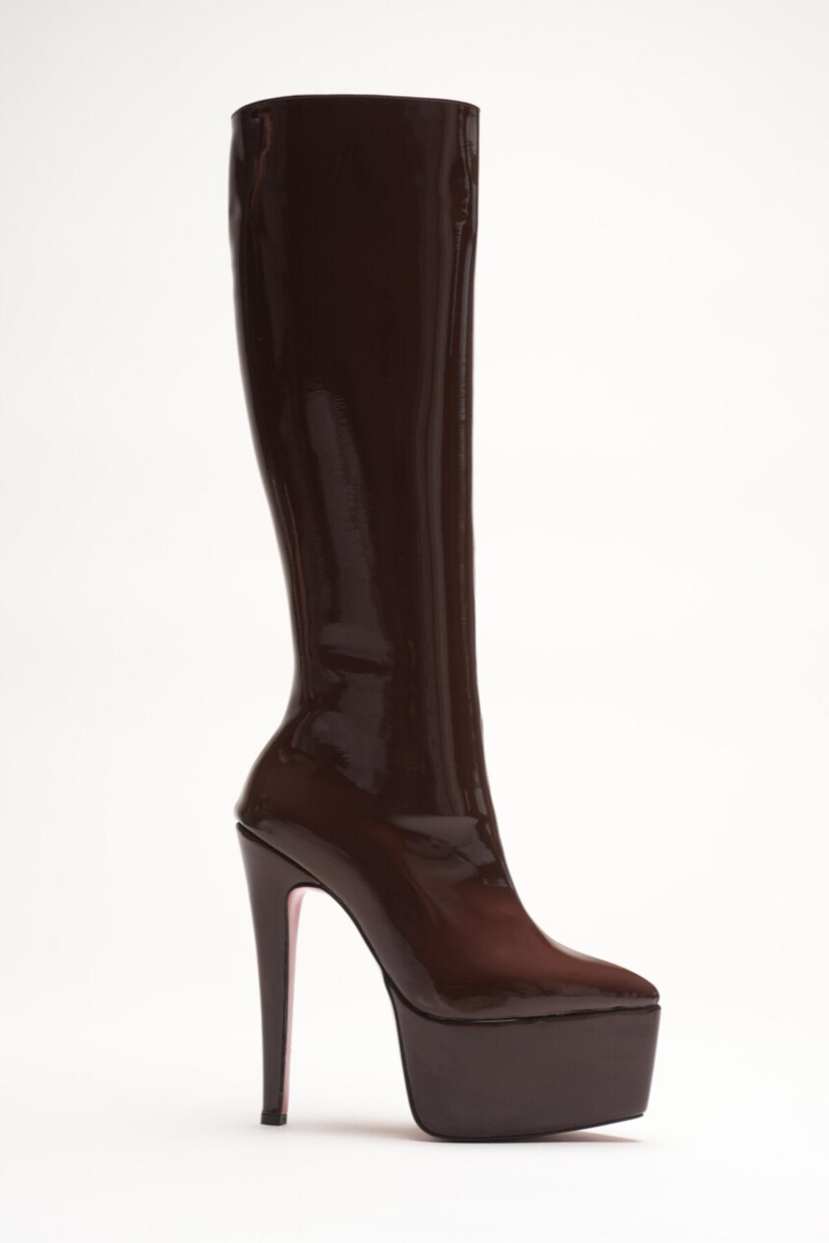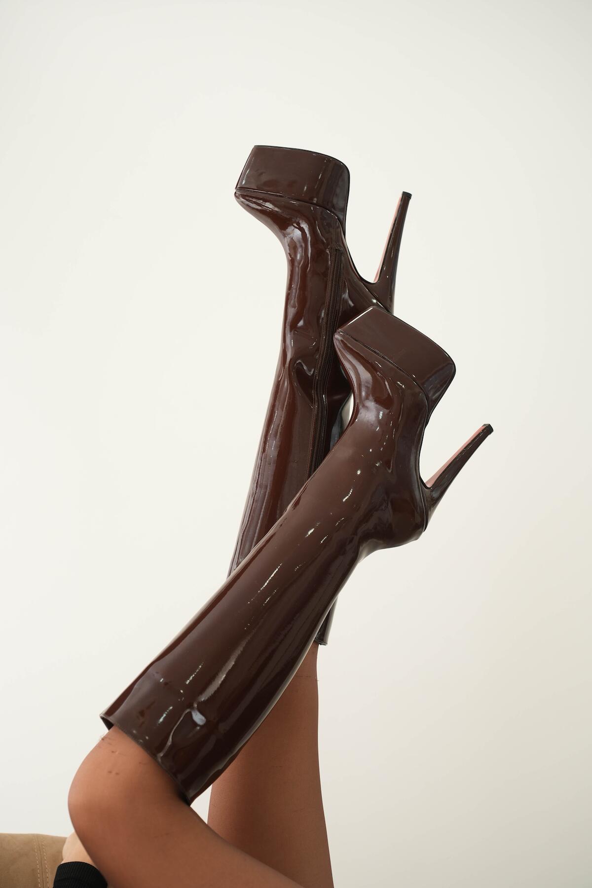 Kadın Sivri Burun Yüksek Topuklu Çizme Carmen Kahverengi Rugan