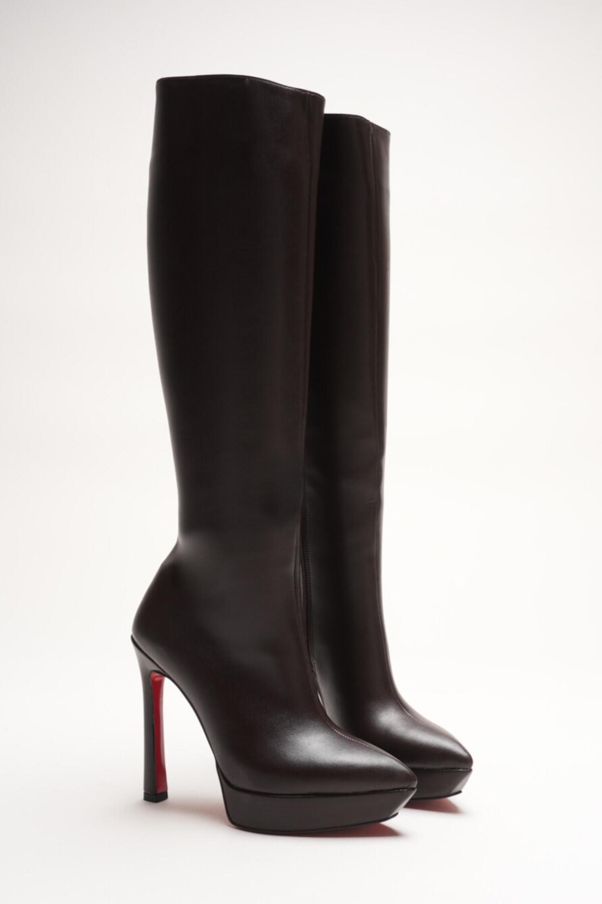 Kadın Tasarım Platform Yüksek Topuklu Çizme Carcie Kahverengi Cilt