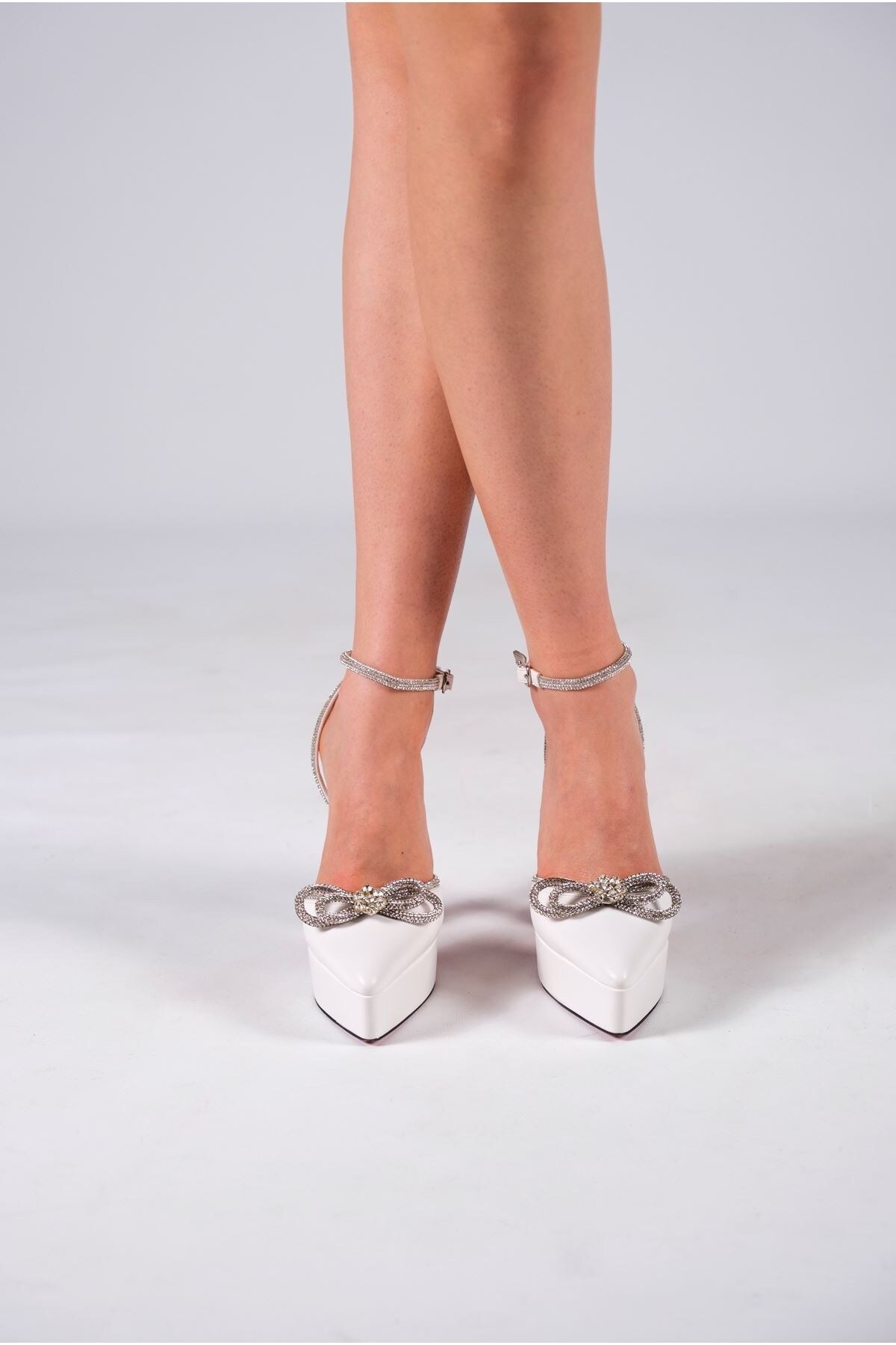 Kadın Taş Detaylı Platform Kadın Ayakkabı Fallon Beyaz Cilt