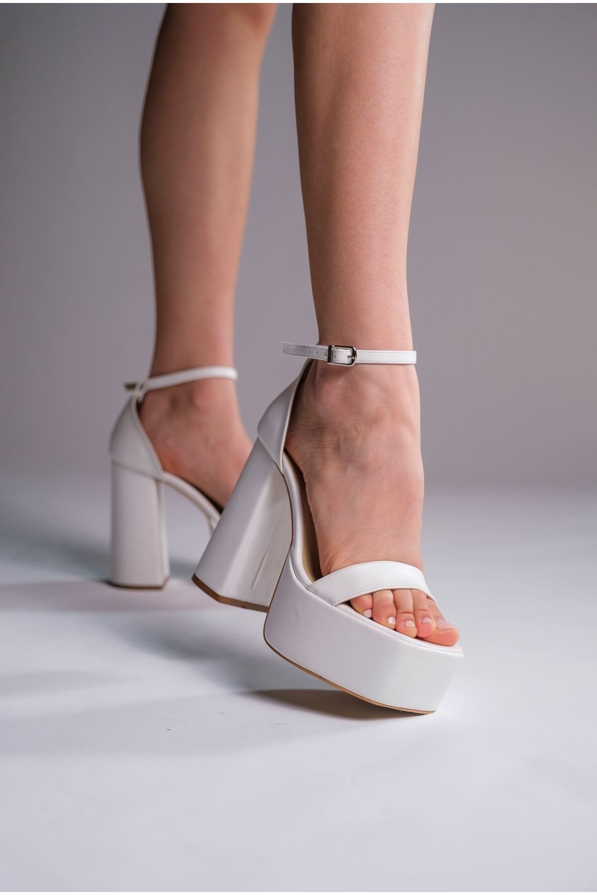 Kadın Tasarım Platform Yüksek Topuklu Ayakkabı Yolanda Beyaz Cilt
