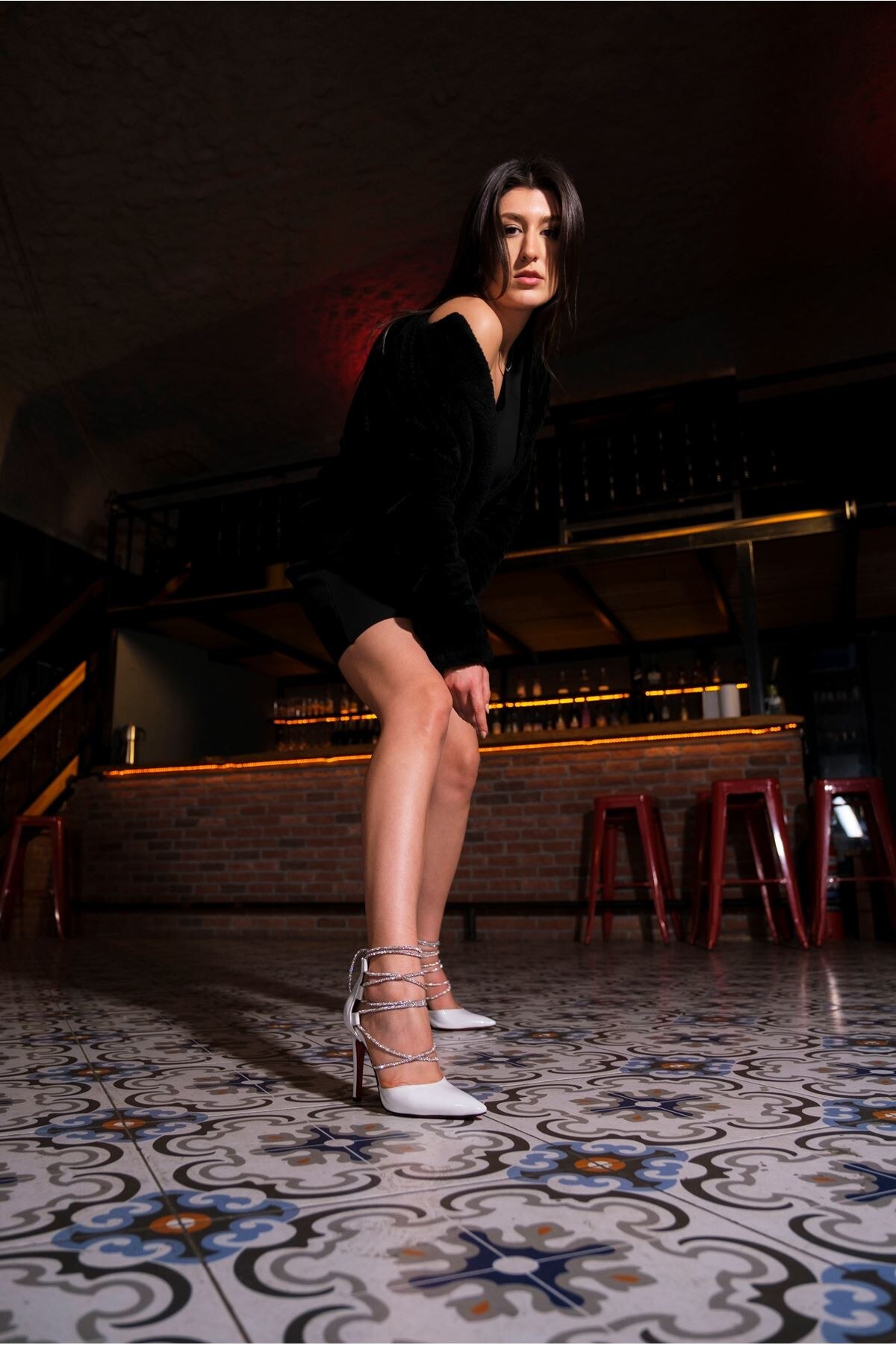 Kadın Taşlı Biyeli Özel Tasarım İnce Topuklu Ayakkabı Stiletto Jayla Beyaz Cilt
