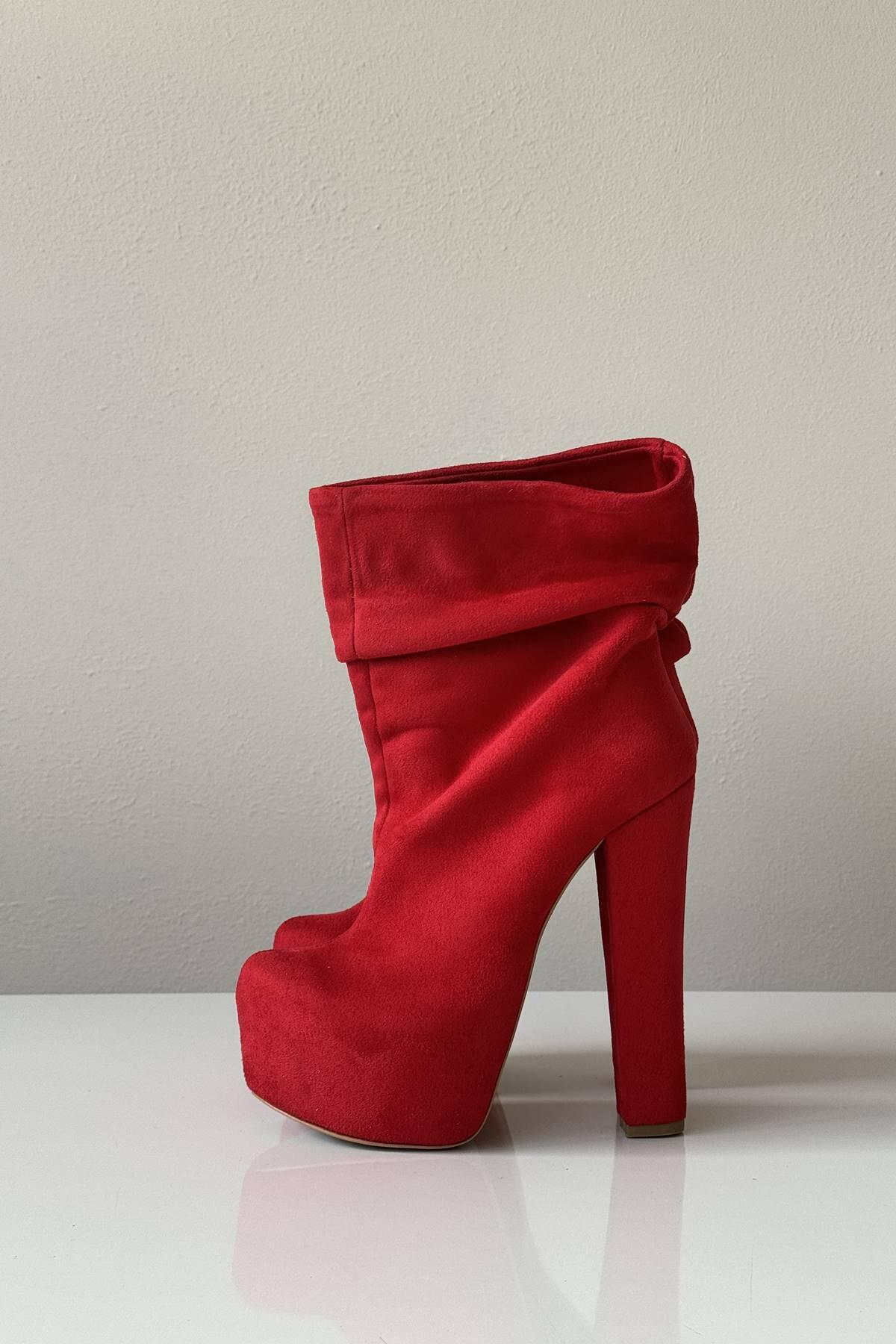 Kırmızı Süet Körüklü Bot Kırmızı Süet