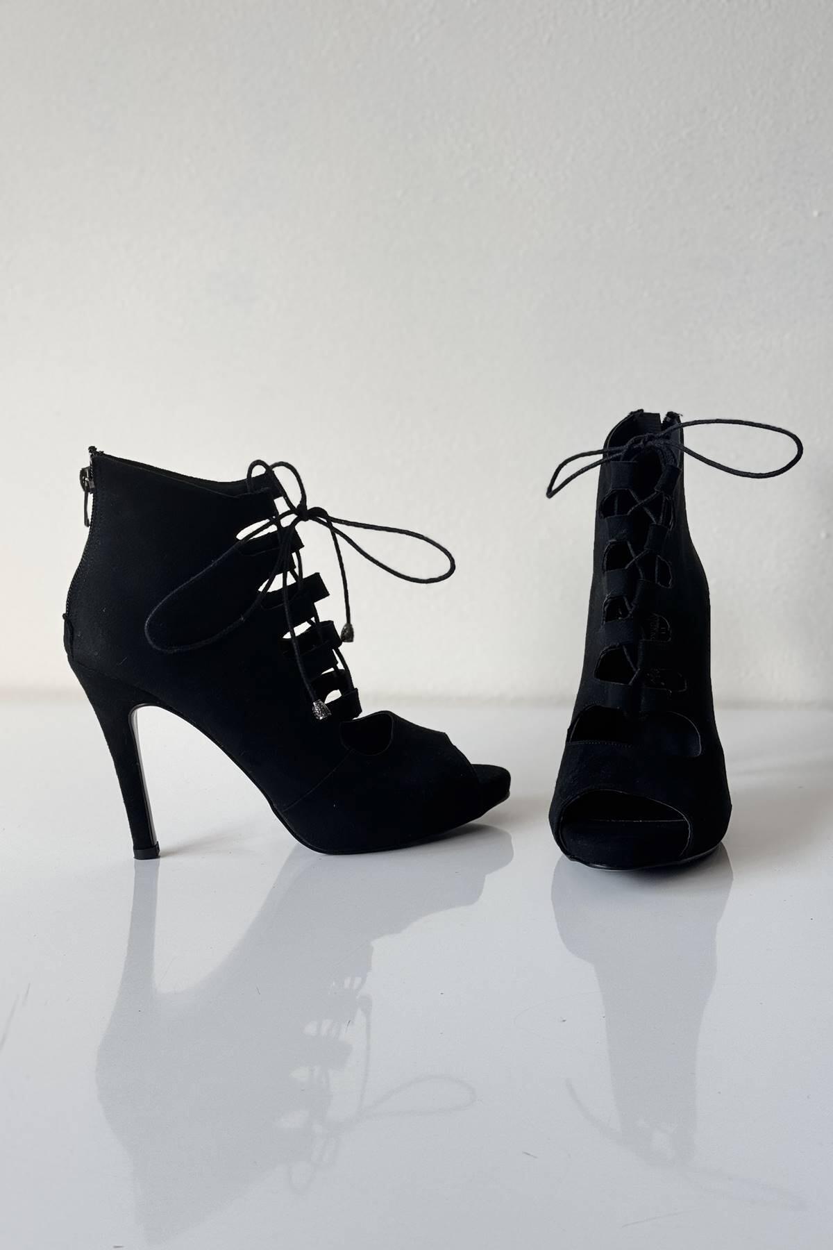 Siyah Süet Bağcıklı Boti Siyah Süet