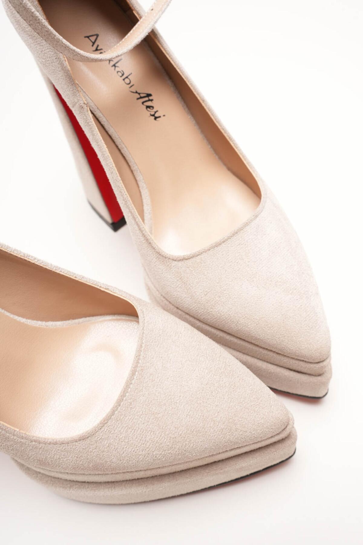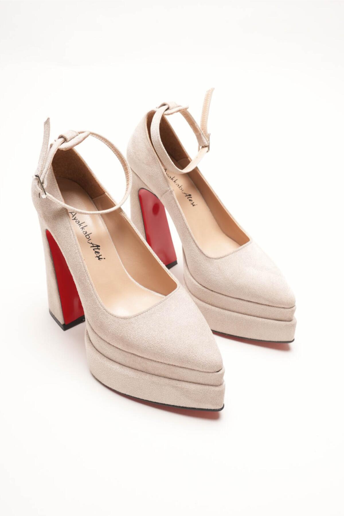 Çift Platform Özel Tasarım Kadın Ayakkabı Rigels Bej Süet