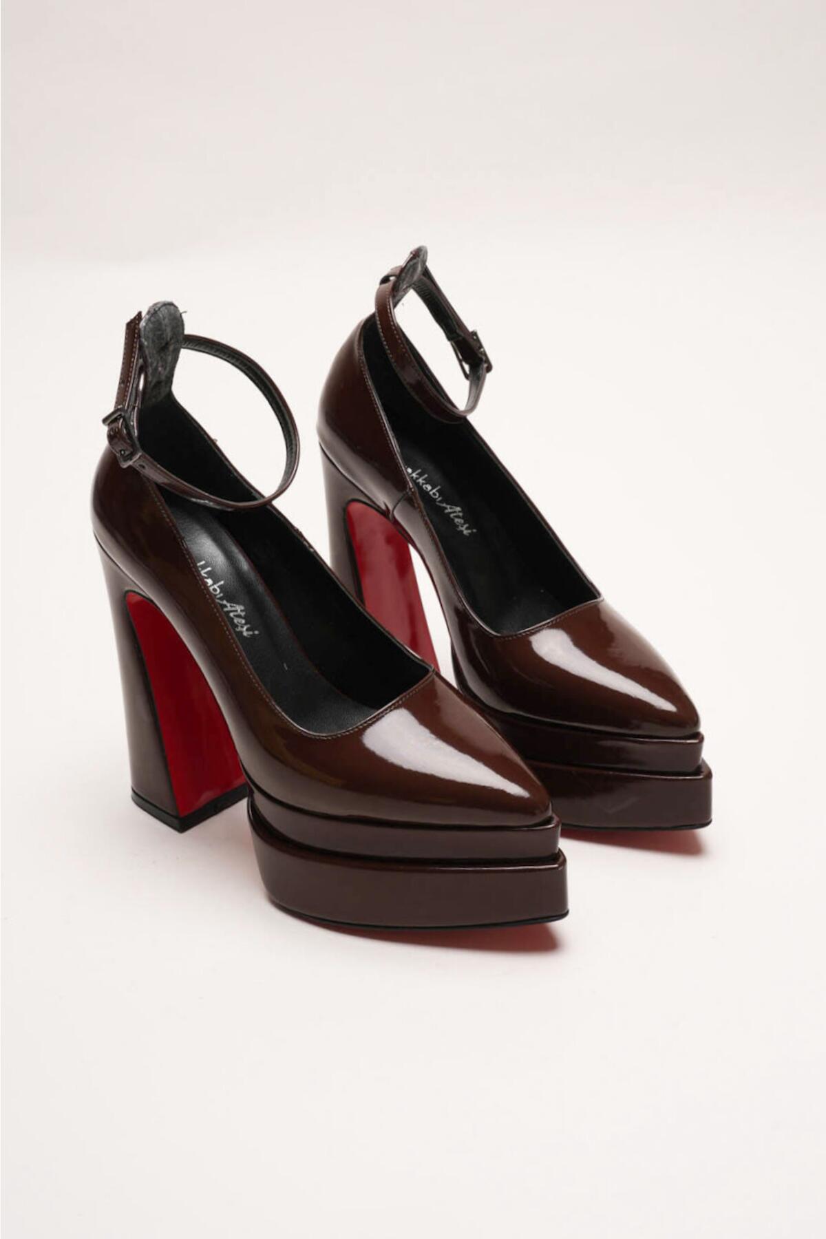 Çift Platform Özel Tasarım Kadın Ayakkabı Rigels Kahverengi Rugan