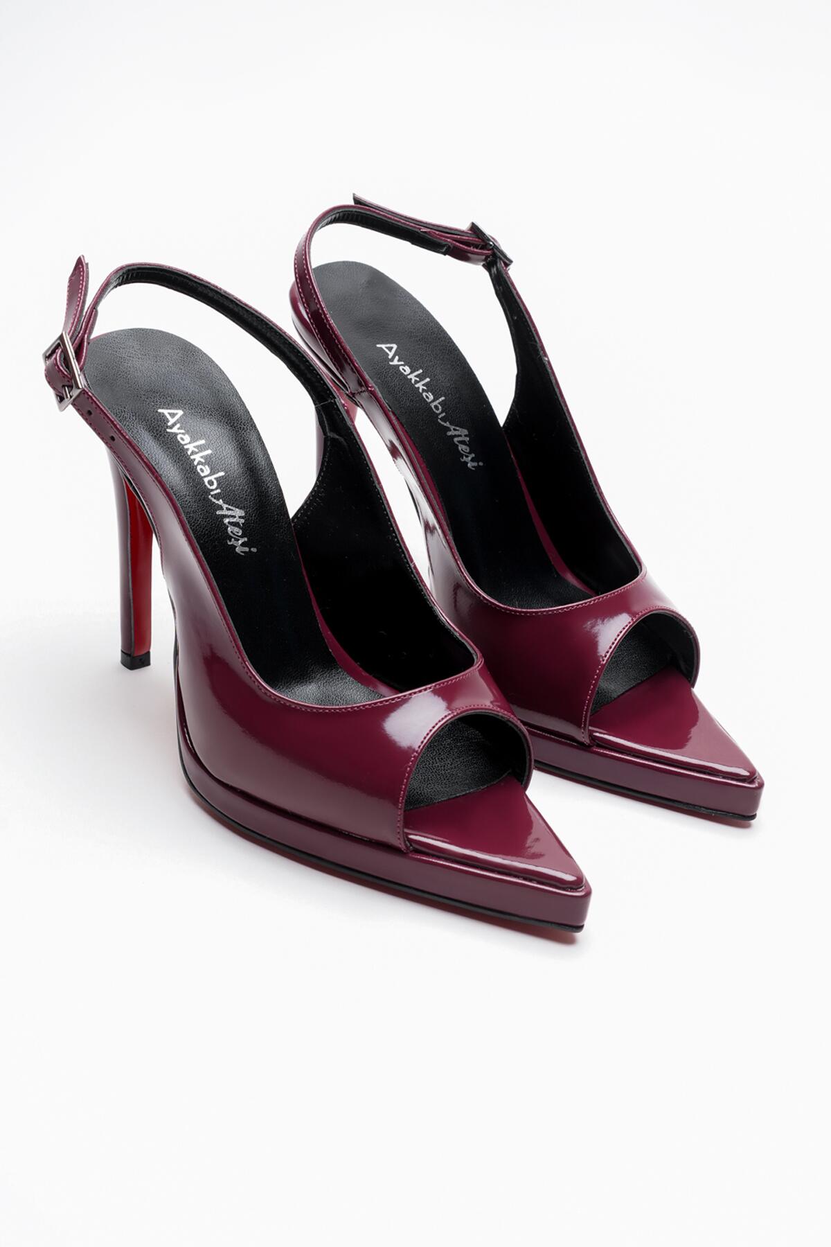 Kadın Arka Açık Sivri Burun İnce Topuklu Platform Ayakkabı Hari Bordo Rugan