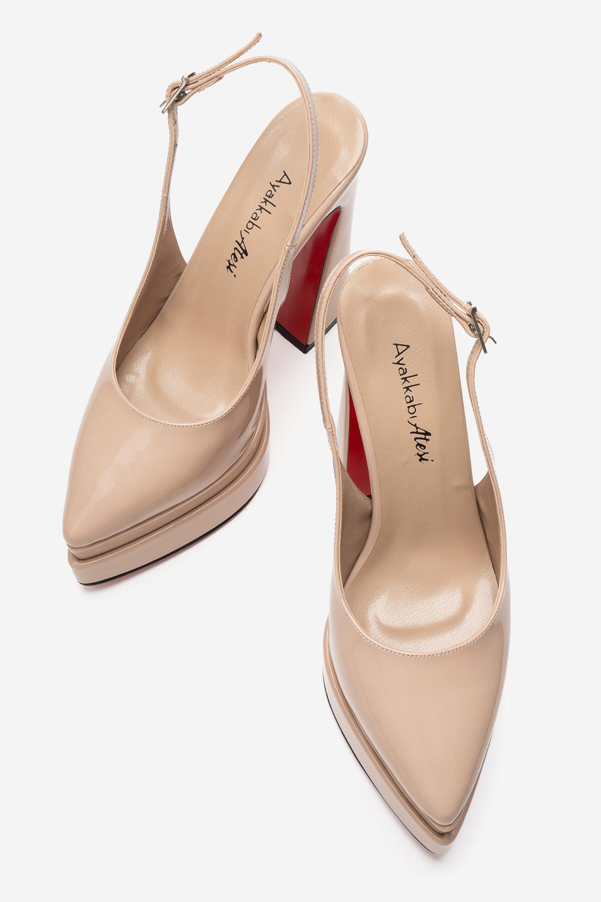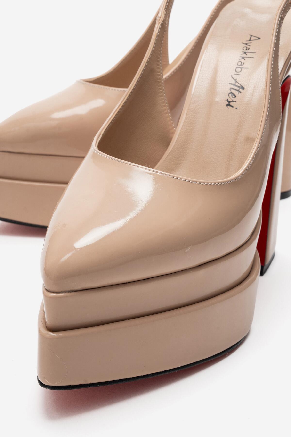 Kadın Arkası Açık Sivri Burun Çift Platform Yüksek Topuklu Ayakkabı Medelo Nude Rugan