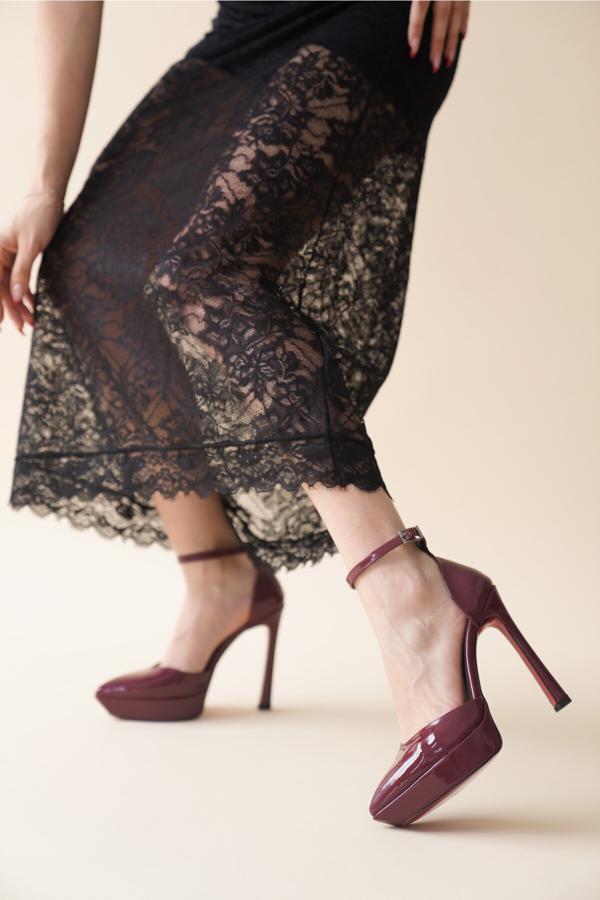 Kadın Baretli Platform Topuklu Ayakkabı Accies Bordo