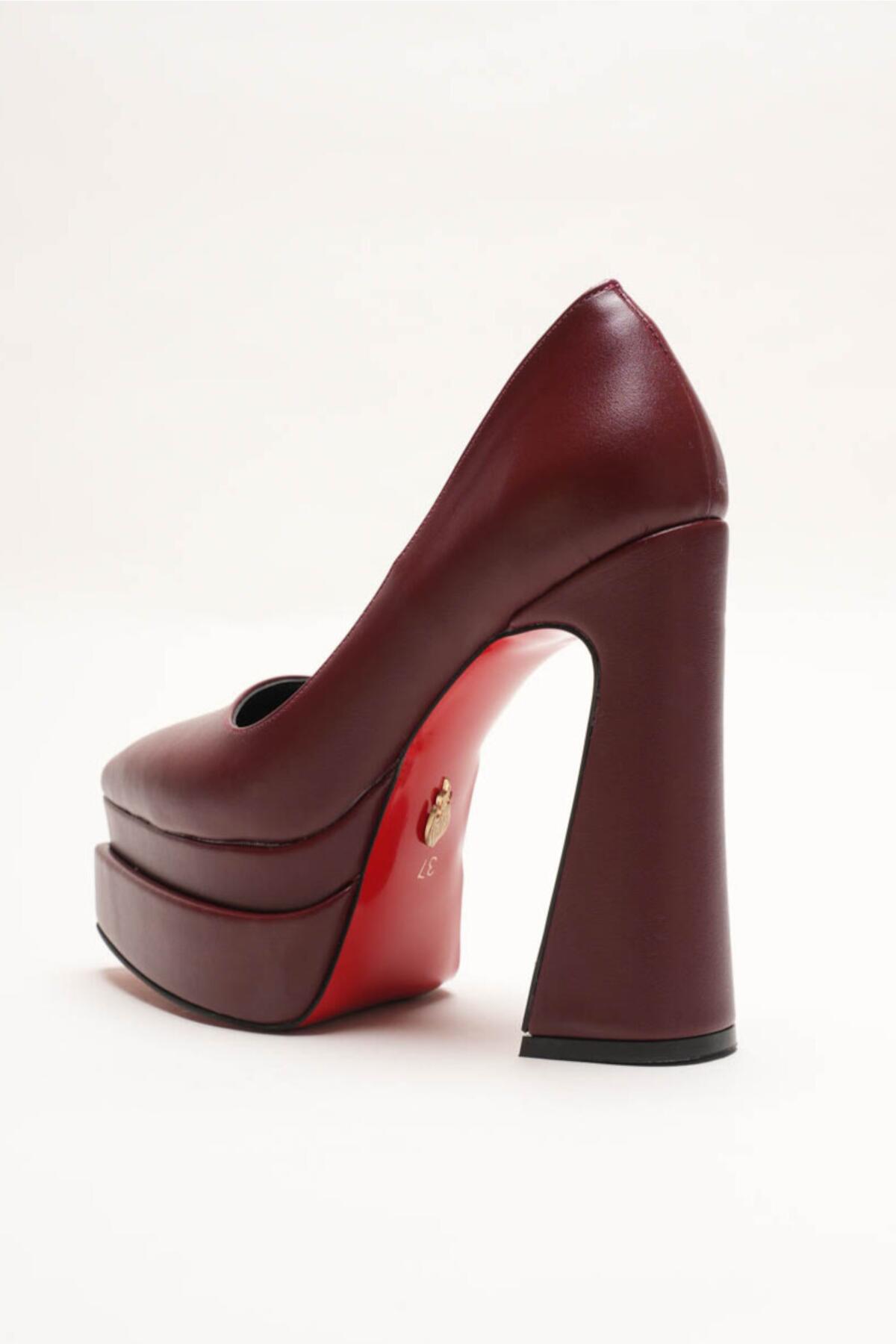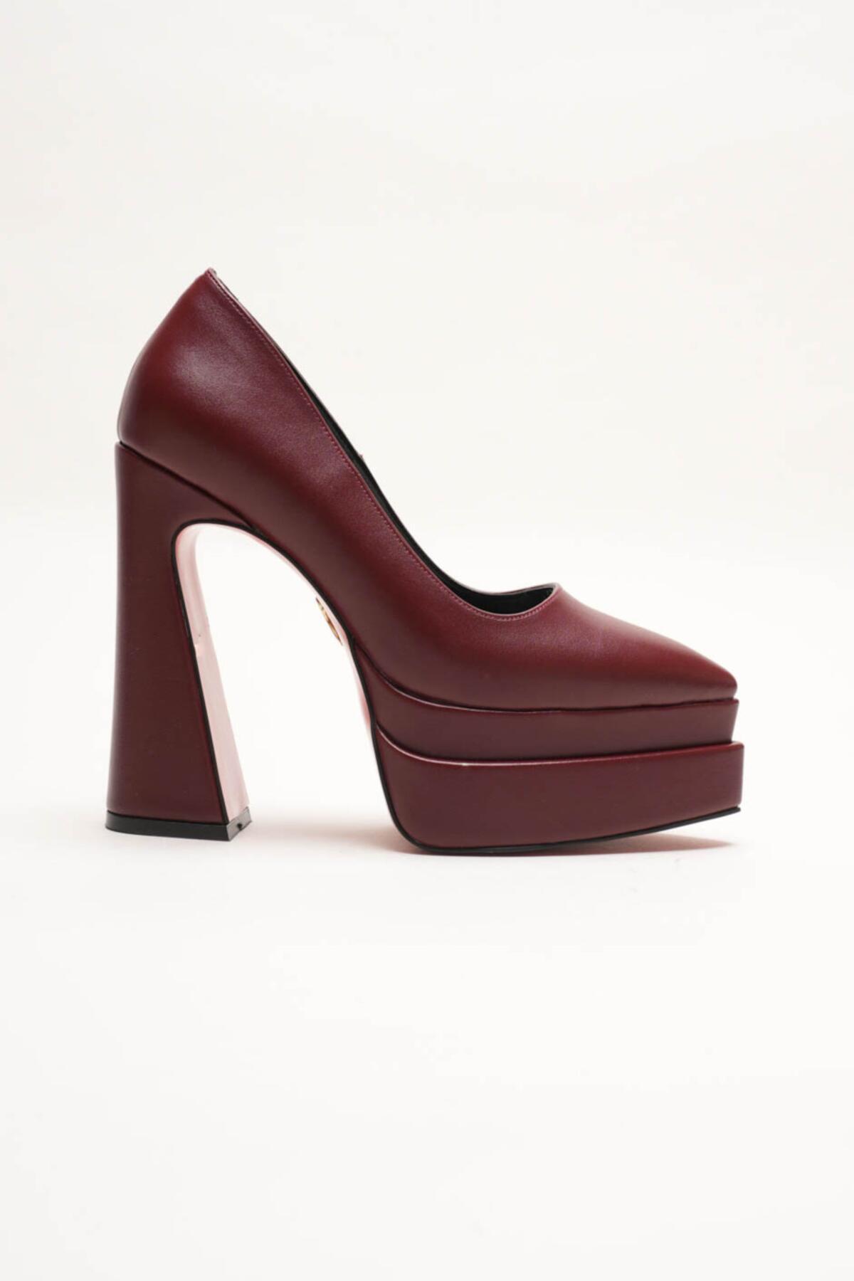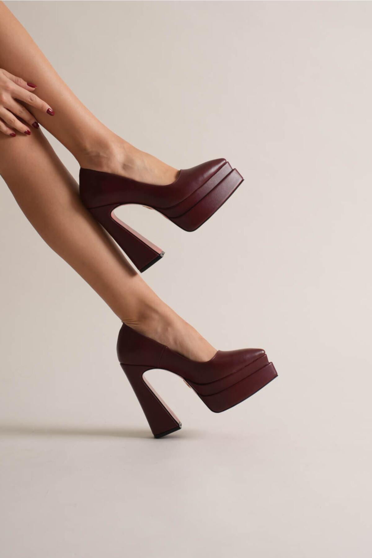Kadın Çift Platform Özel Tasarım Kadın Ayakkabı Rigel Bordo Cilt