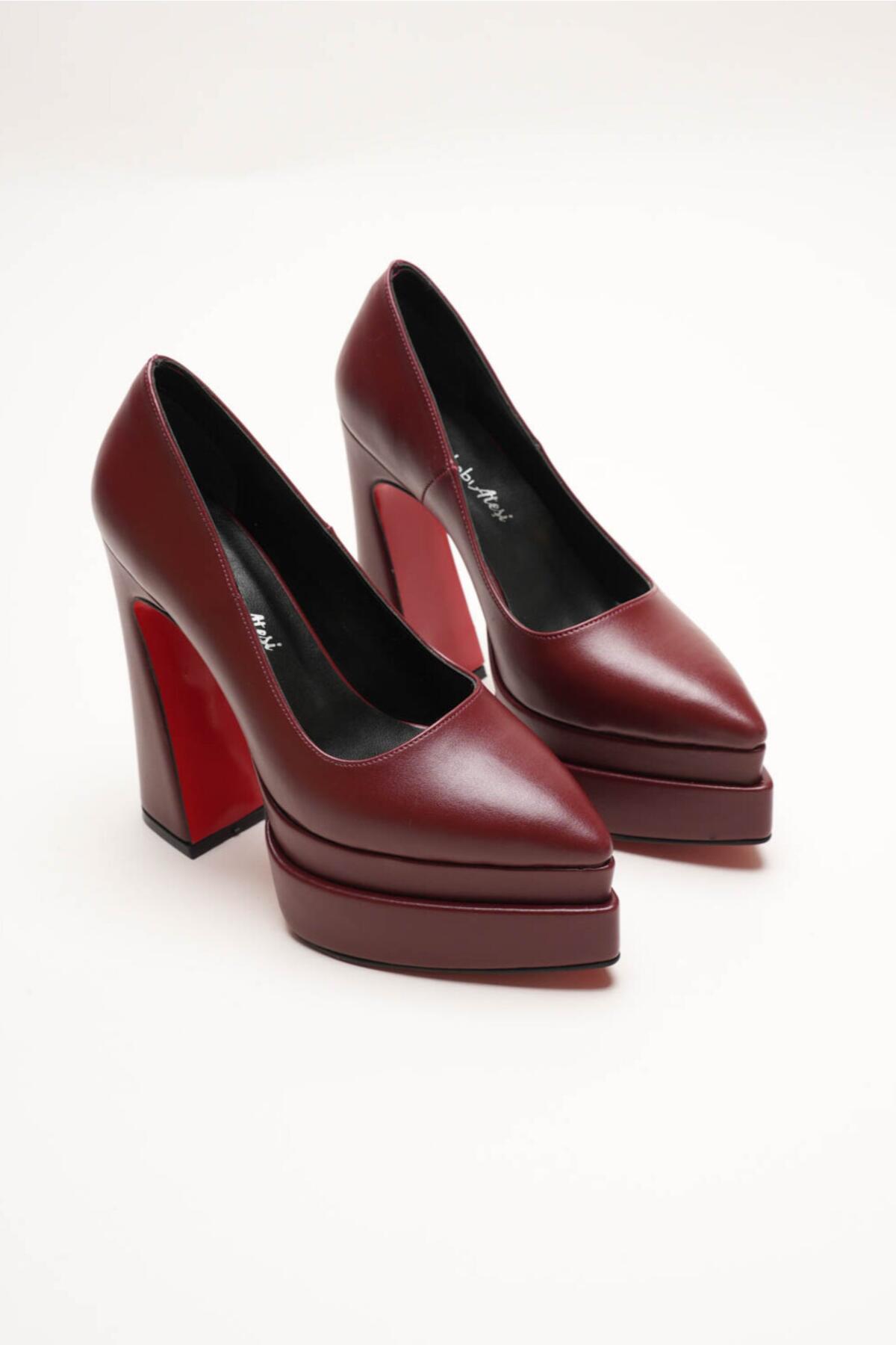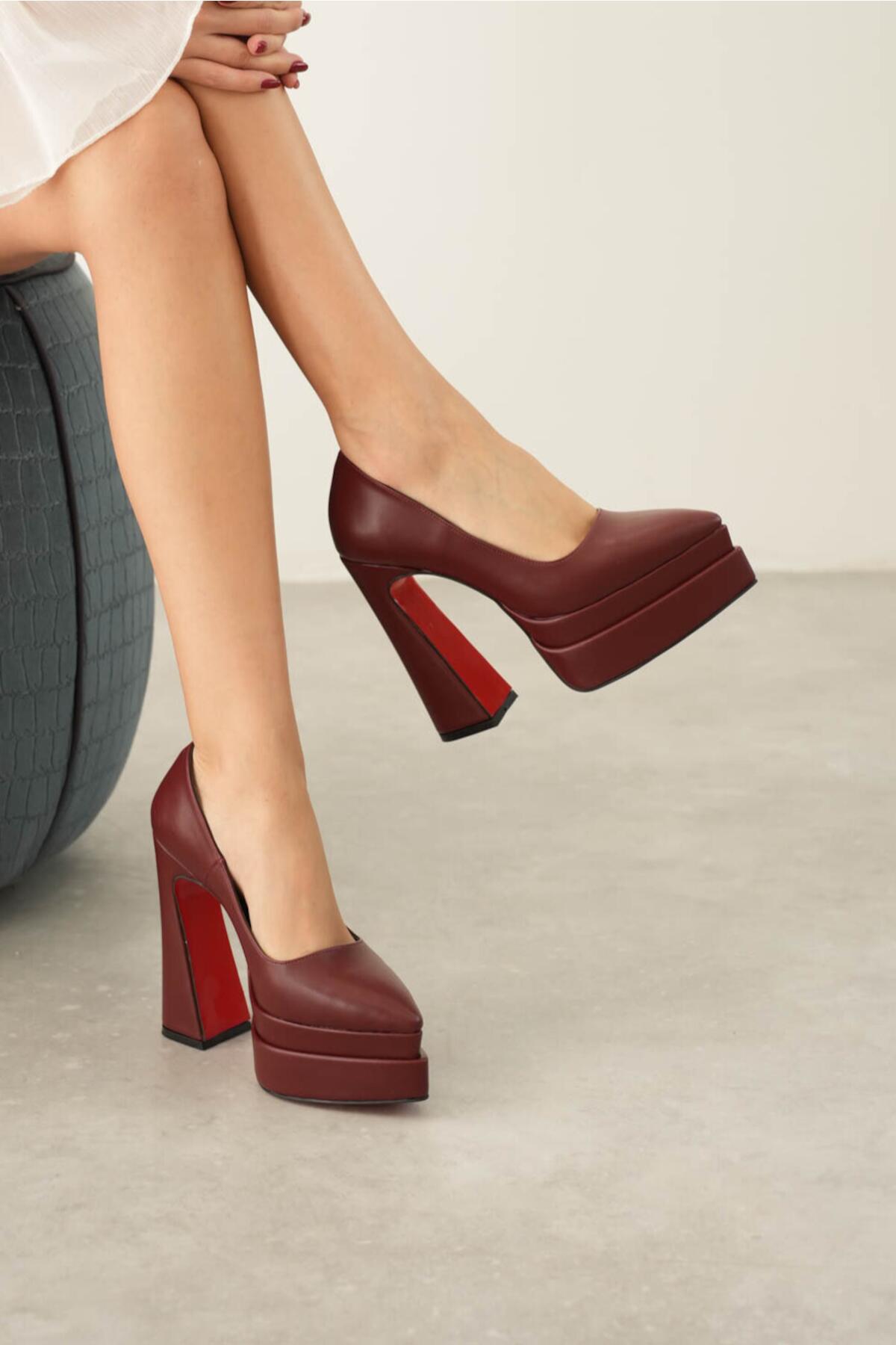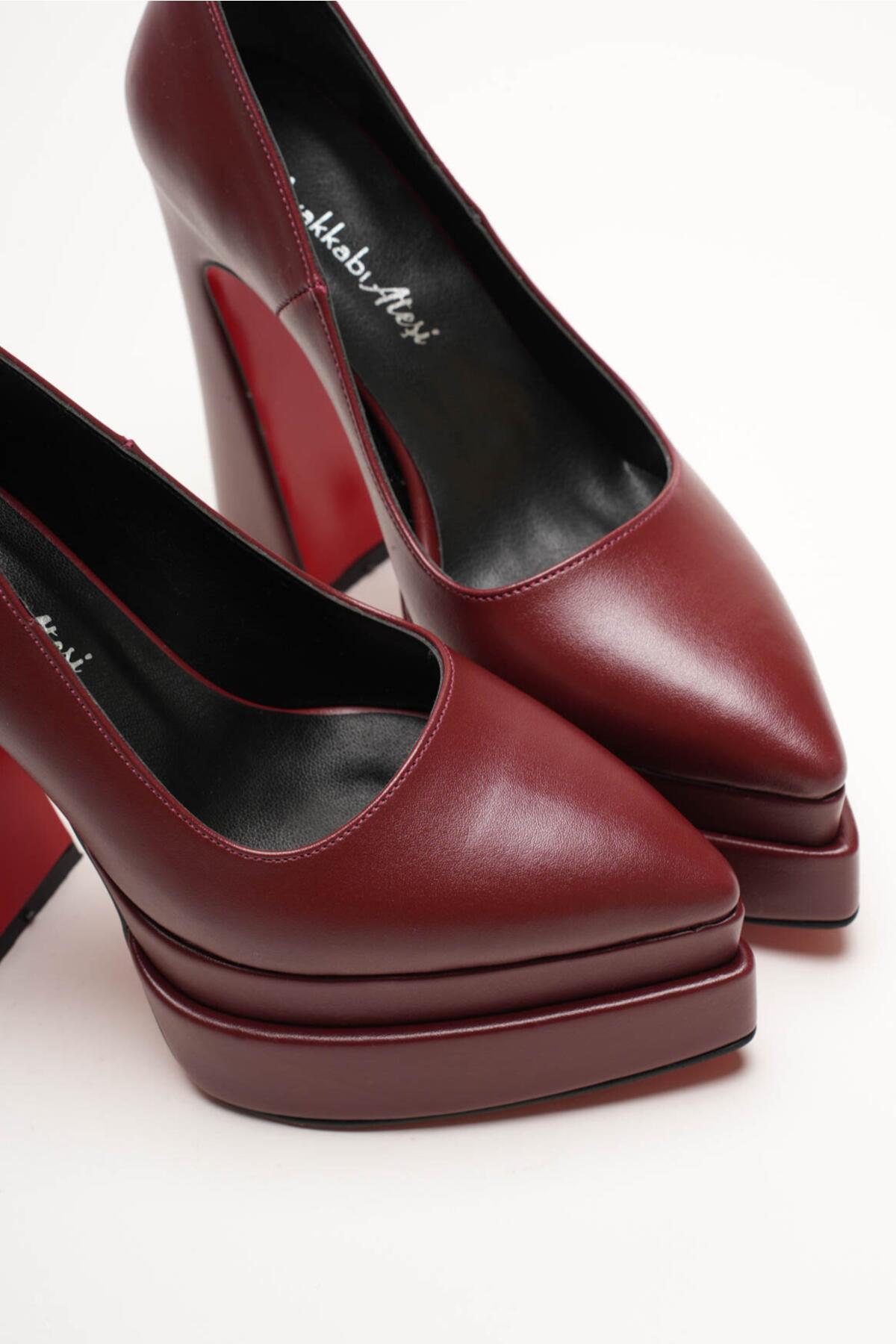 Kadın Çift Platform Özel Tasarım Kadın Ayakkabı Rigel Bordo Cilt