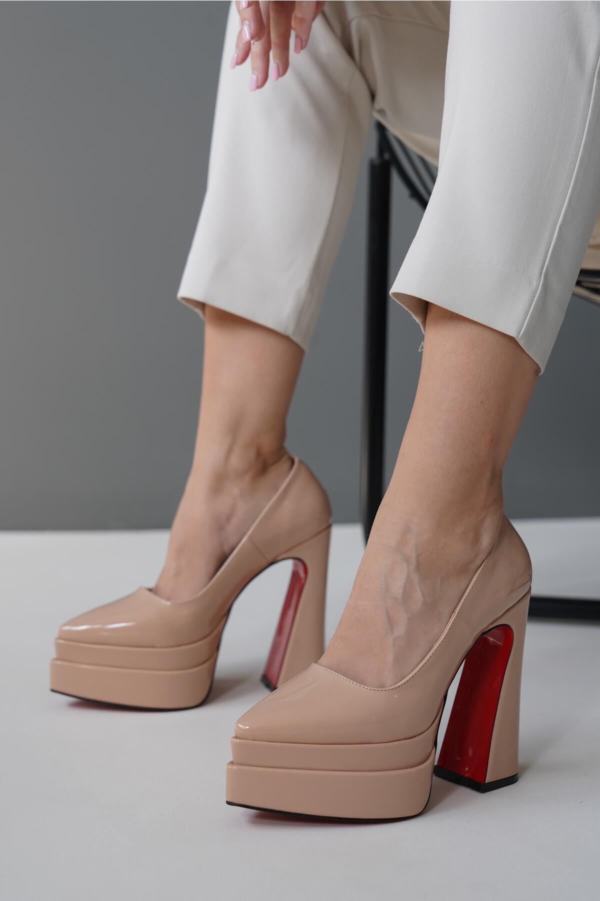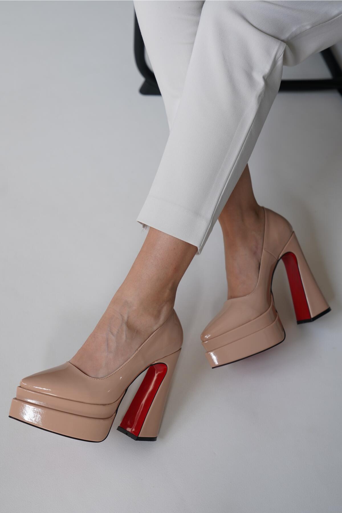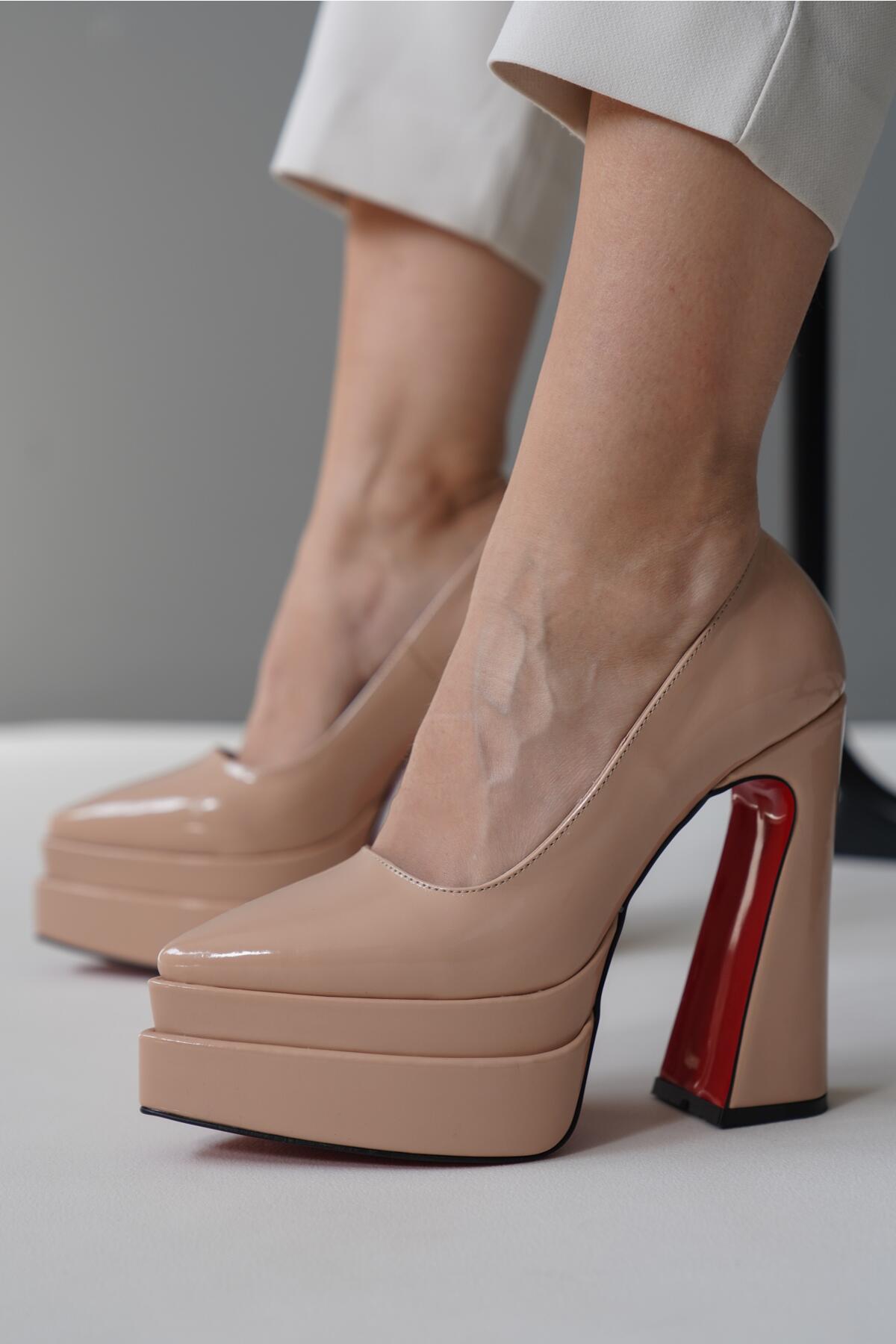 Kadın Çift Platform Özel Tasarım Kadın Ayakkabı Rigel Nude Rugan