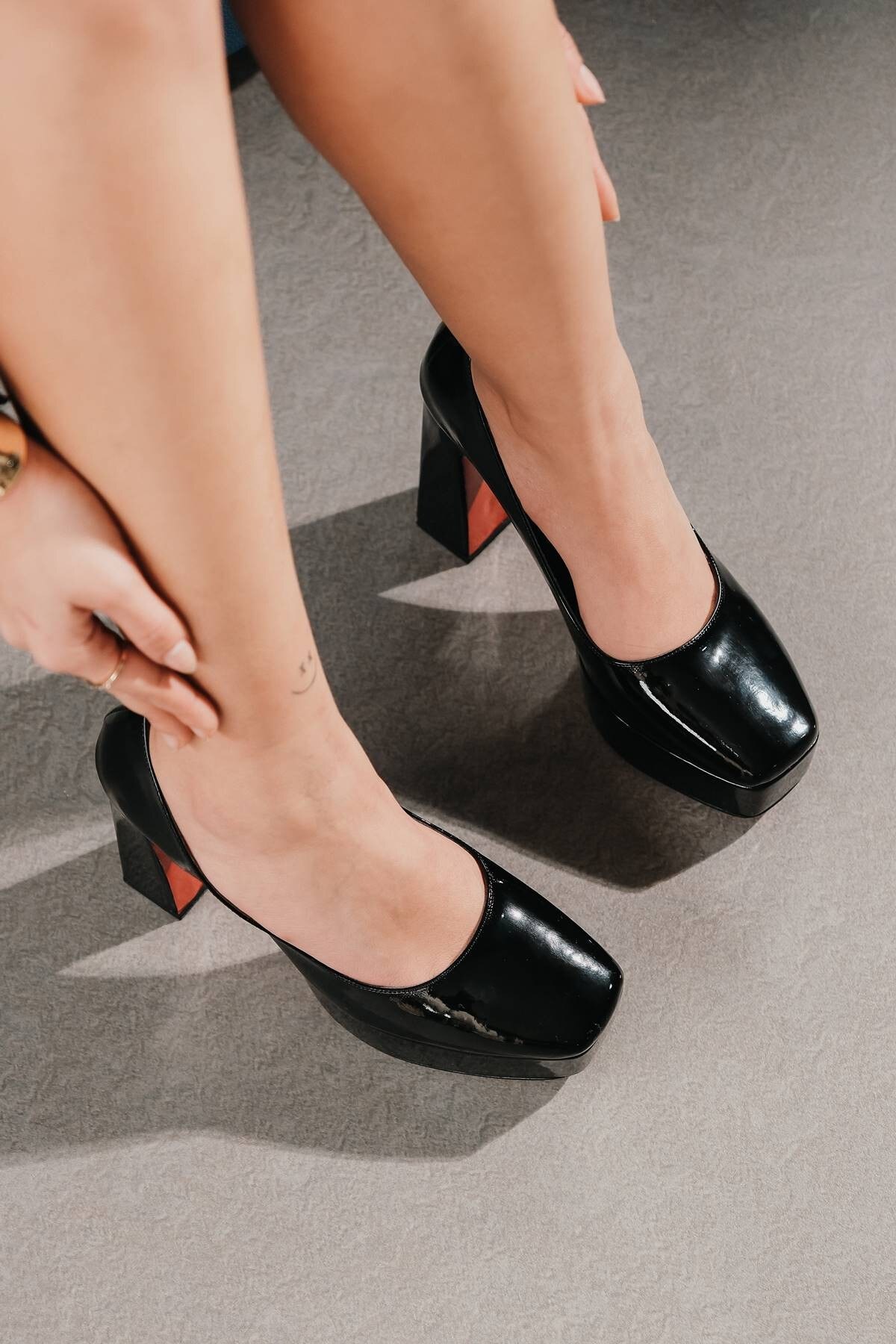 Kadın Kalın Topuklu Ayakkabı Ecovan Siyah Rugan