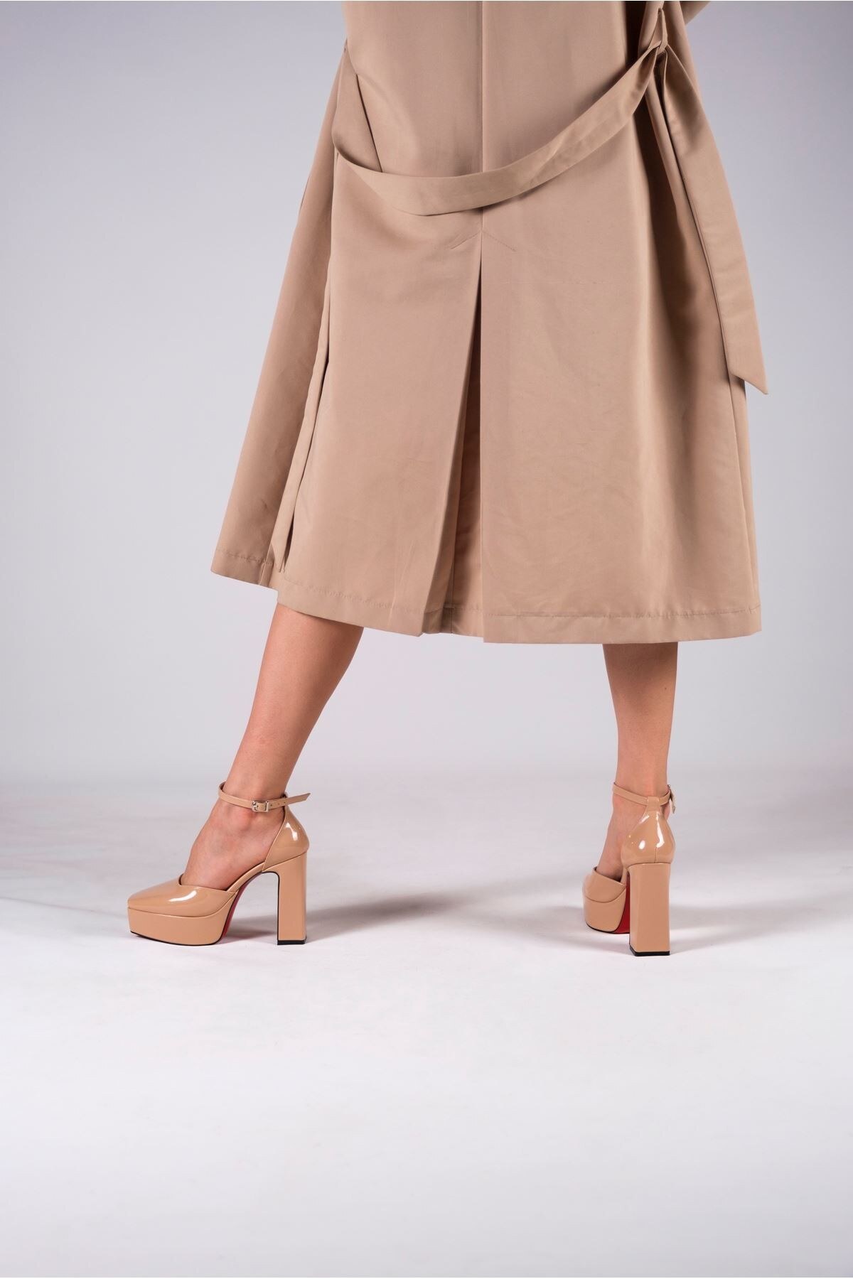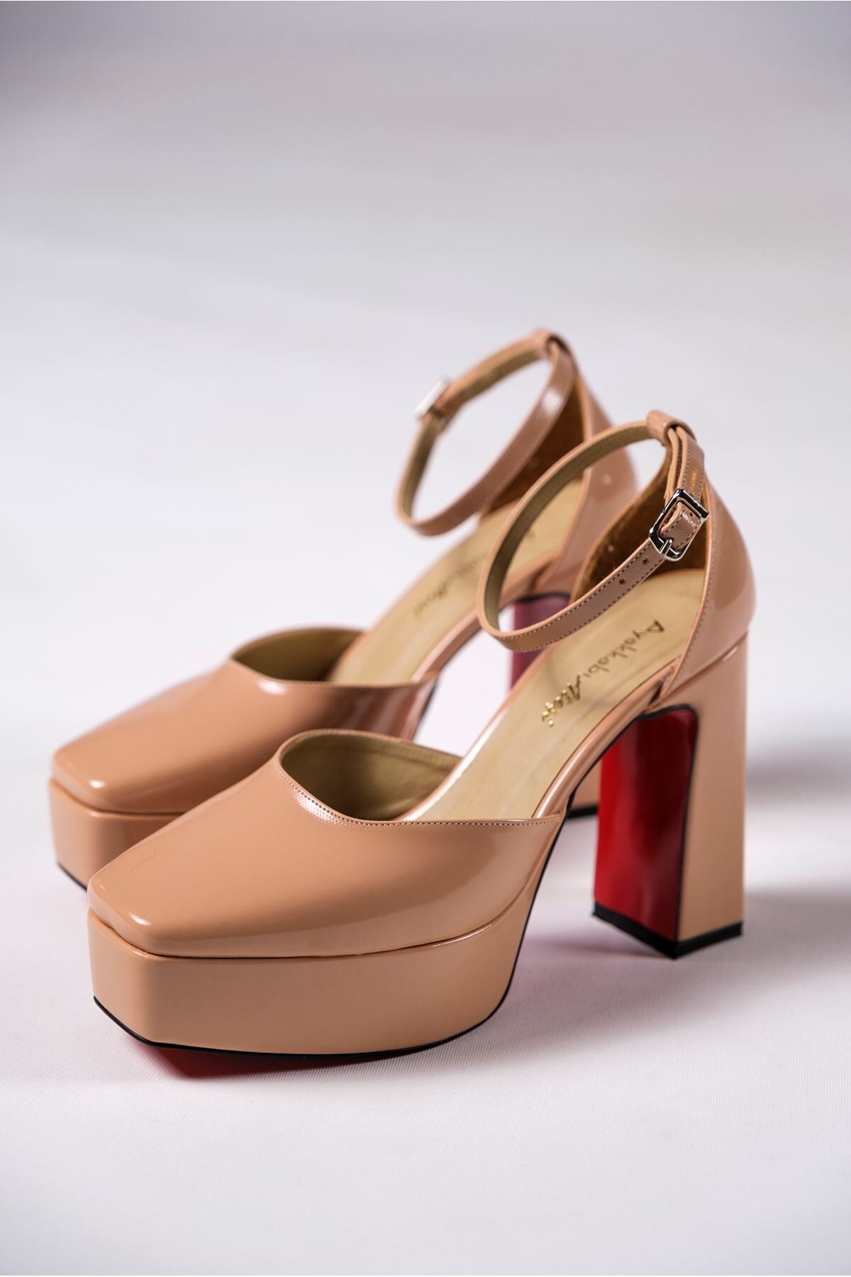Kadın Özel Tasarım Orta Topuklu Topuklu Ayakkabı Albina Nude Rugan