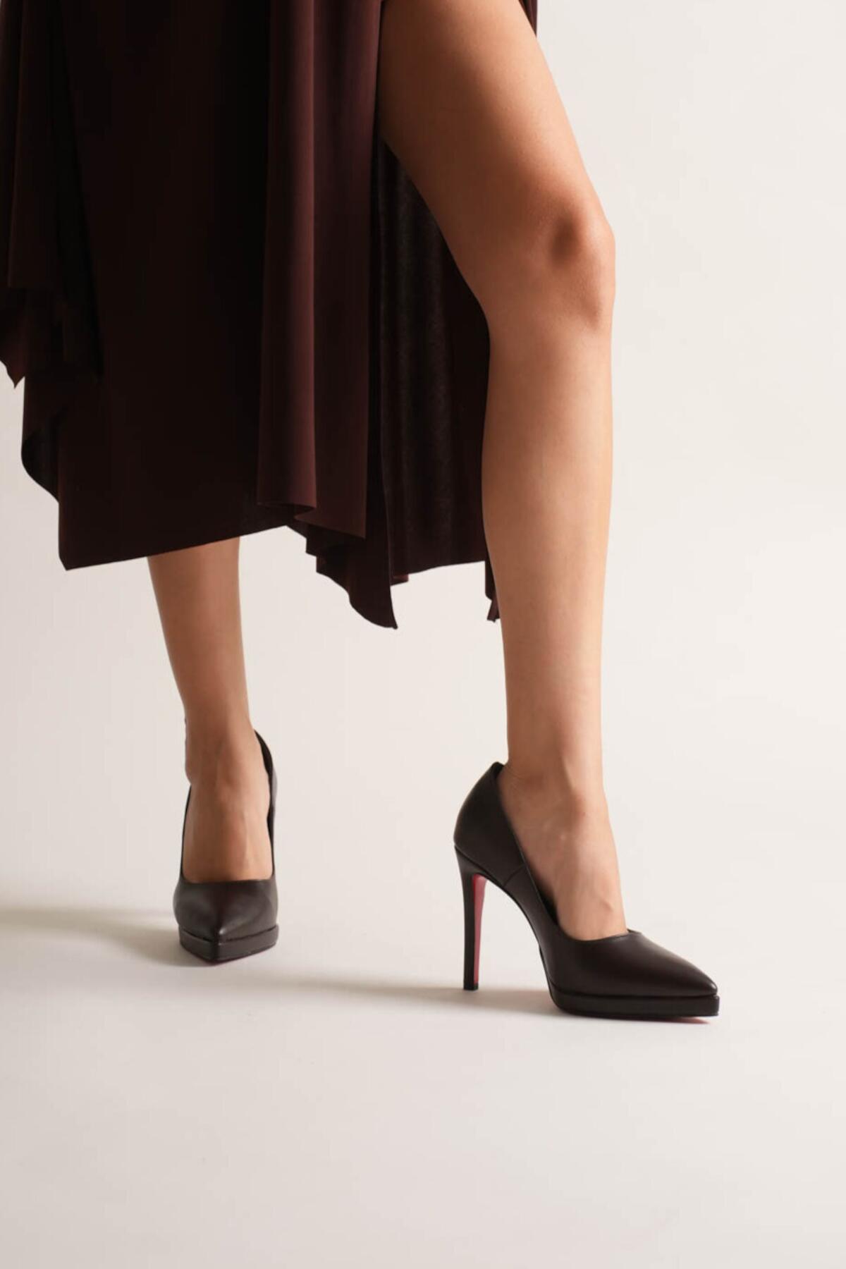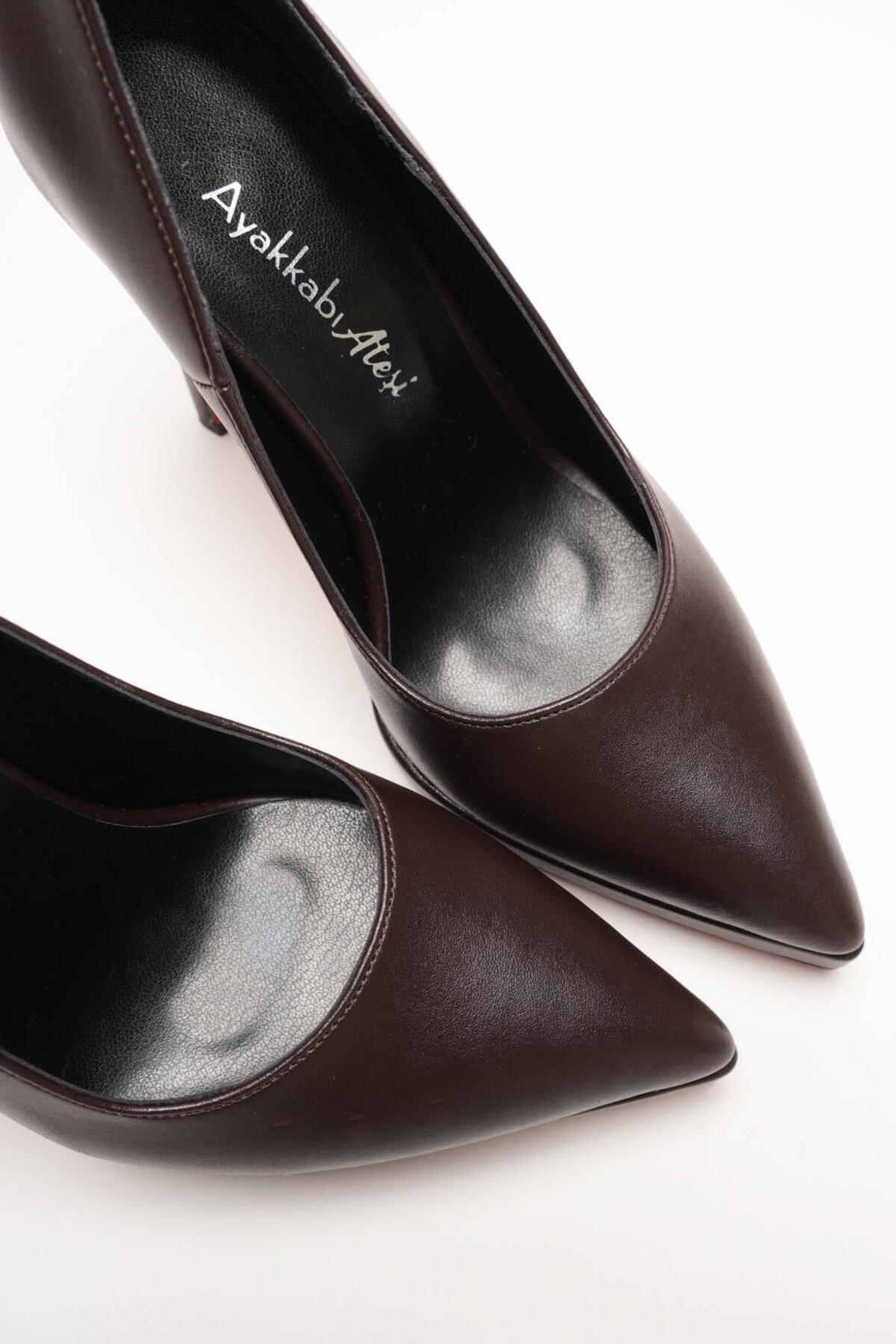 Kadın Platformlu İnce Topuklu Ayakkabı Nicola Kahverengi Cilt