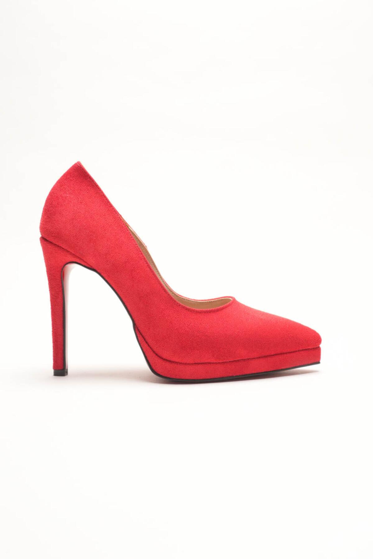 Kadın Platformlu İnce Topuklu Ayakkabı Nicola Kırmızı Süet