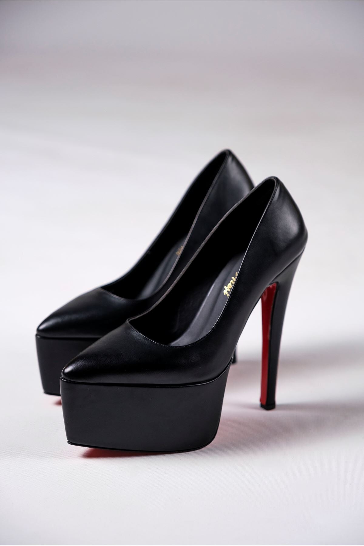 Kadın Sivri Platform Özel Tasarım Topuklu Kadın Ayakkabı Chika Siyah Cilt