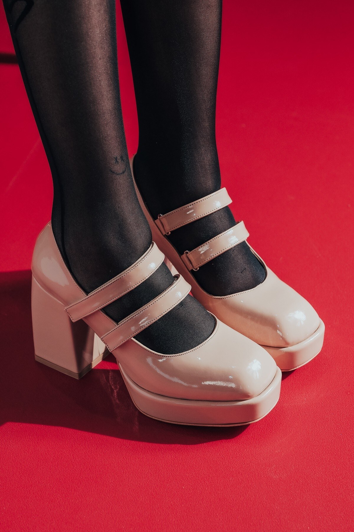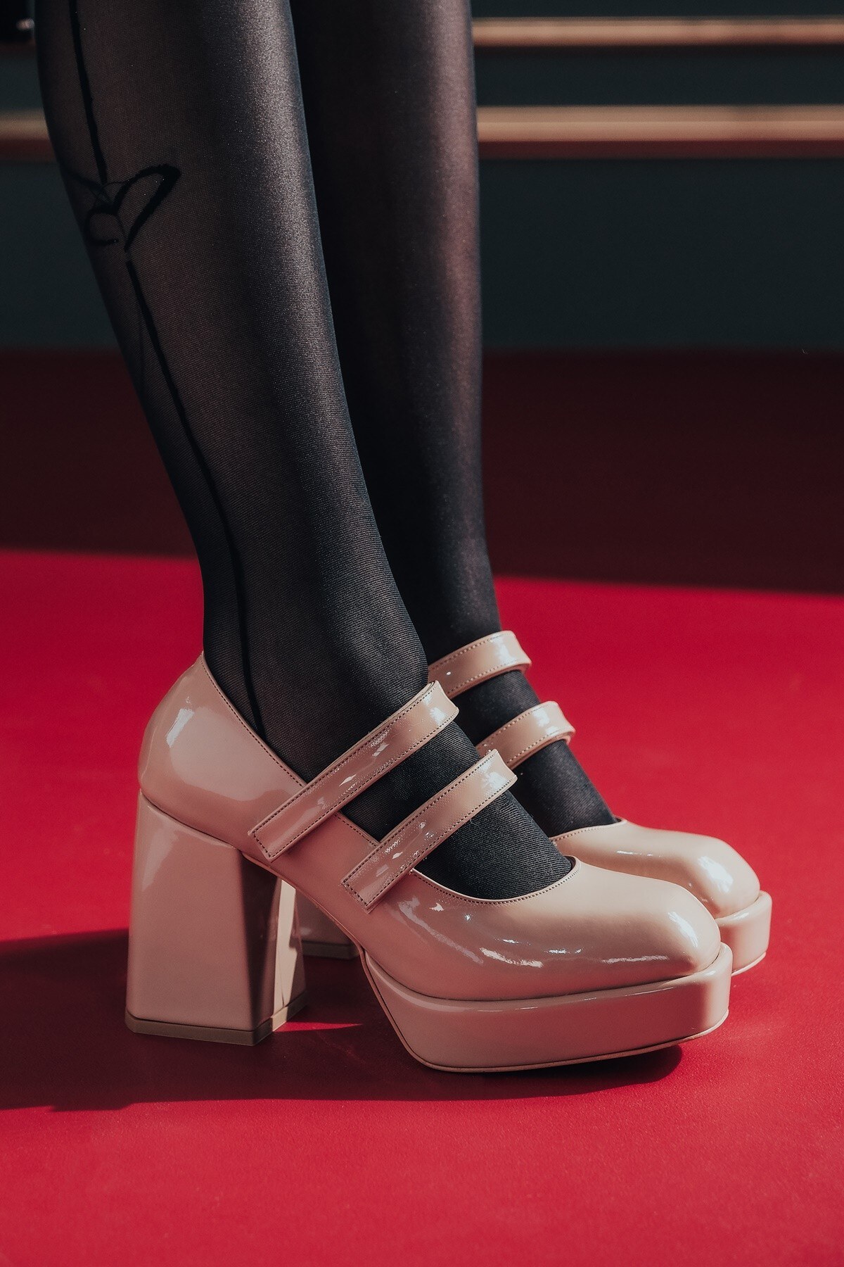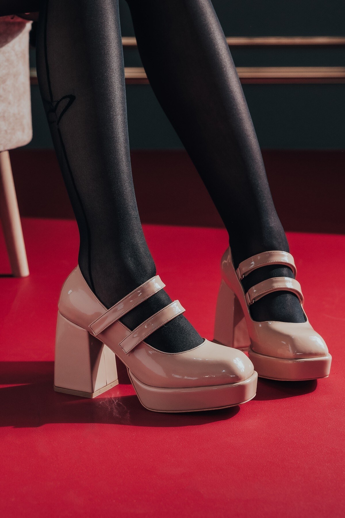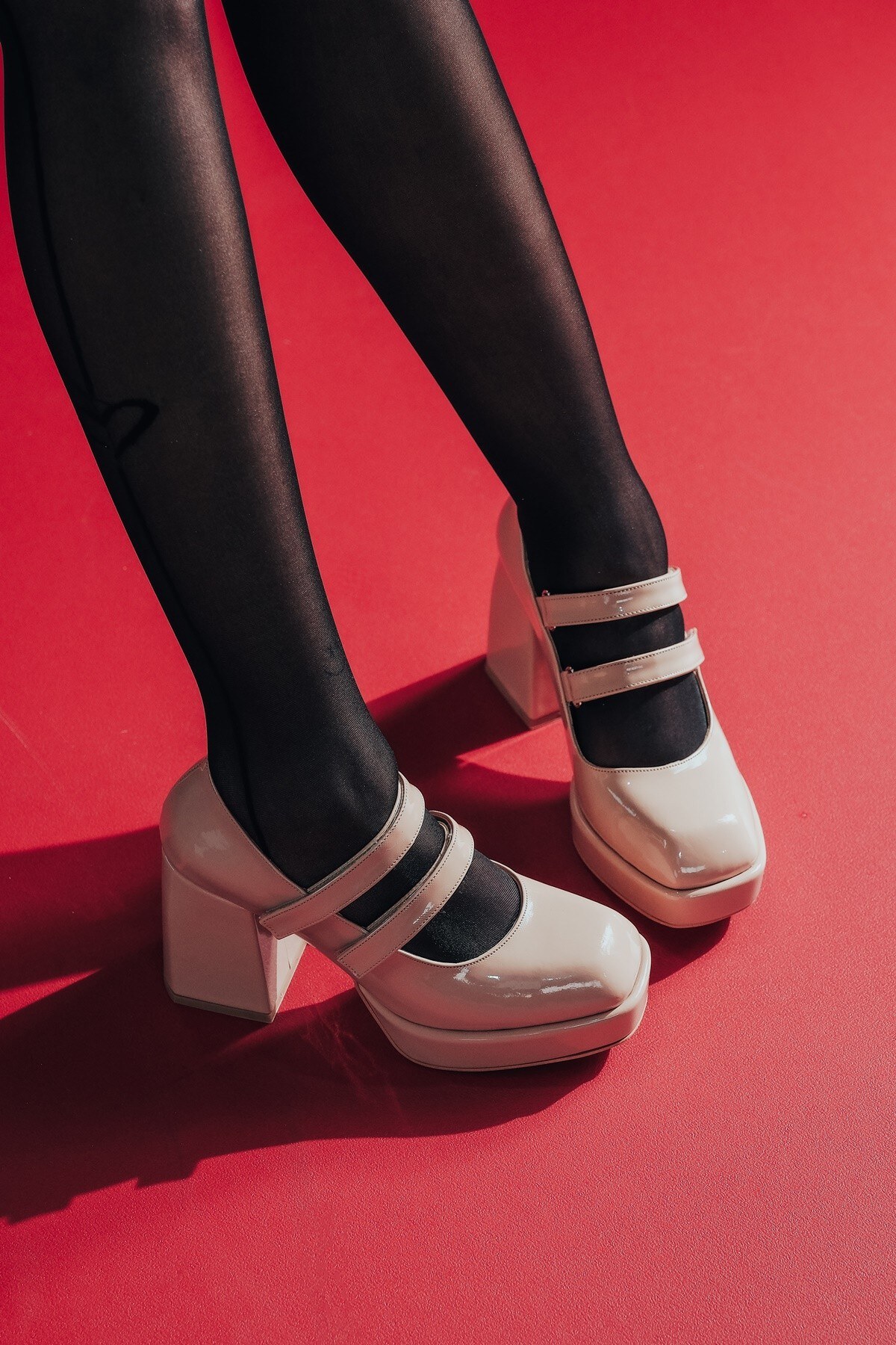 Nude Rugan Çift Cırtlı Kadın Platform Topuklu Ayakkabı Girona Nude