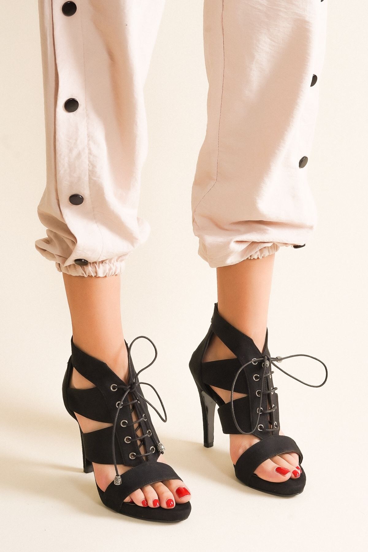 Kadın Bağcıklı Platform Topuklu Ayakkabı Lina Siyah