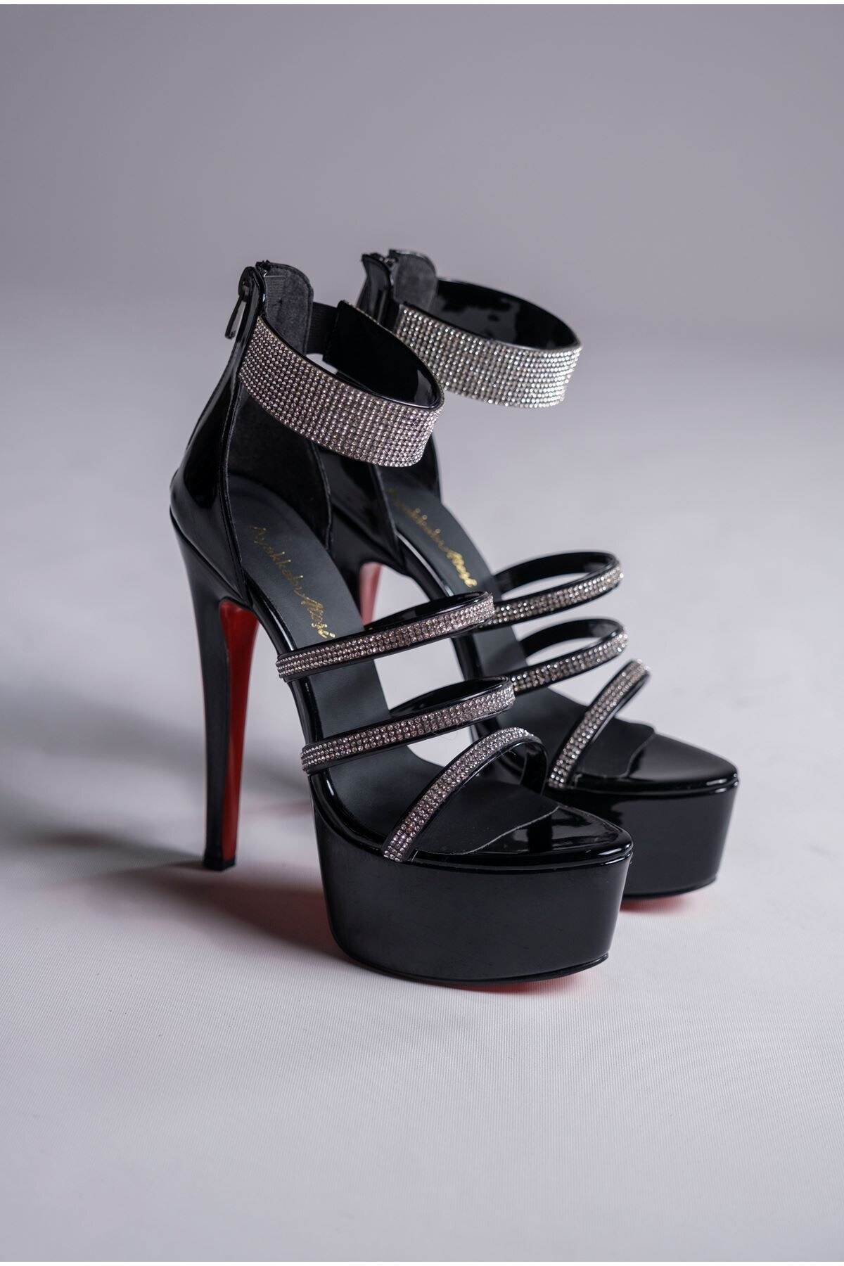 Kadın Taş Bant Detay Platform İnce Topuklu Ayakkabı Jewelry Siyah