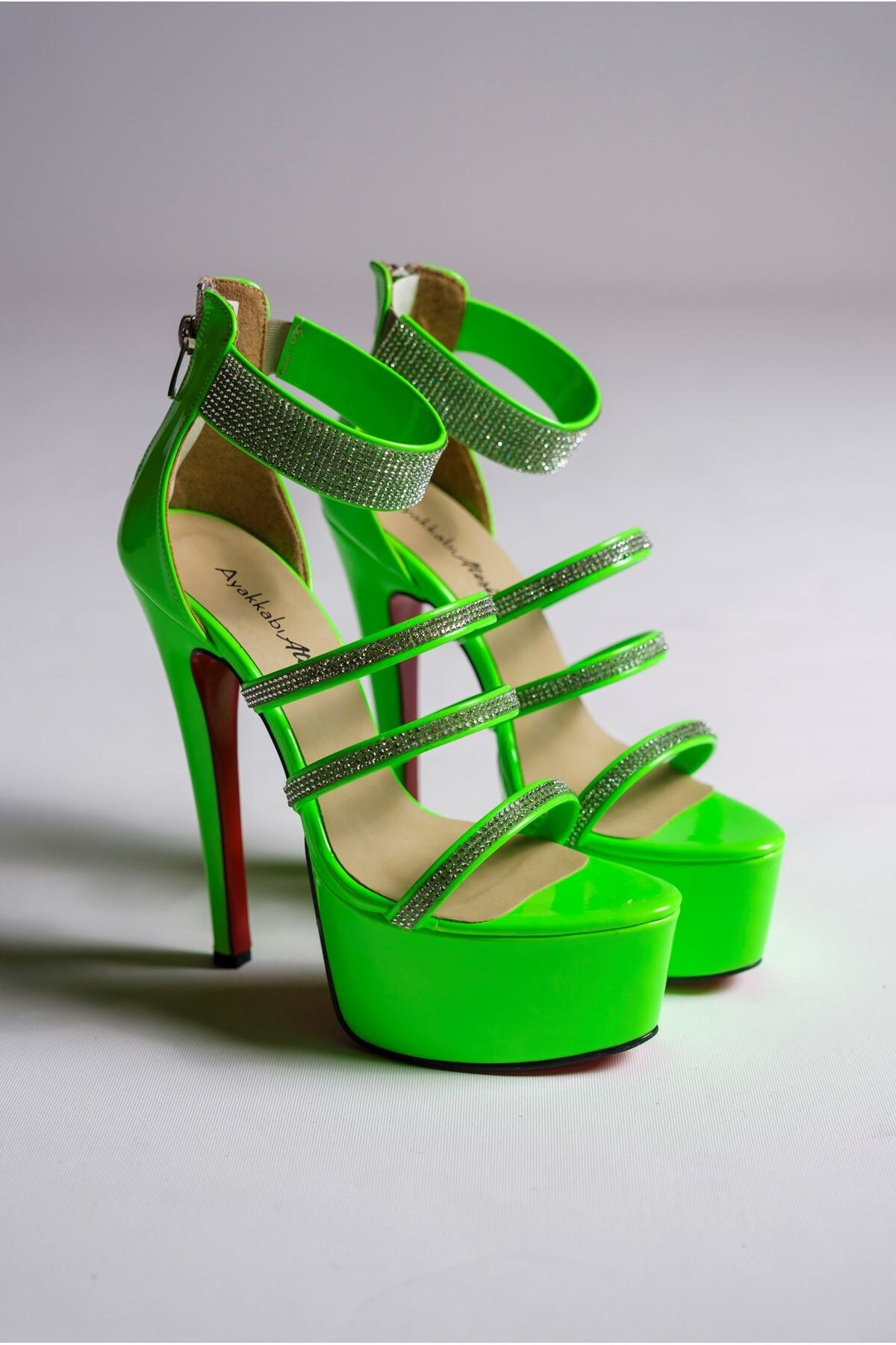 Kadın Taş Bant Detay Platform İnce Topuklu Ayakkabı Jewelry Yeşil