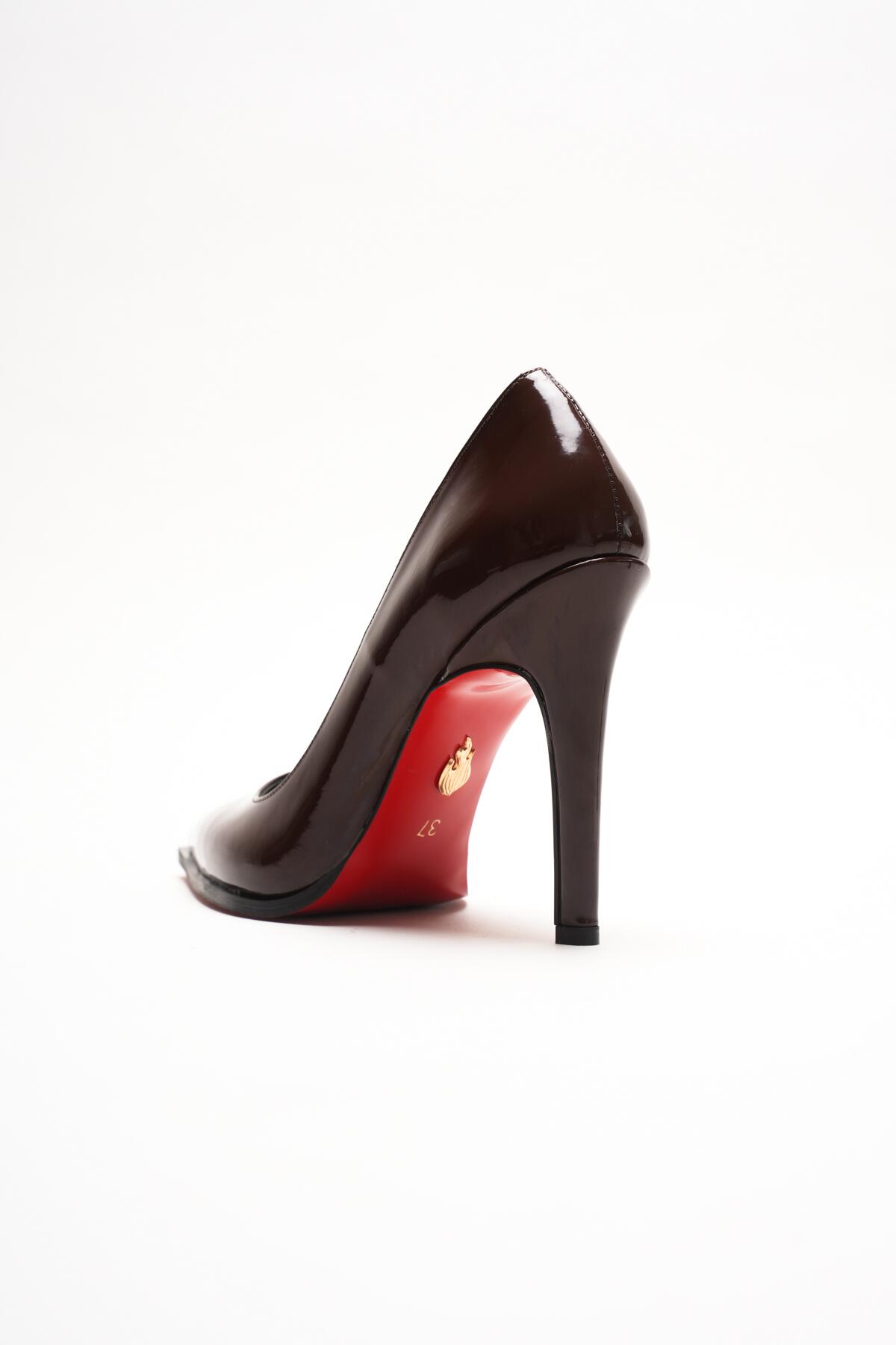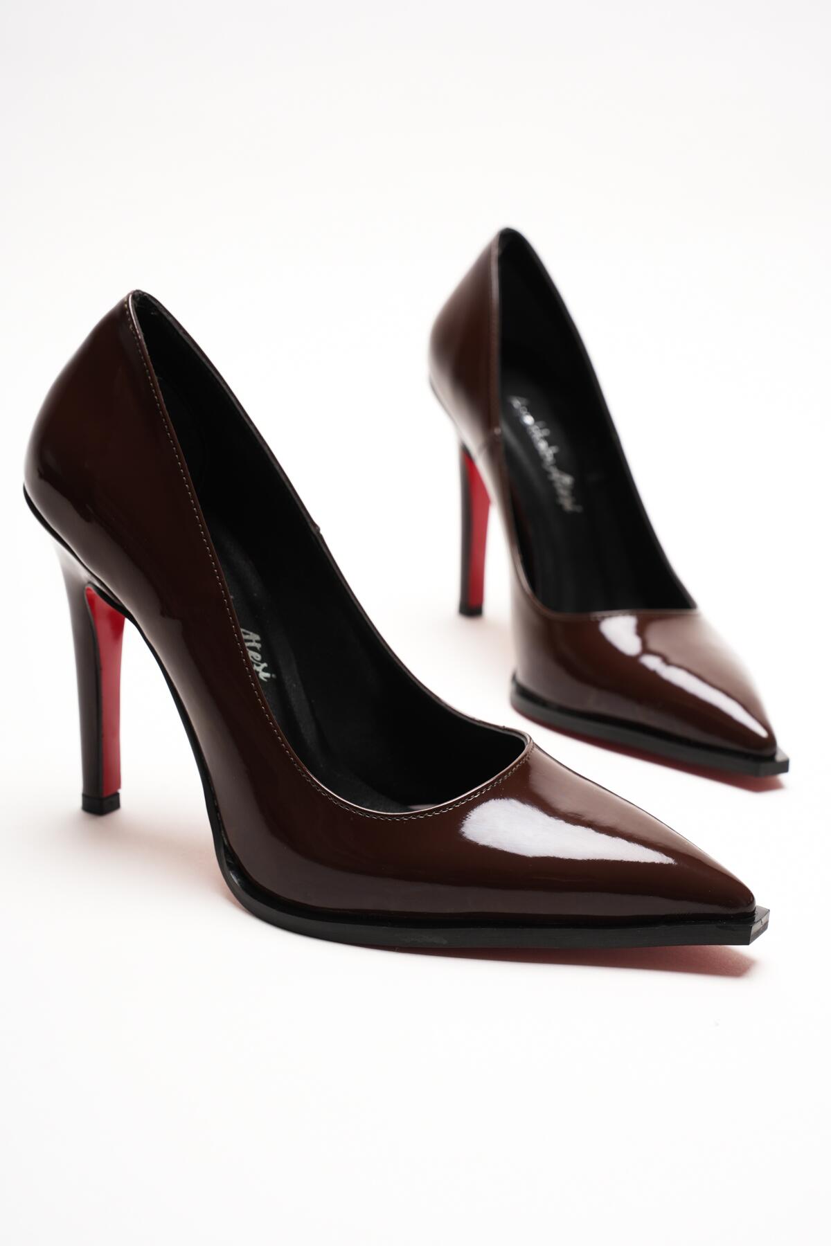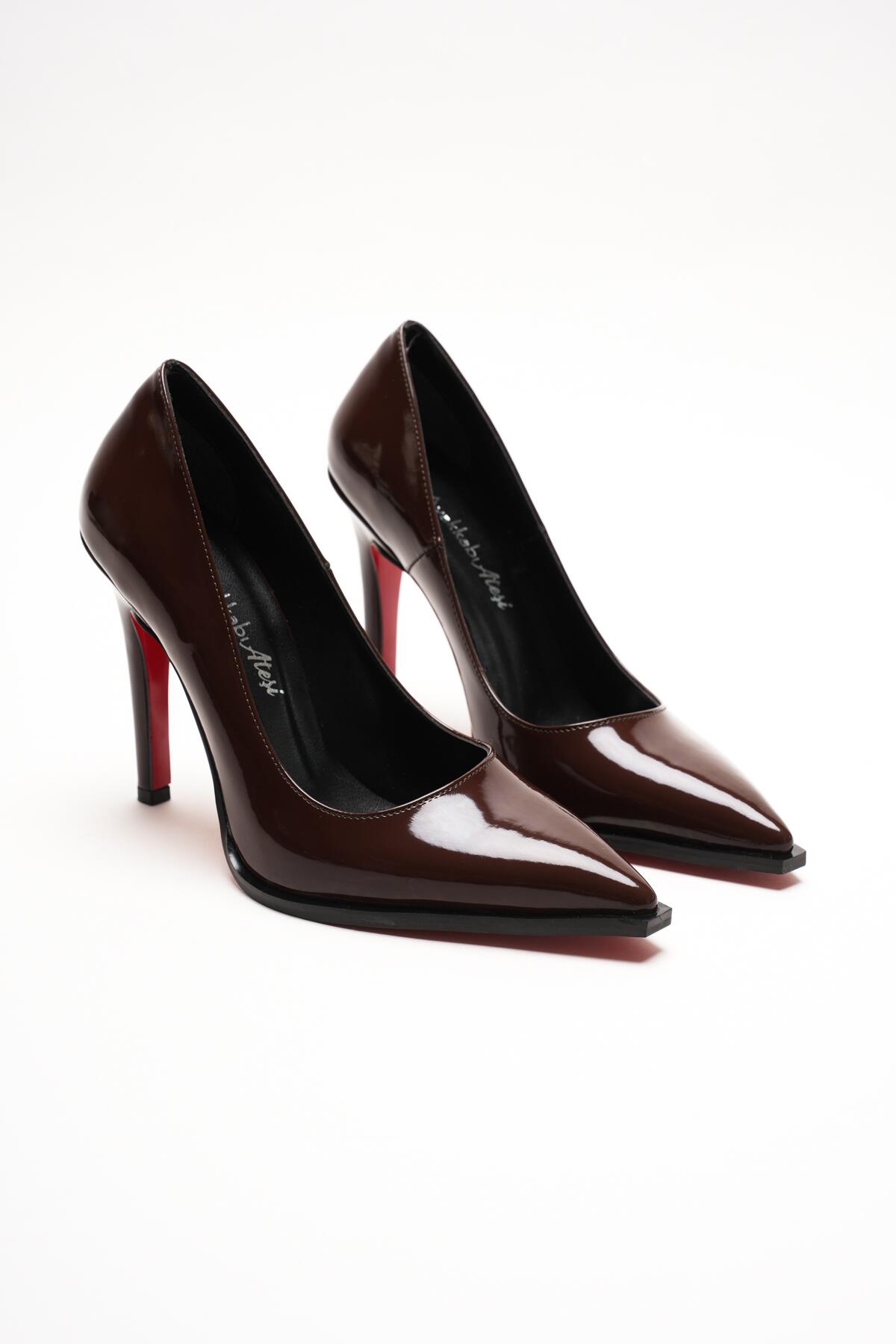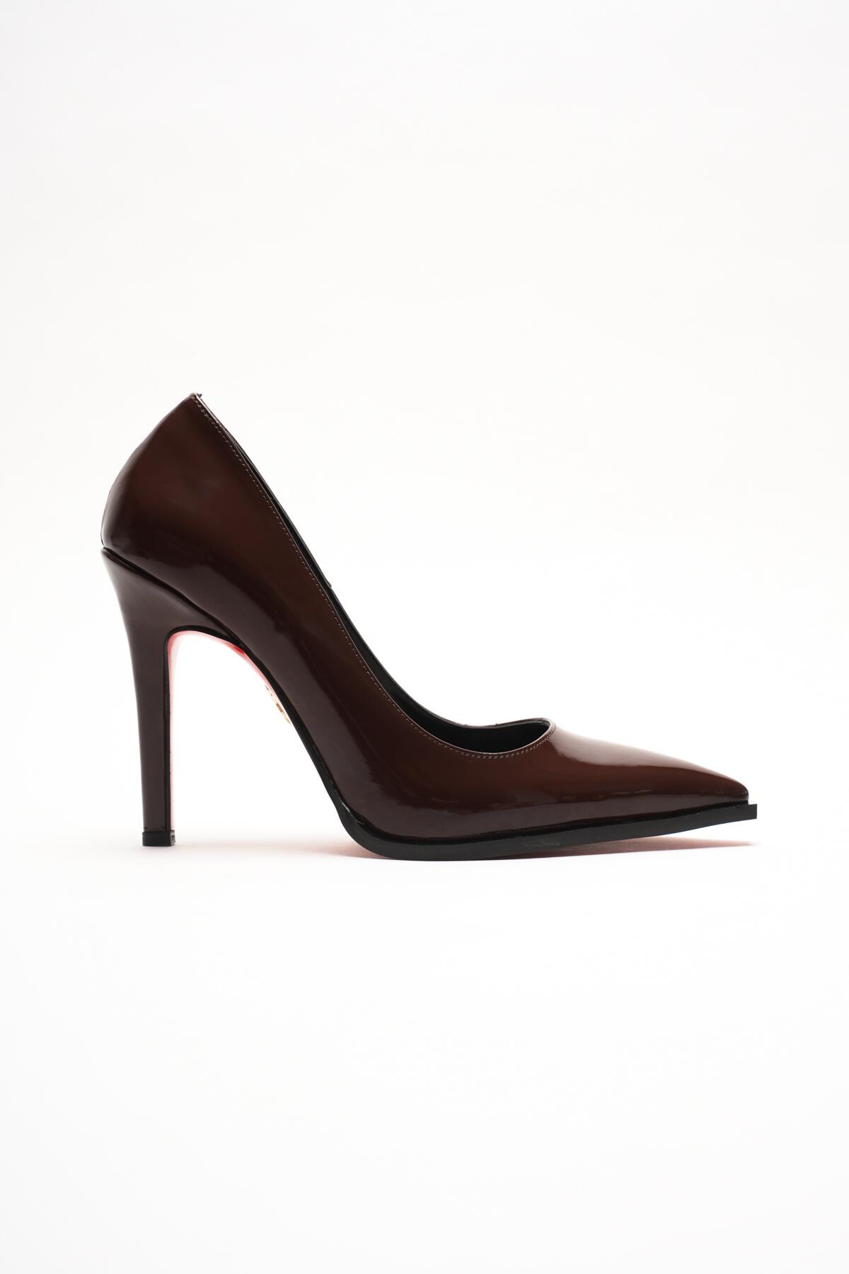 Stiletto Topuklu Ayakkabı Sivri Burun Klasik Abiye Kadın Ayakkabısı Tokyo Kahverengi Rugan